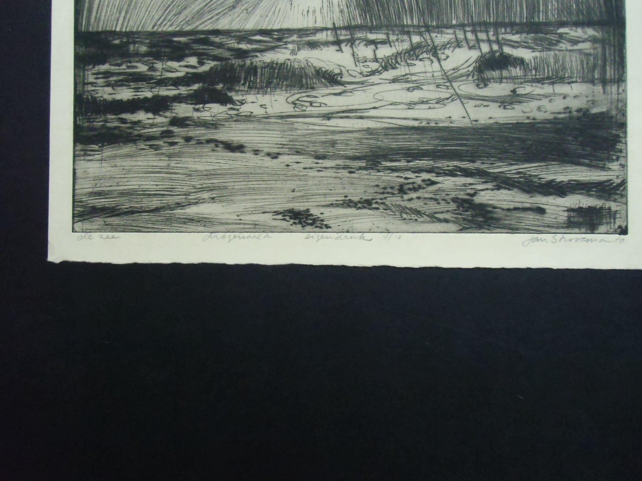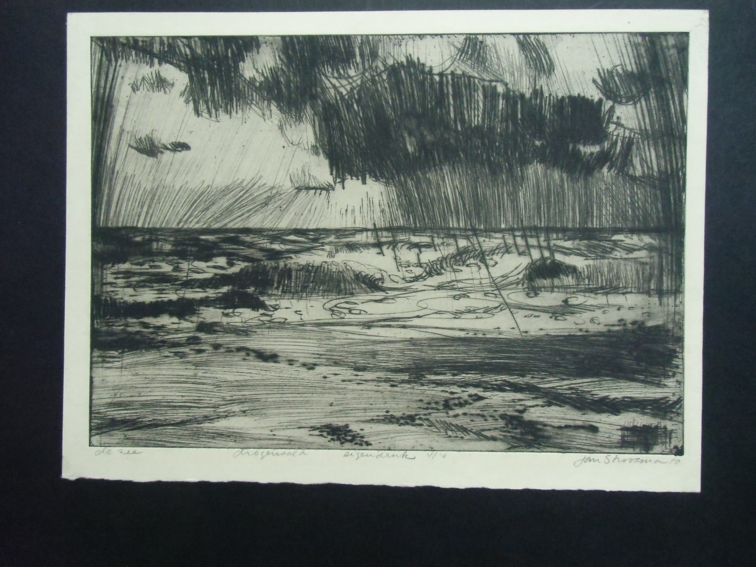 Krachtige droge naald van de Friese kunstenaar Jan Stroosma. Gesigneerd, gedateerd en betiteld met potlood. Eigen druk en kleine oplage. Conditie zeer goed.