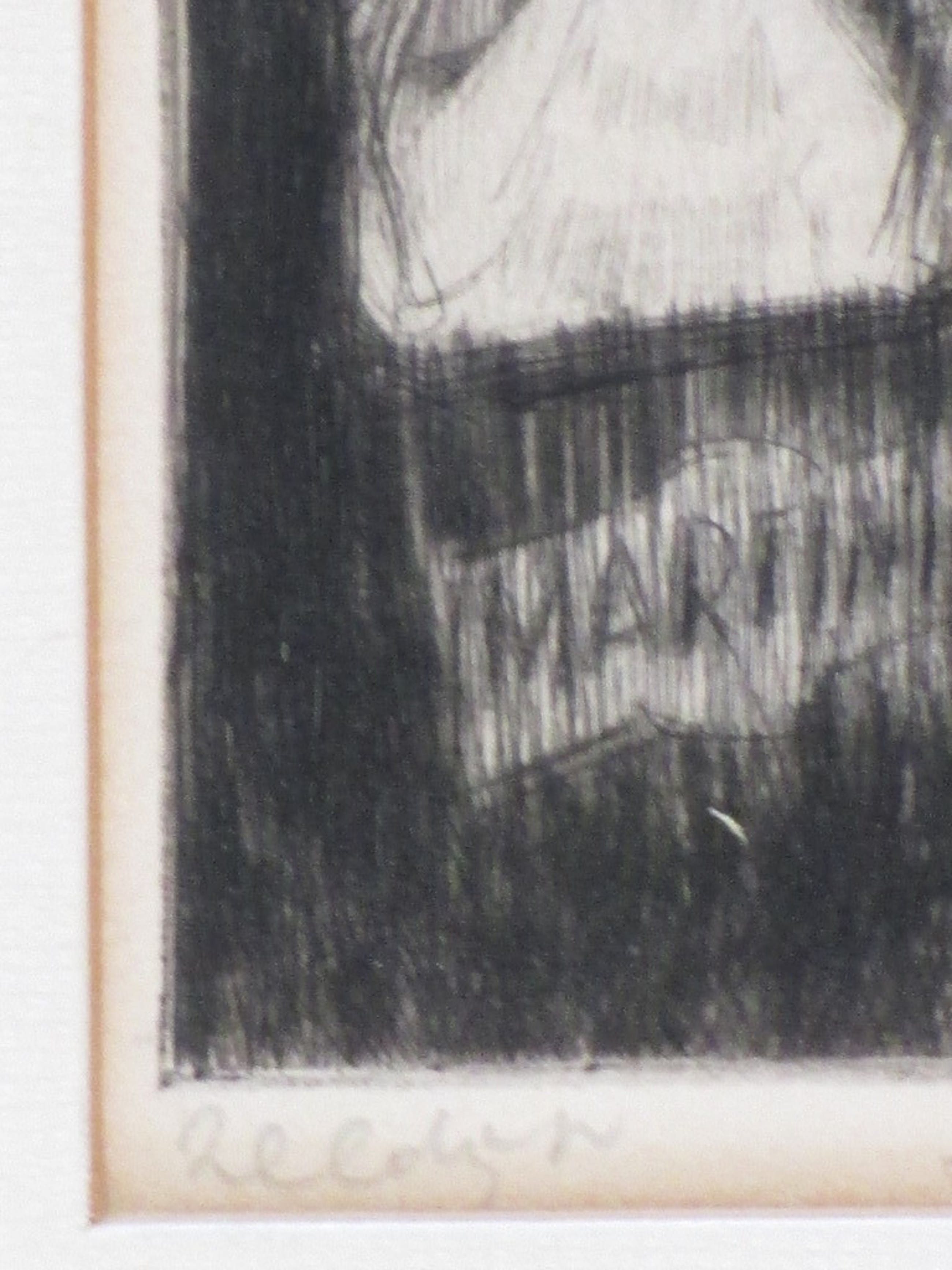 Ets onder passepartout, beeldmaat 10x7, p.p.maat 26x20