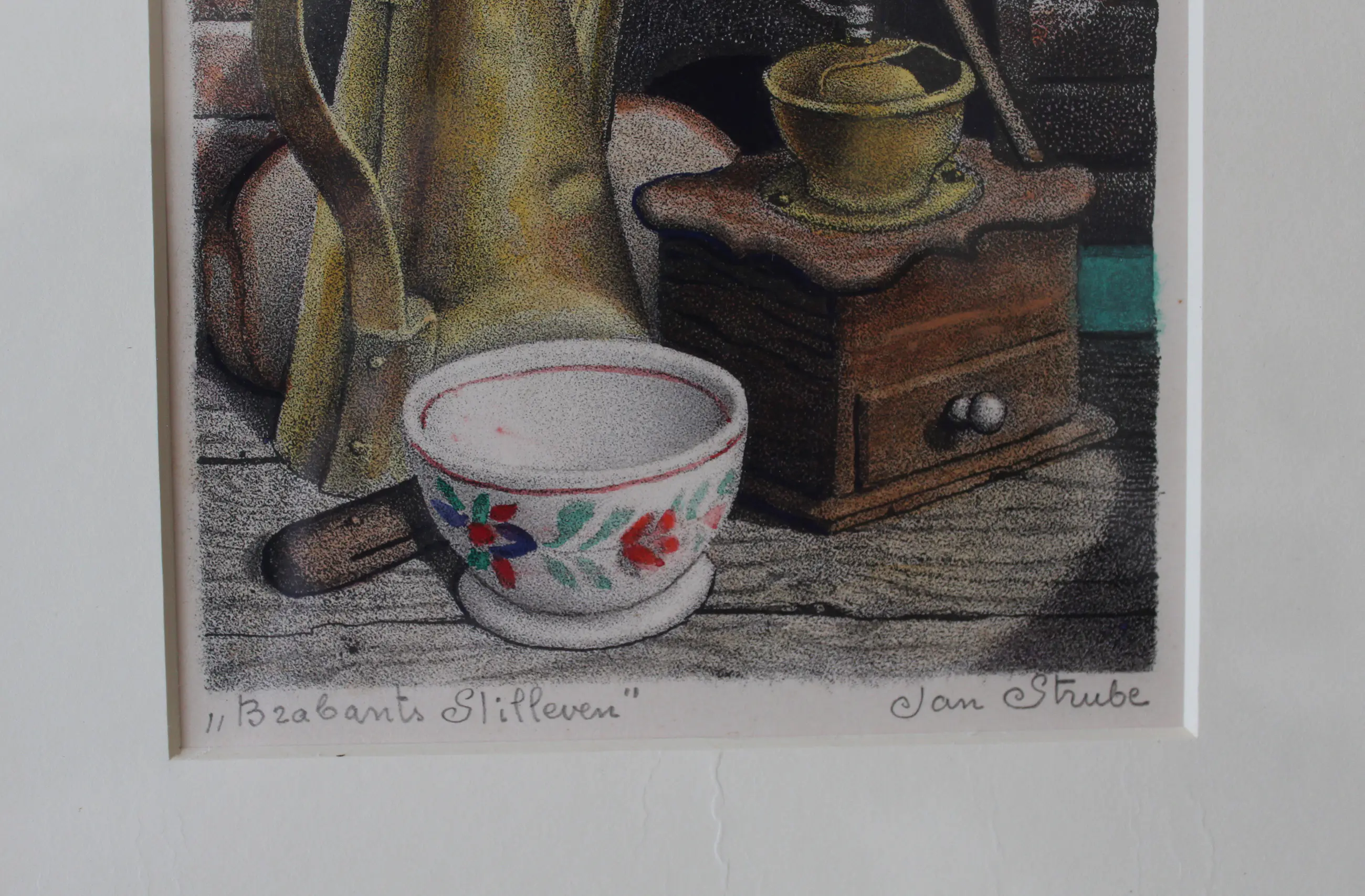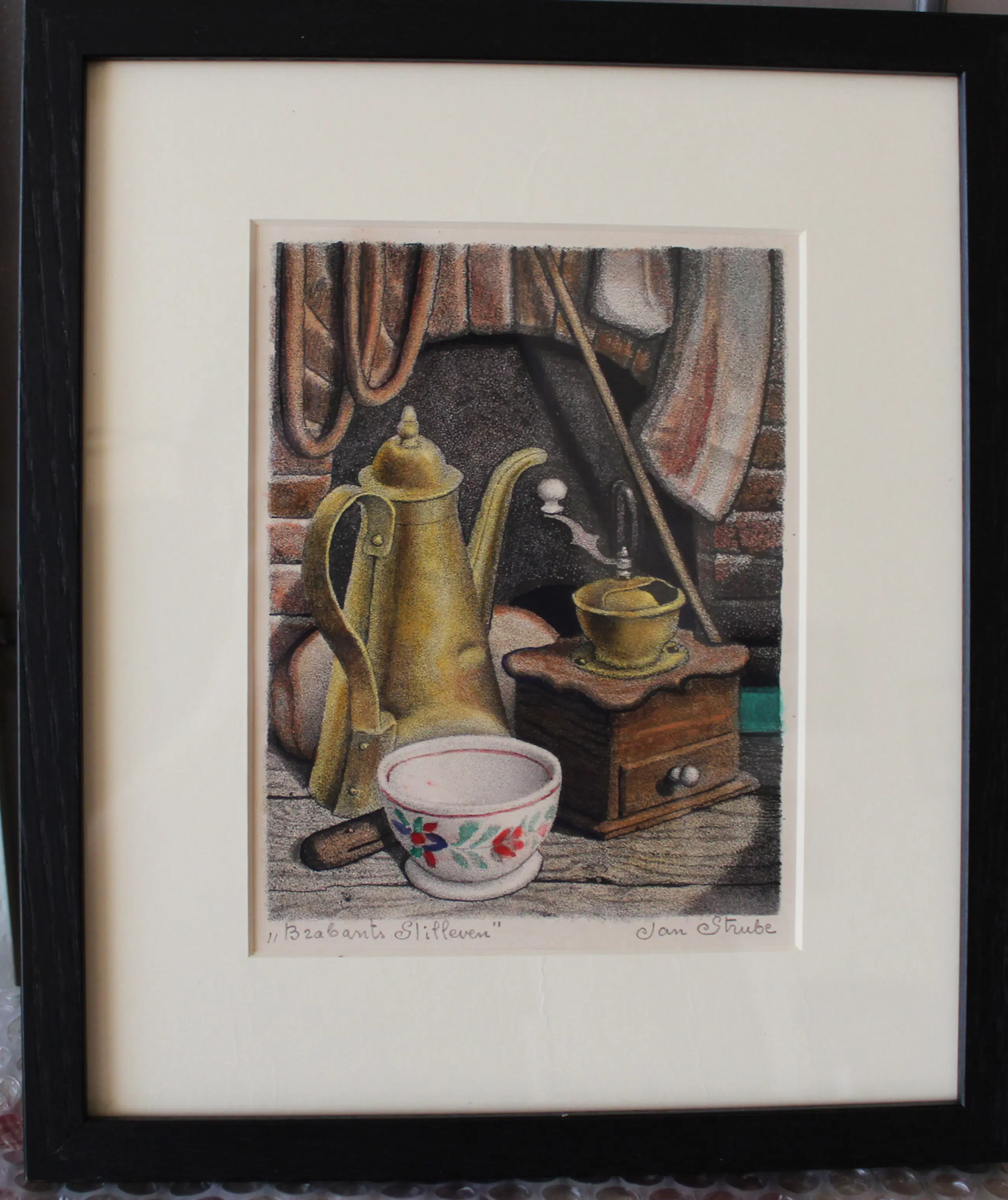 Litho of steendruk; afdruk op papier. Ingelijst met zuurvrije materialen, zodat er geen vergeling meer optreedt. Professionele inlijsting. Zeer zeldzame litho. Hoge kwaliteit.