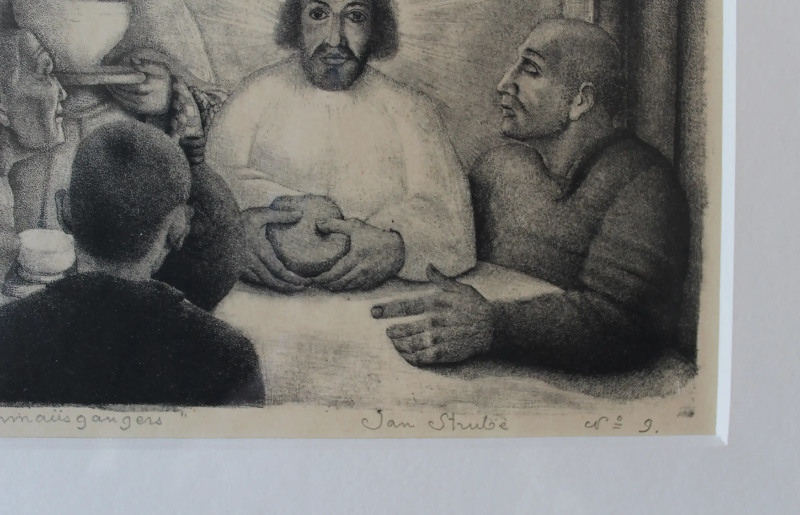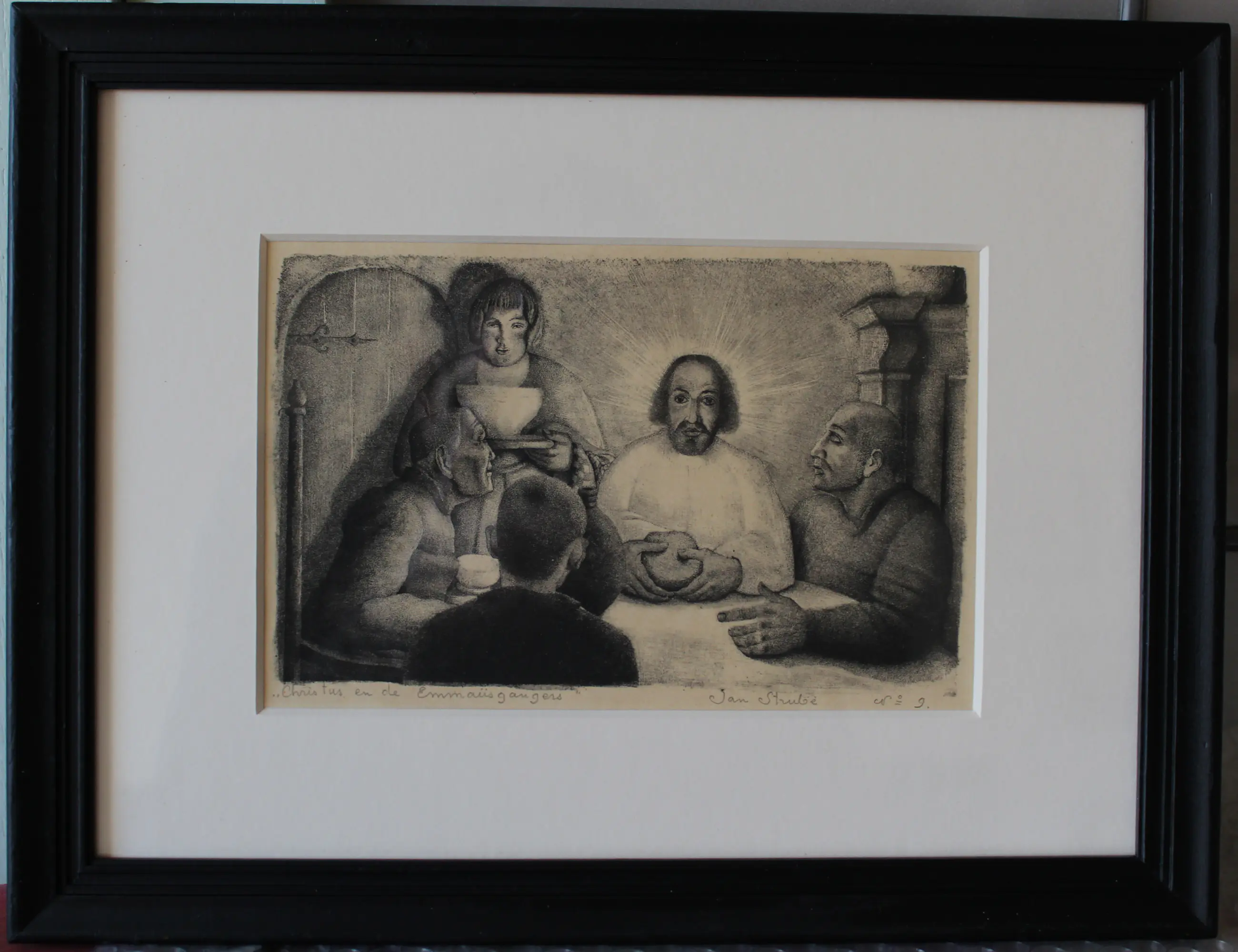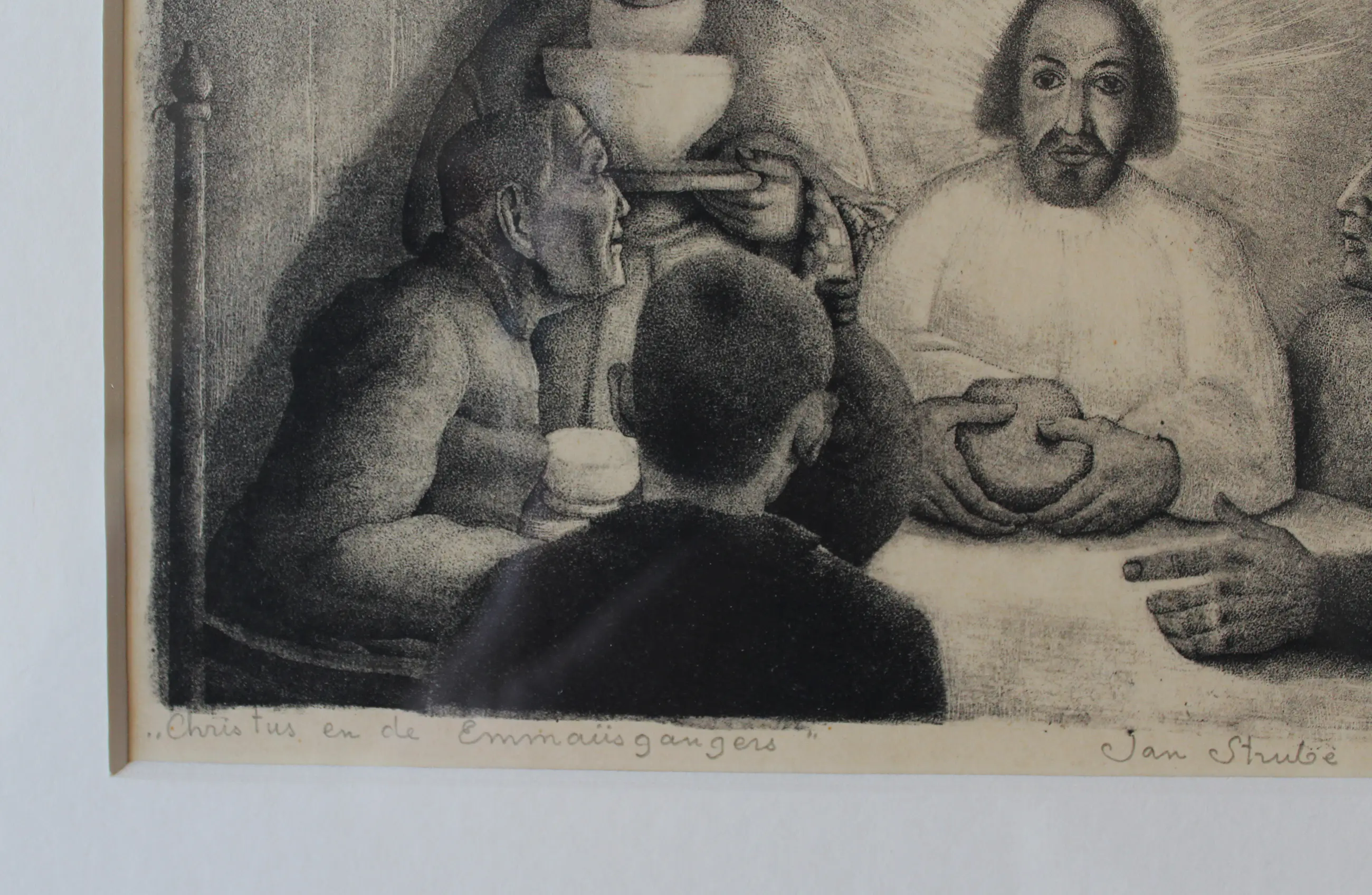 Litho of steendruk; afdruk op papier. Ingelijst met zuurvrije materialen, zodat er geen vergeling meer optreedt. Dit Bijbelse tafereel is ook afgebeeld op een olieverfschilderij van zijn hand.