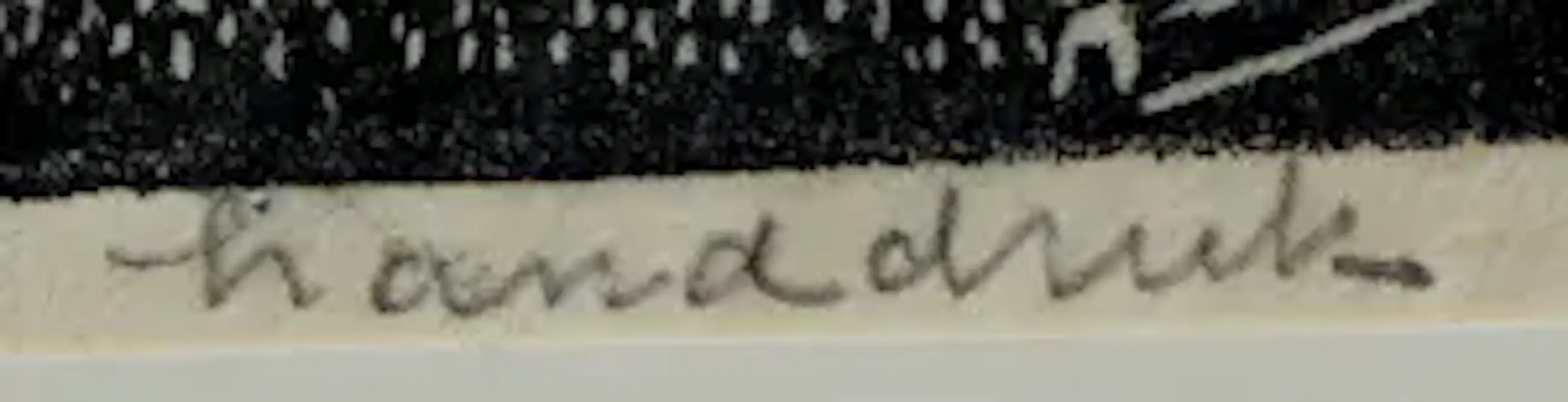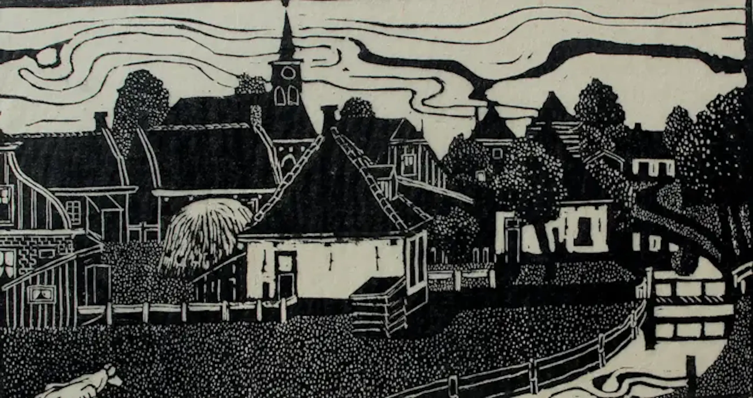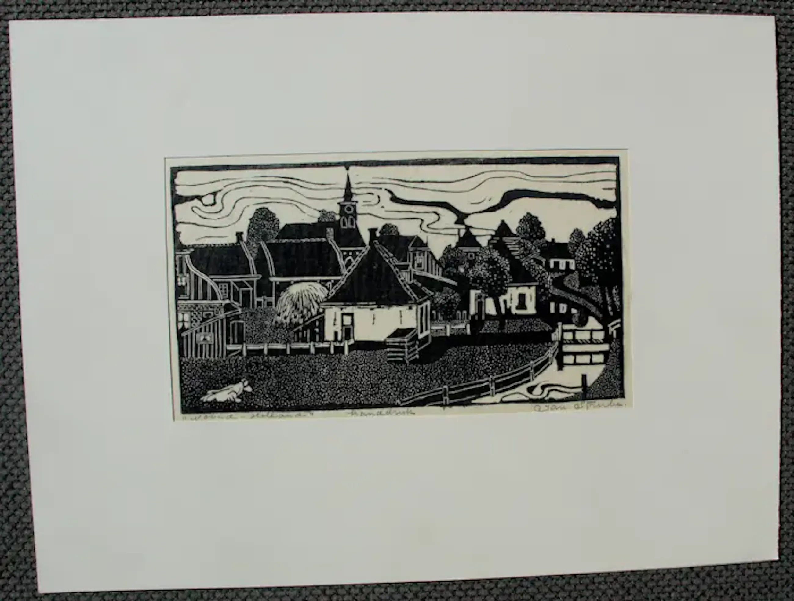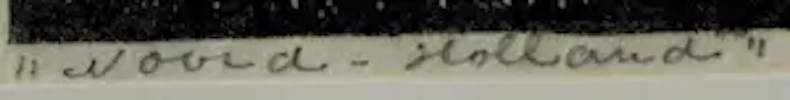 Handdruk van Jan Strube. Titel: "Noord - Holland". Afmetingen incl passe-partout: H28 xb37.5cm. Afmetingen voorstelling: H12 x b21.5cm; Het werk is rechts onderaan, gesigneerd door de kunstenaar met potlood. De authenticiteit van dit werk wordt volledig gegarandeerd. Een certificaat kan, op aanvraag, worden gemaild.