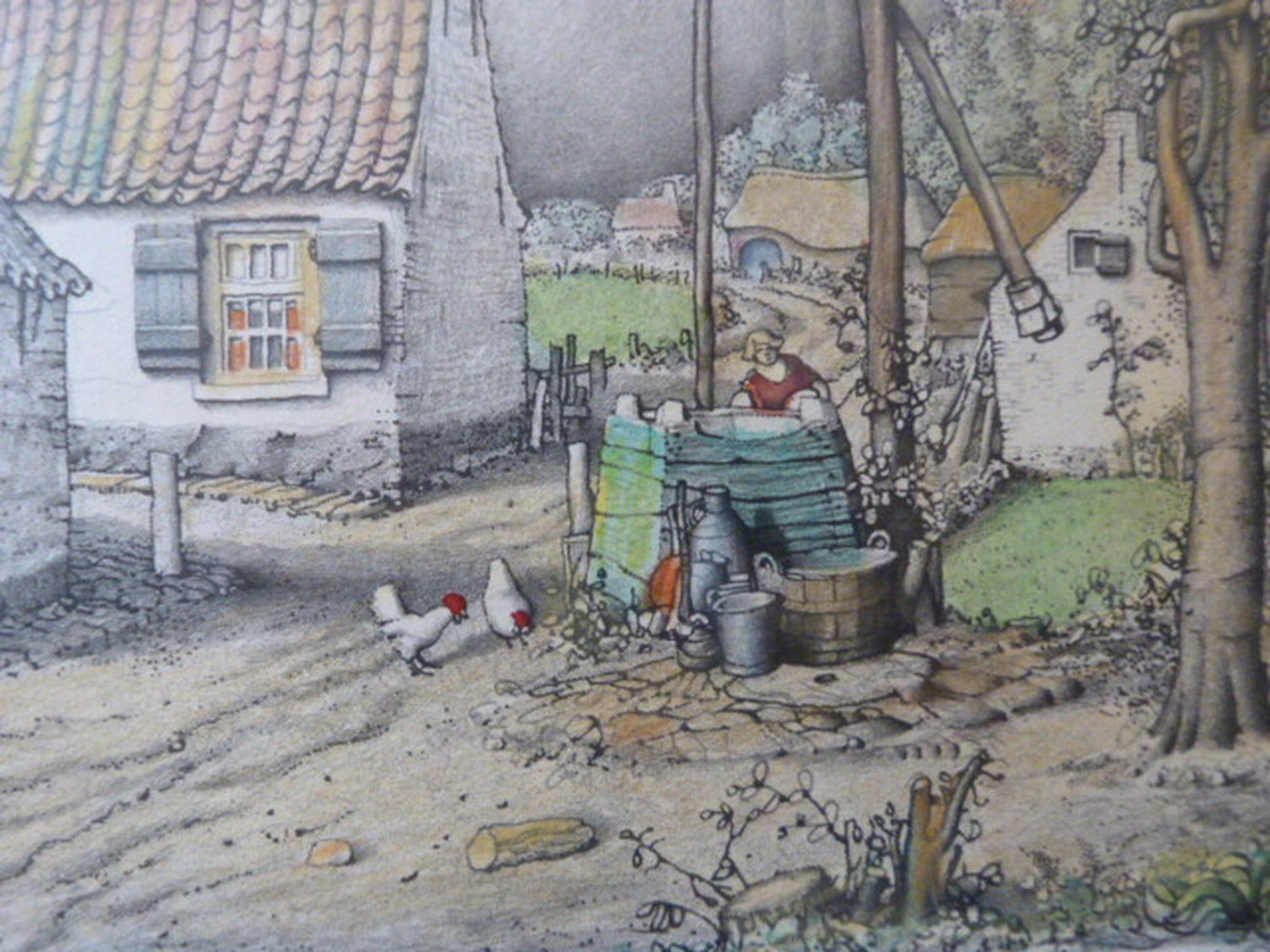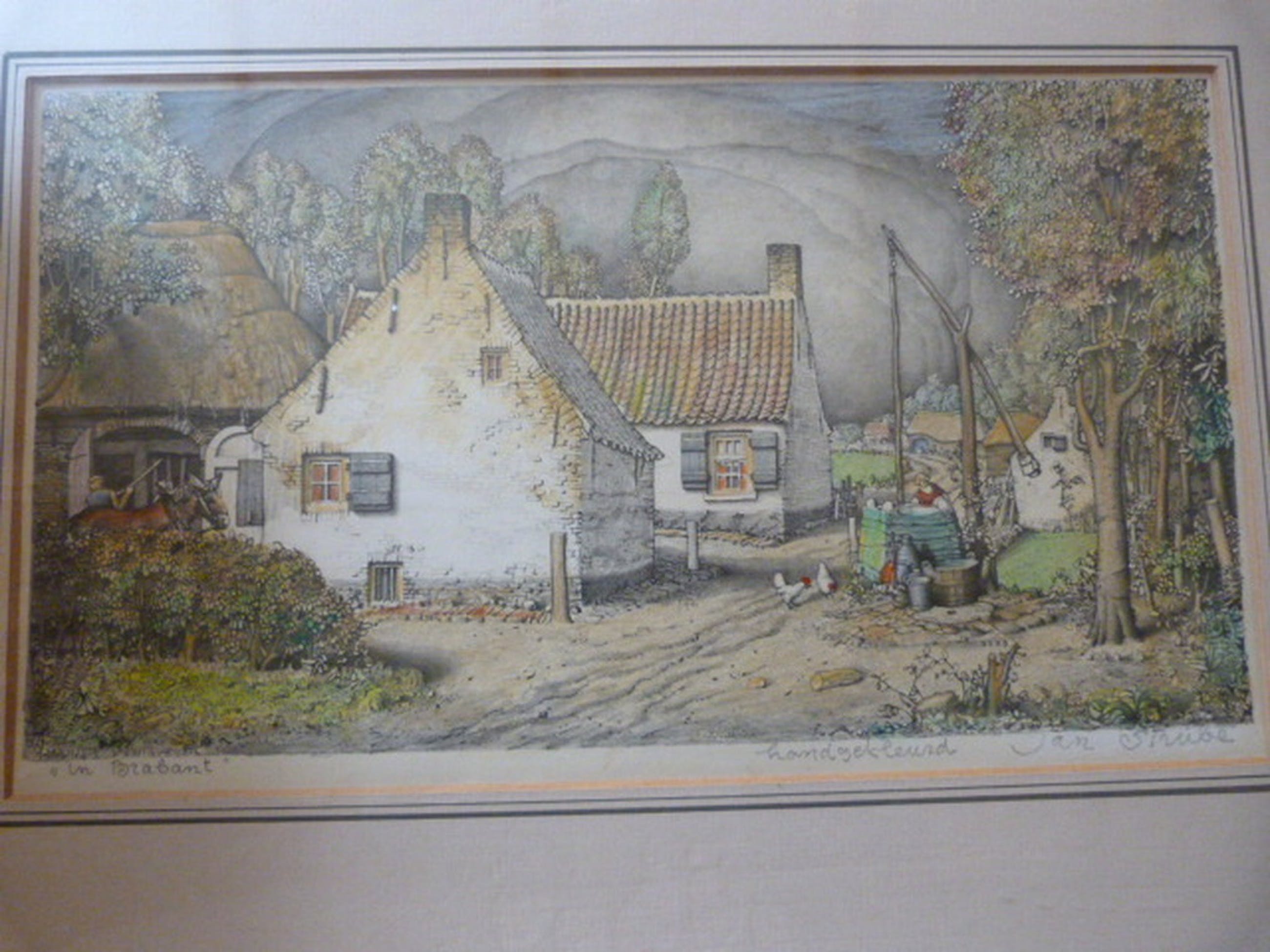 Litho : 20,5 x 37,5 cm. Met fraaie passe-partout en lijst : 42 x 57 cm.
