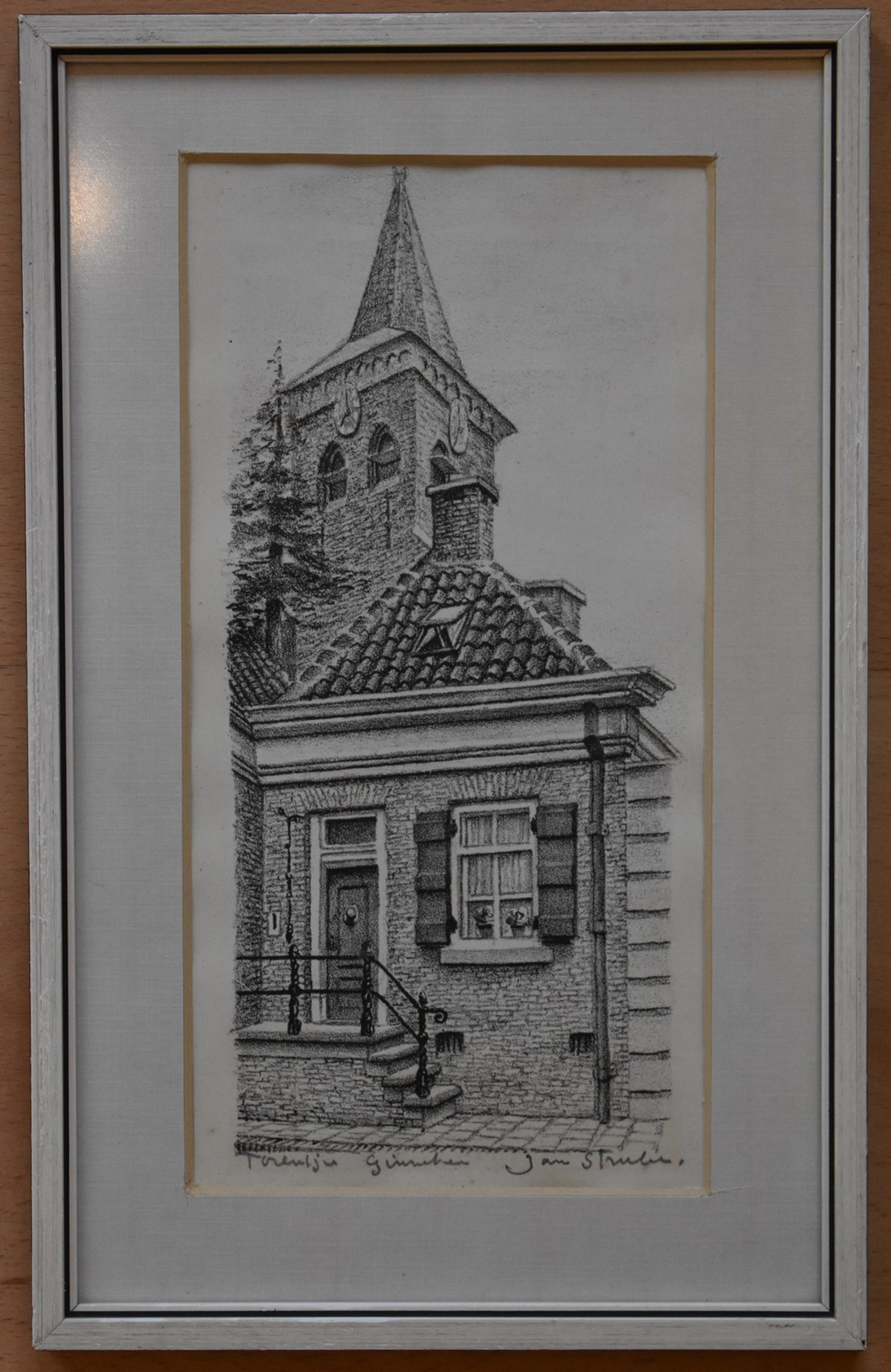 Het grafische werk van Jan Strube is gezocht. Het torentje van Ginneken wordt niet vaak aangeboden. Het lijstje is even geopend om de achterzijde van het werk te bekijken. -zie foto-. Nu is het weer dicht. Ooit is het werk verkocht bij kunsthandel Beekmans en Waning in Haarlem. Het werk is origineel gesigneerd en beschreven.