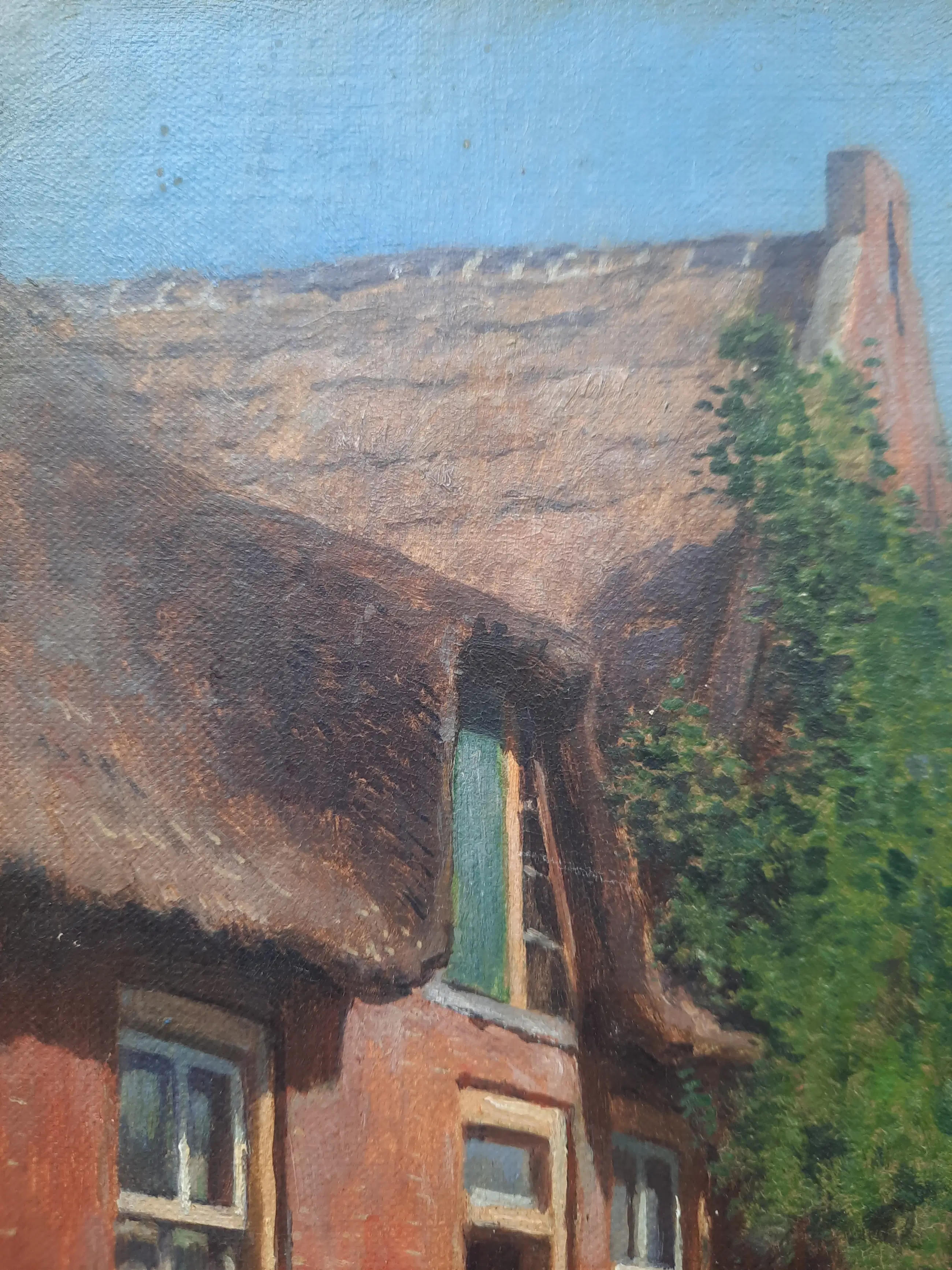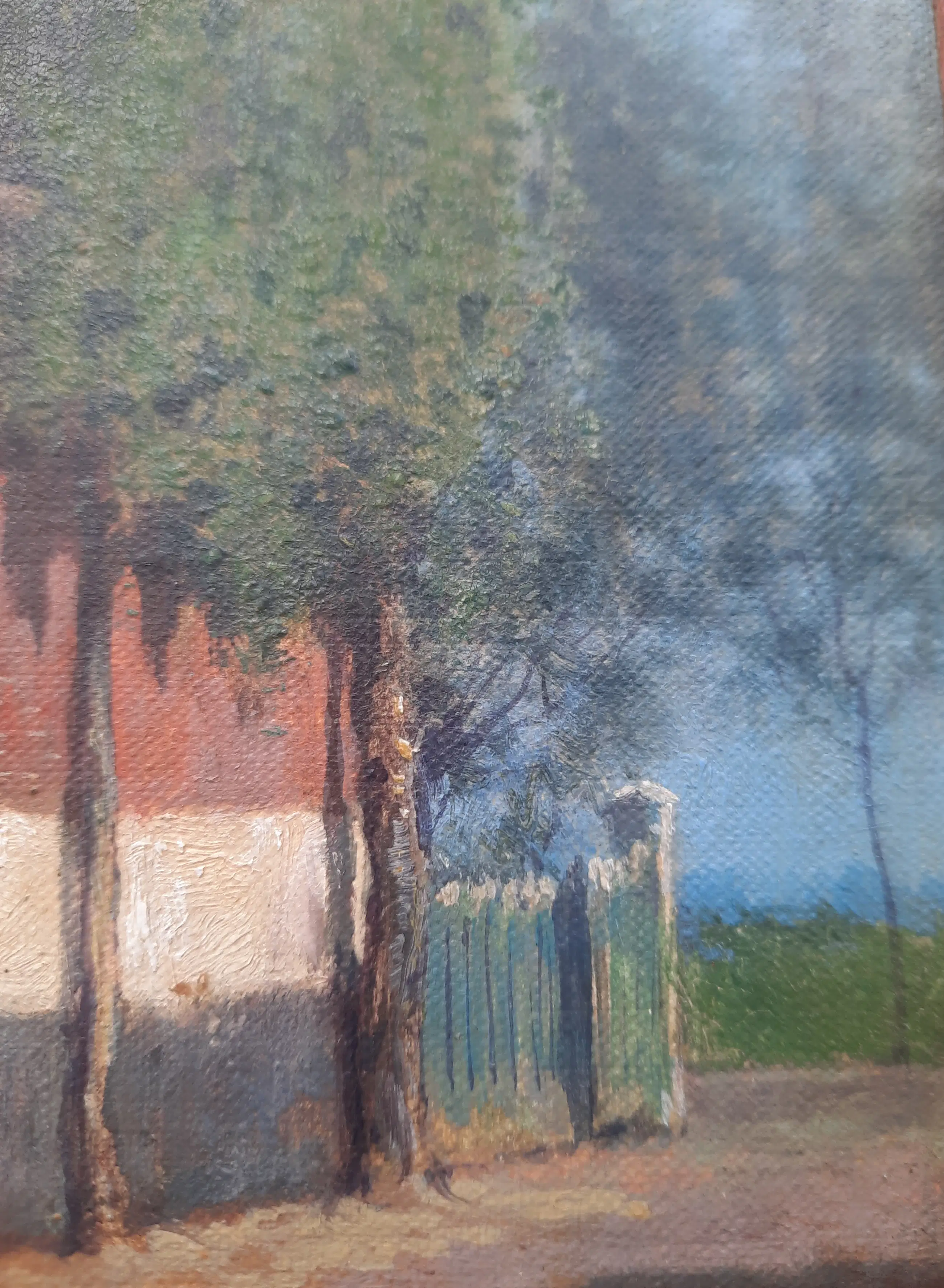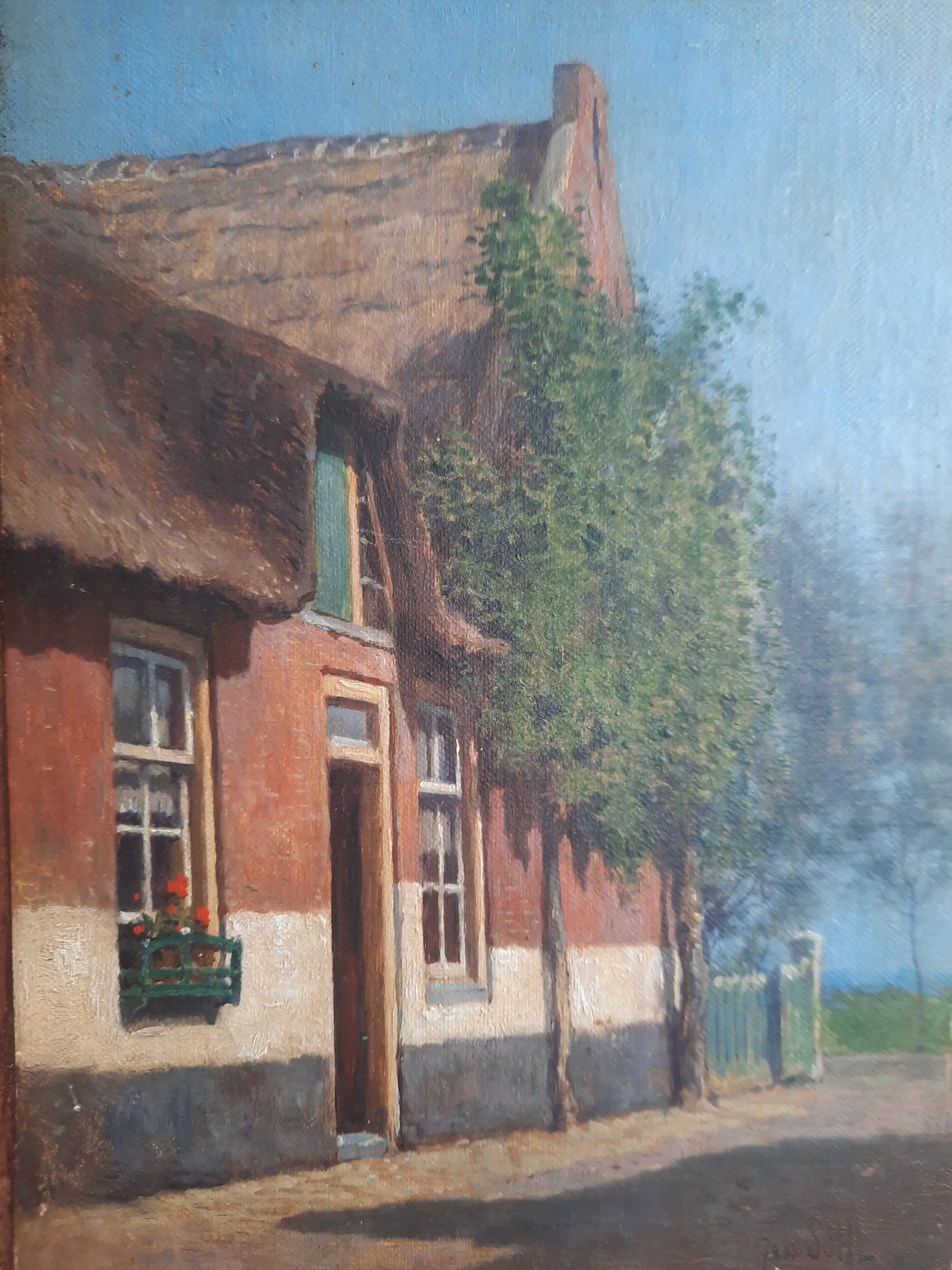 Fraai werk van Jan Sühl 1868 -1945 Een olieverf schilderij, geplakt door Sühl zelf op een eikenhouten paneel. Gesigneerd met de hand rechtsonder. Achterop het paneel met potlood geschreven :