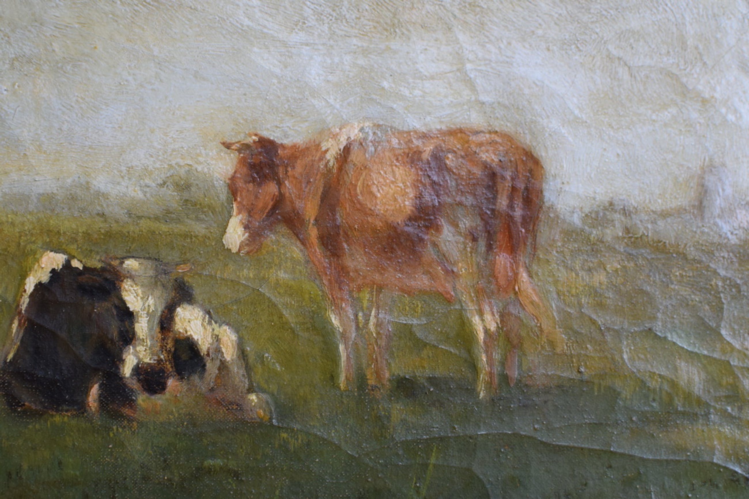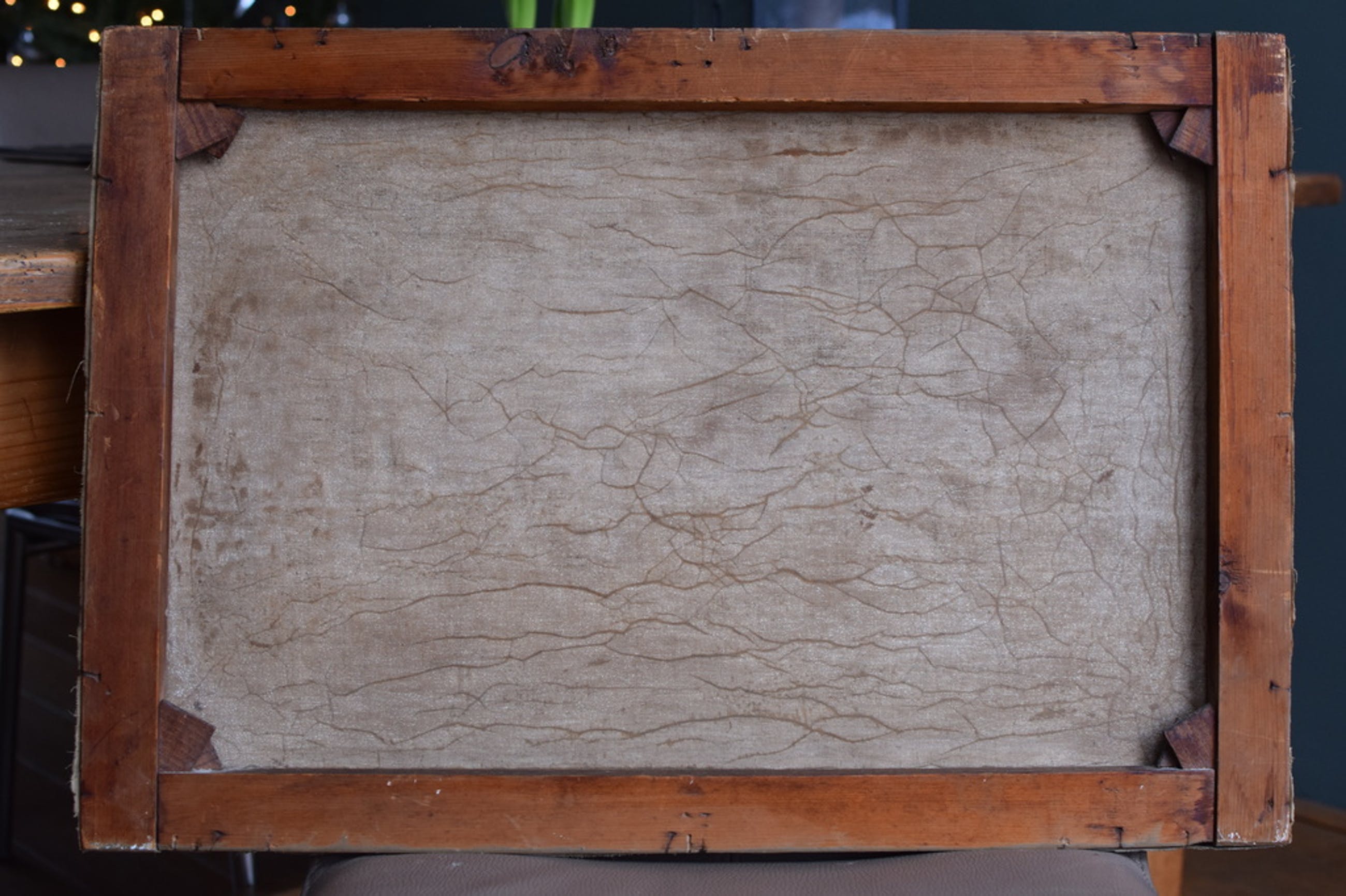 Conditie: redelijk goed, schilderij is licht gecraqueleerd