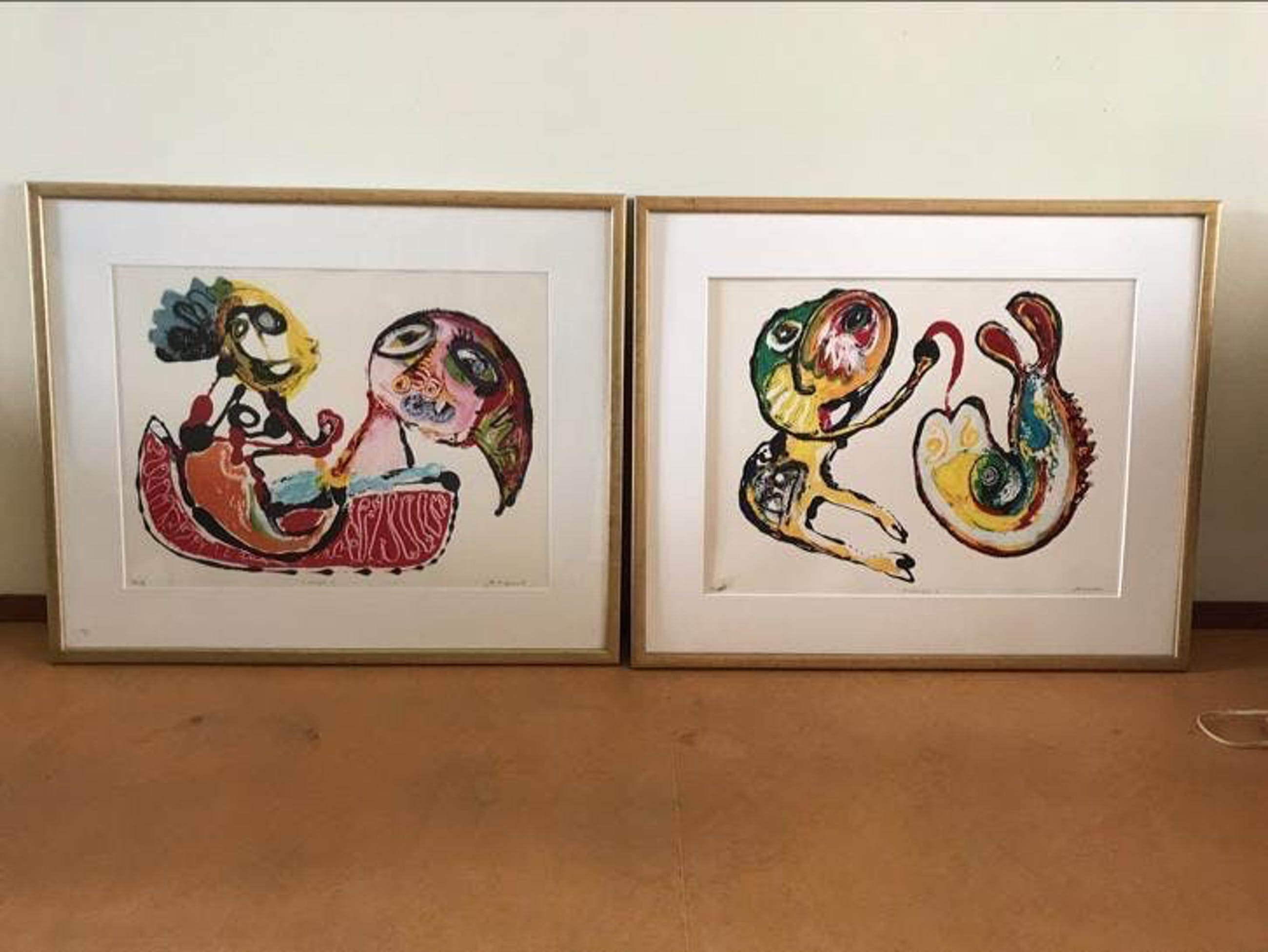 voor zijn werk diverse materialen. Werkt op alle ondergronden die hij daarvoor