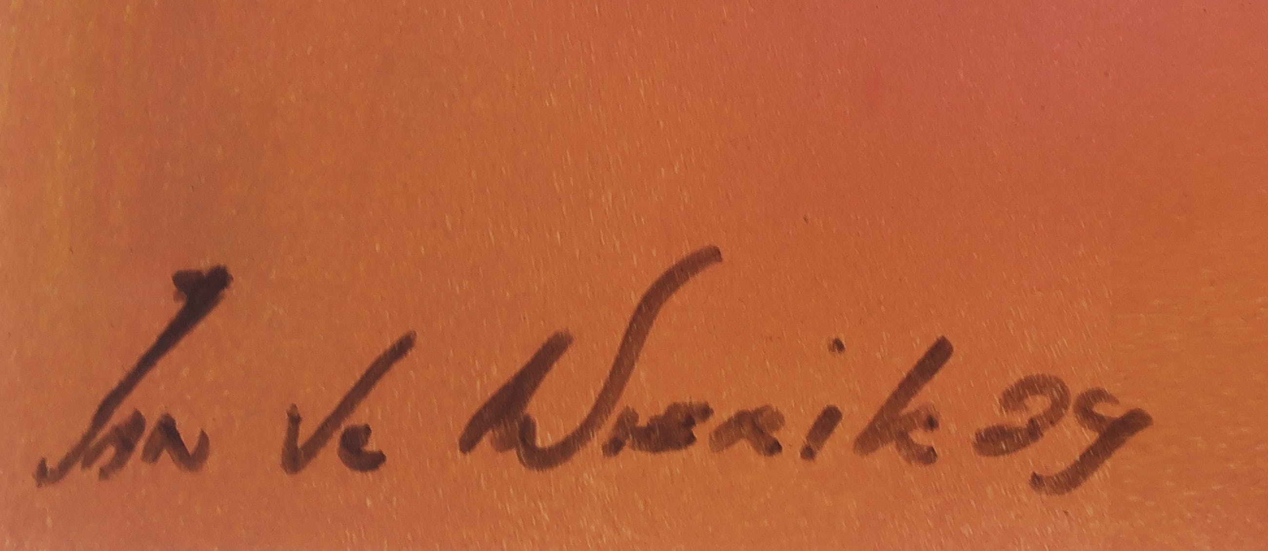 | Doordat het werk pasteus geschilderd is, zitten op enkele plekken zeer kleine barstjes ontstaan bij het drogen van de verf (inherent aan de techniek) | |||
