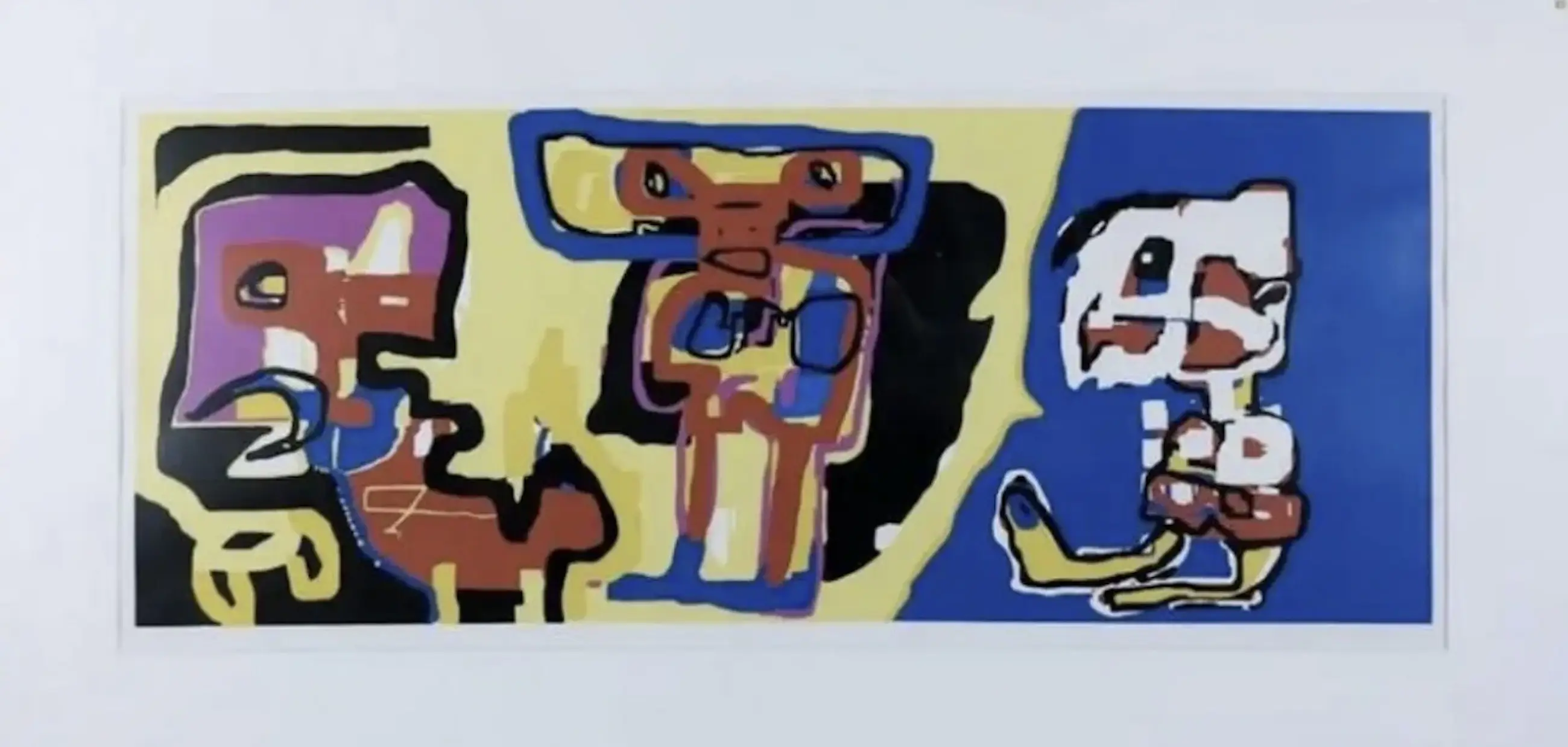 Fraaie grote zeefdruk van Jan te Wierik in Cobra stijl.