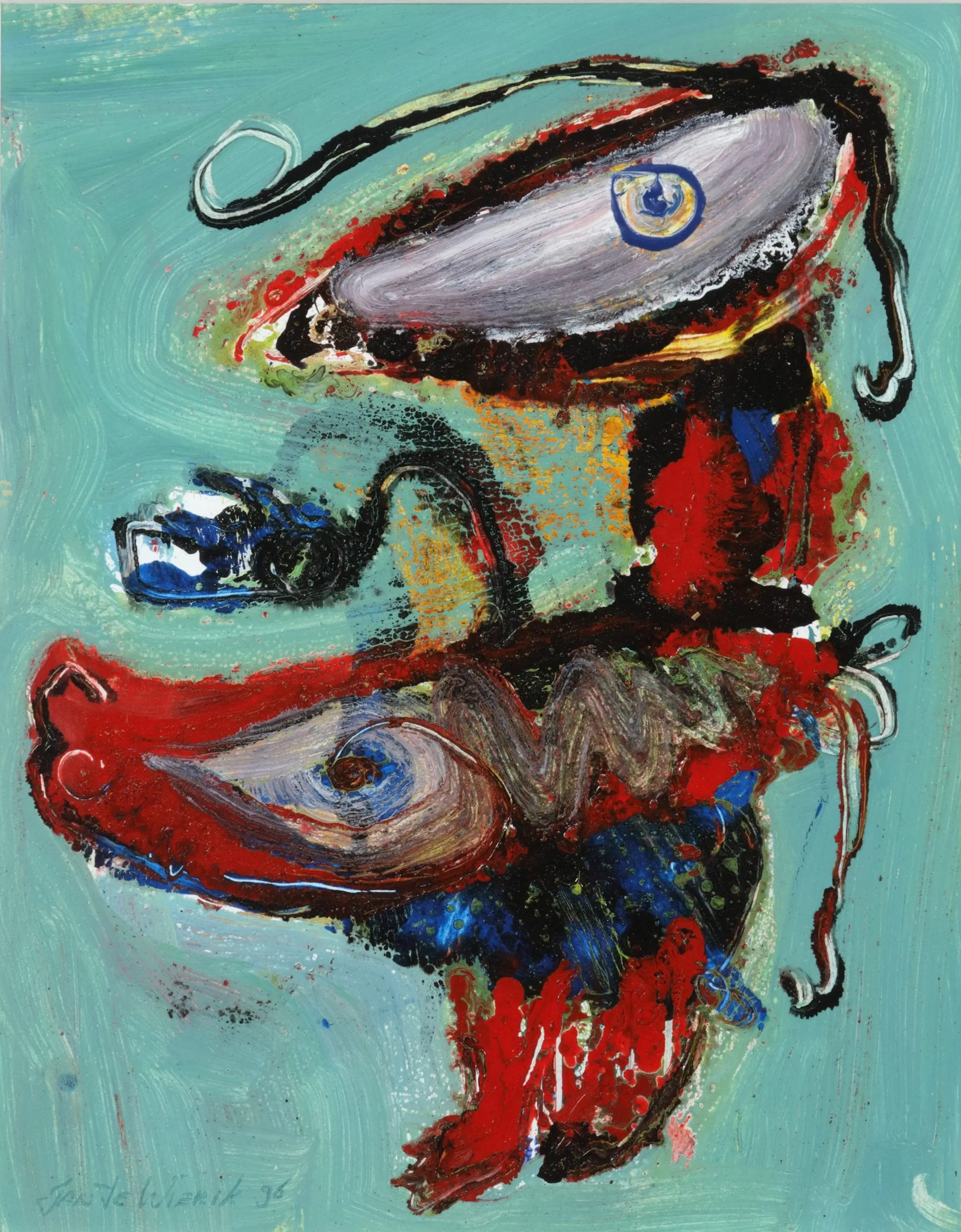 Mixed media. 23 x 18 cm. Signed and dated 1996 lower left.