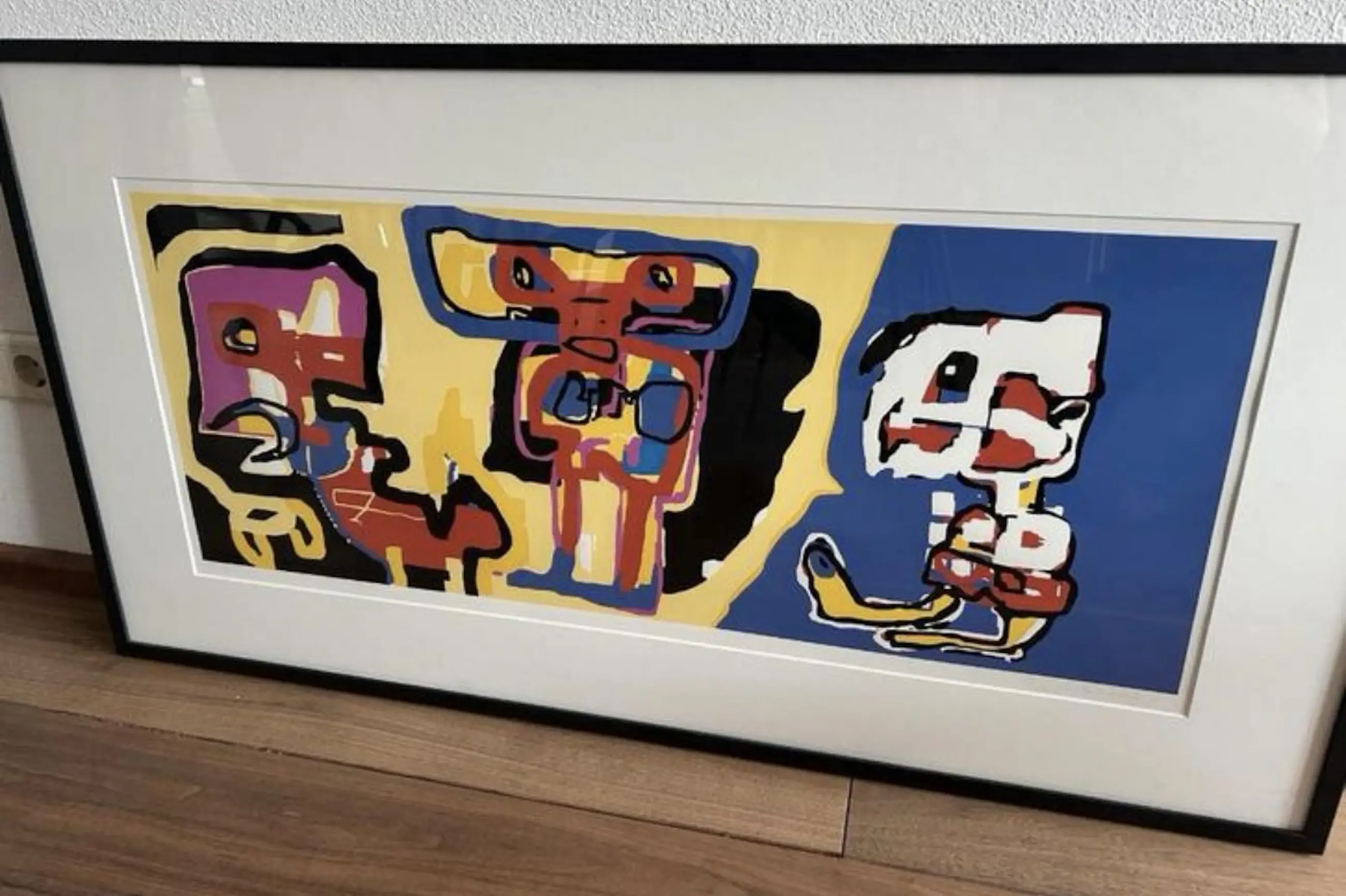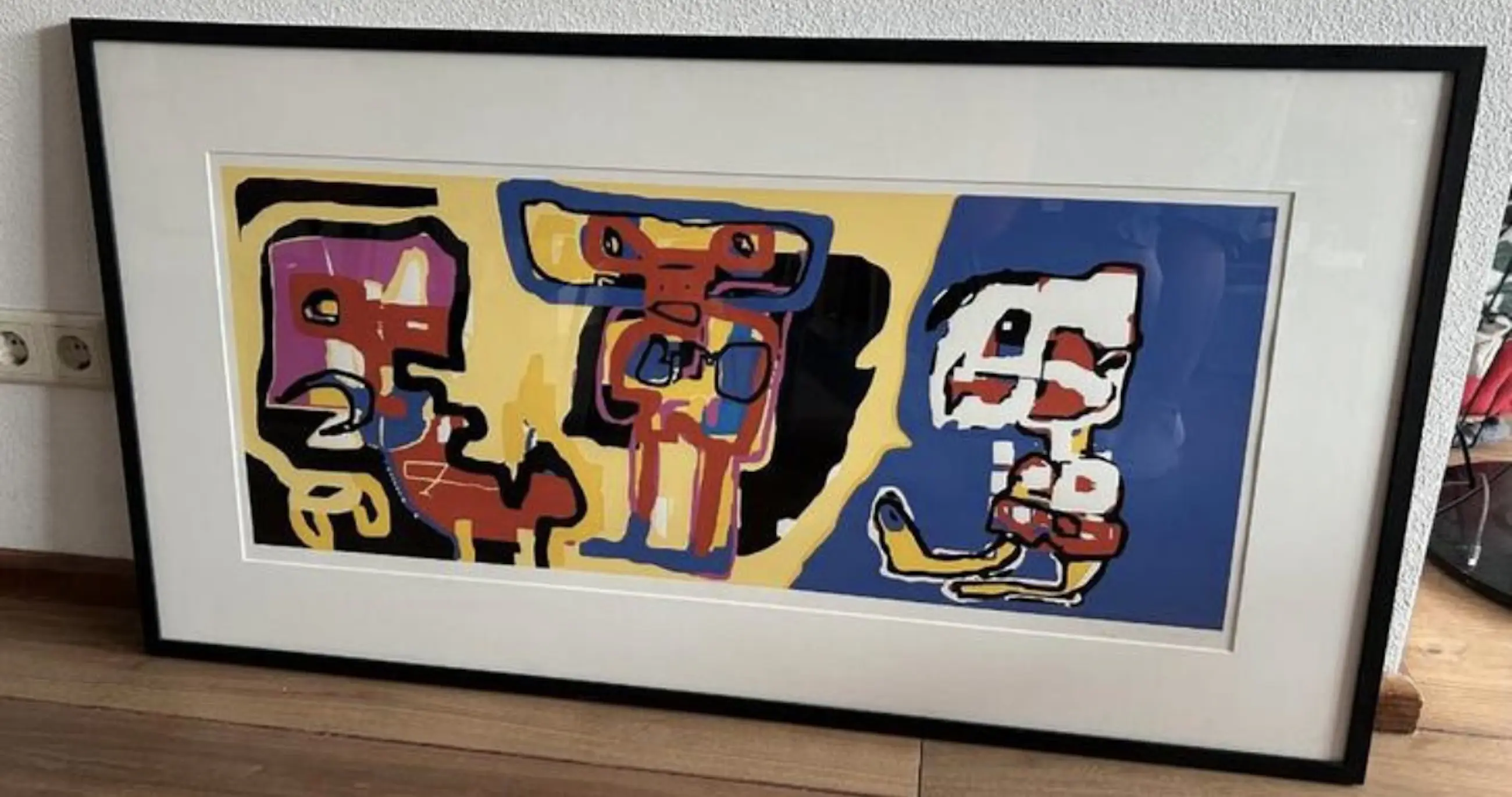 Fraaie zeefdruk in de Cobra stijl van Jan te Wierik.
