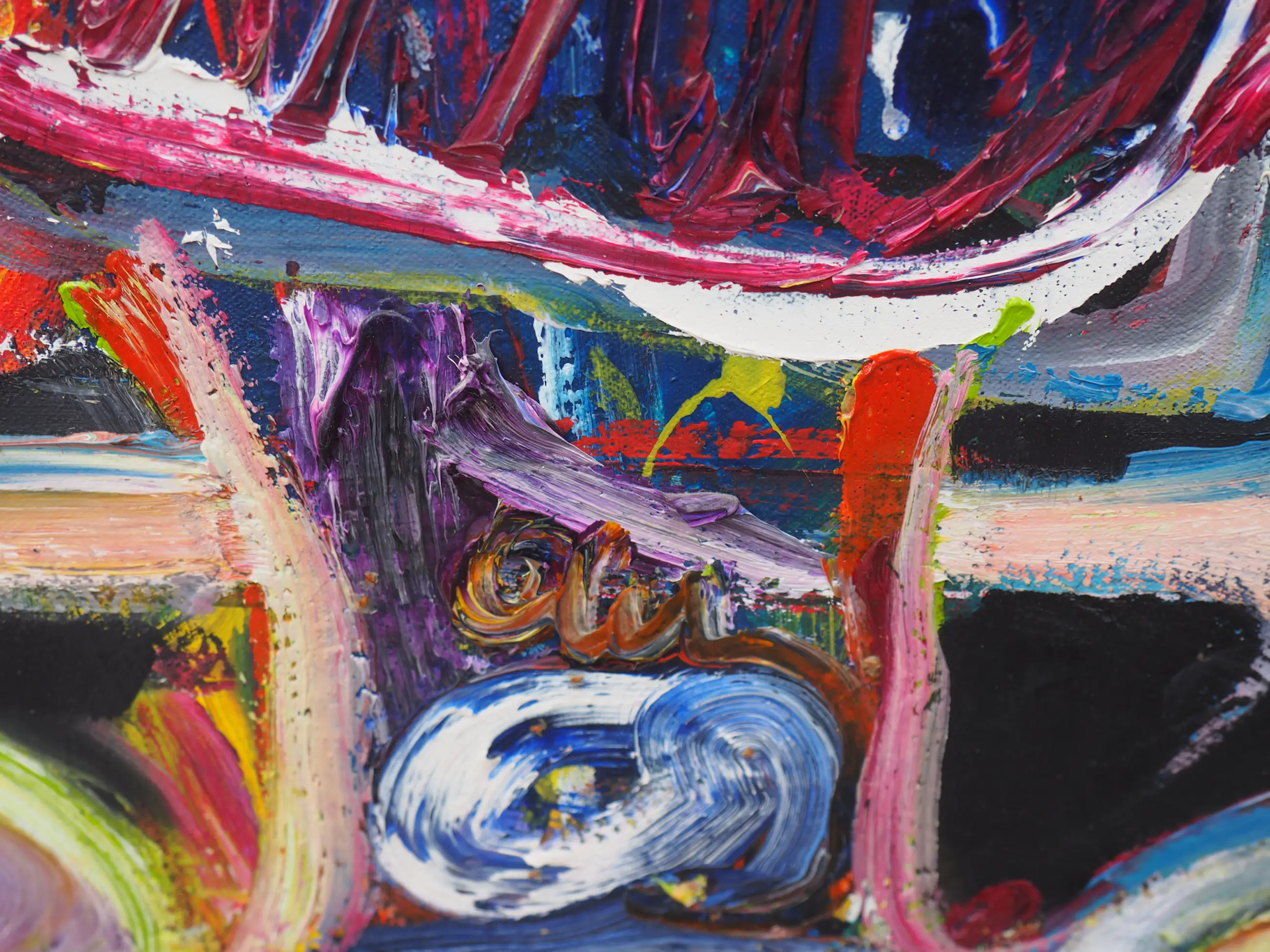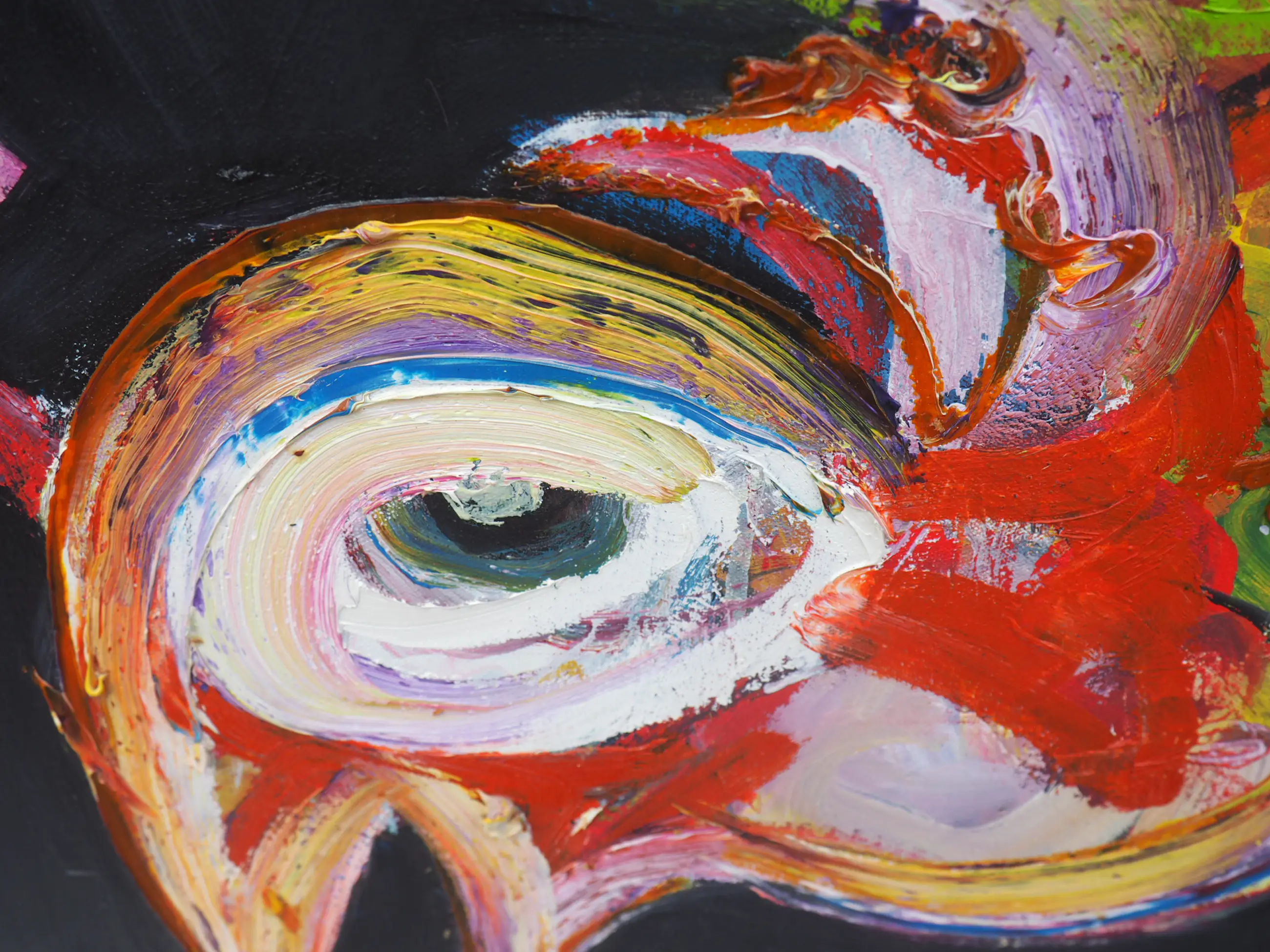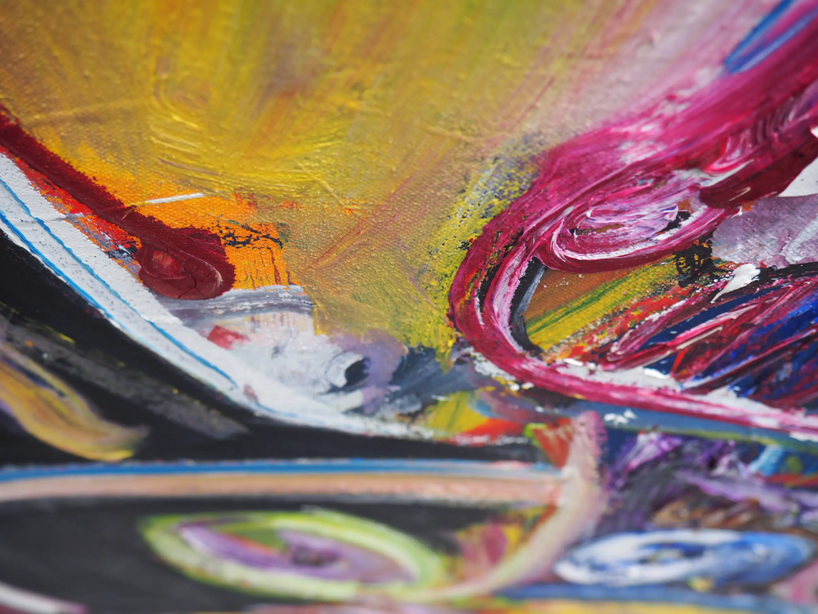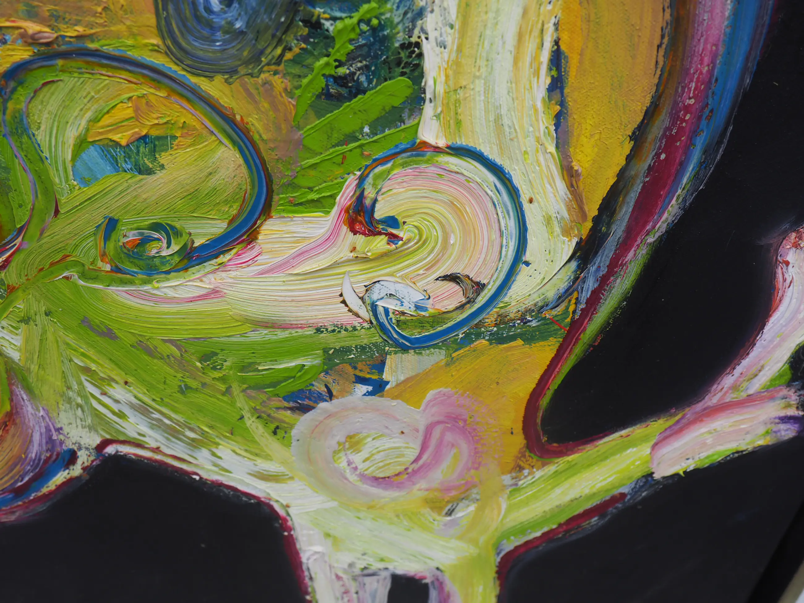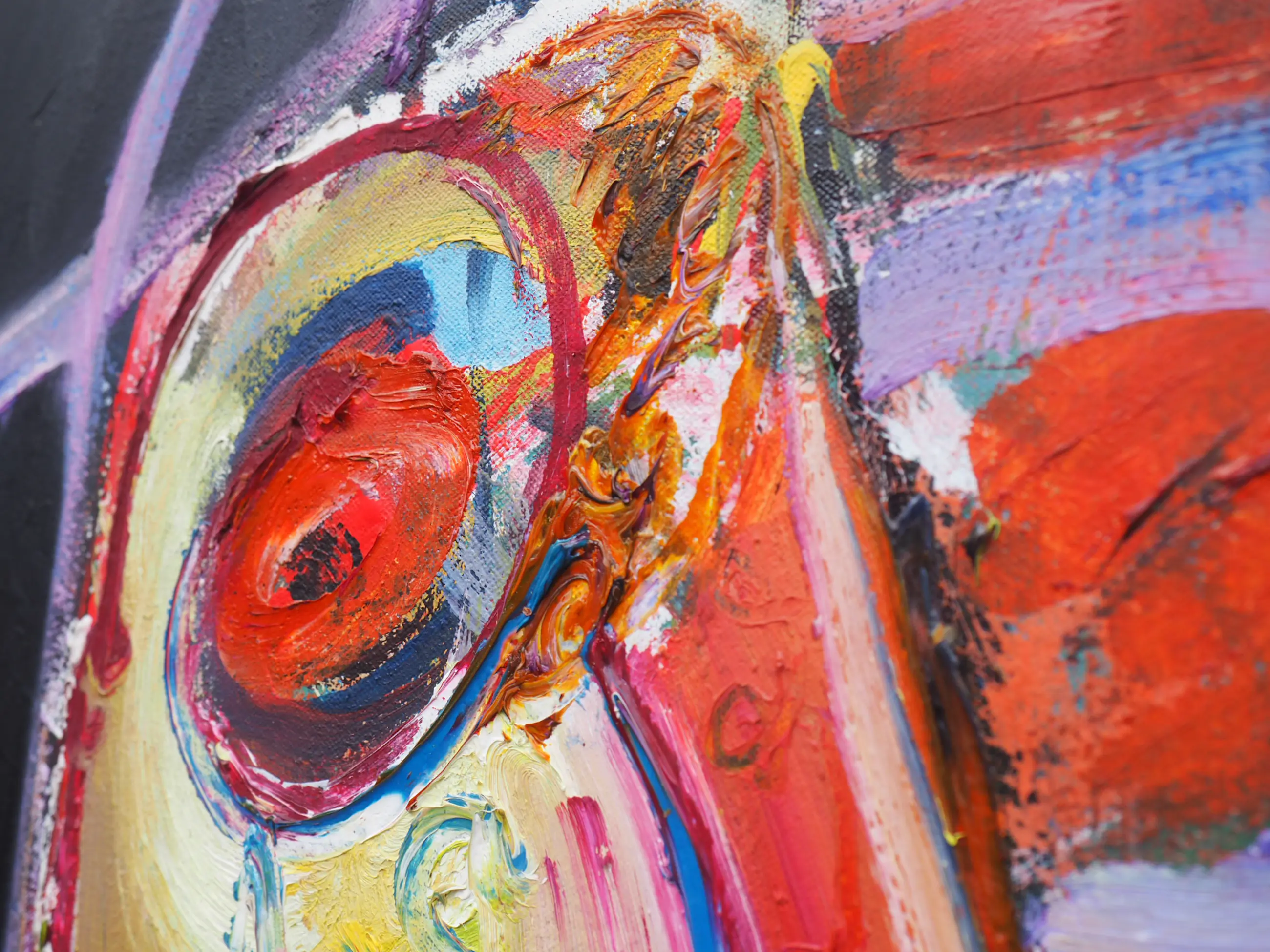 Dit prachtige kleurrijke werk van Jan te Wierik spat van het doek. De felgekleurde - en voor Te Wierik zo kenmerkende - fabeldieren zijn met gemengde technieken aangebracht op het doek. De dikke klodders verf en de snelle streken op de zwarte achtergrond geven het werk diepte en zorgen er bijna voor dat de fabeldieren tot leven komen.