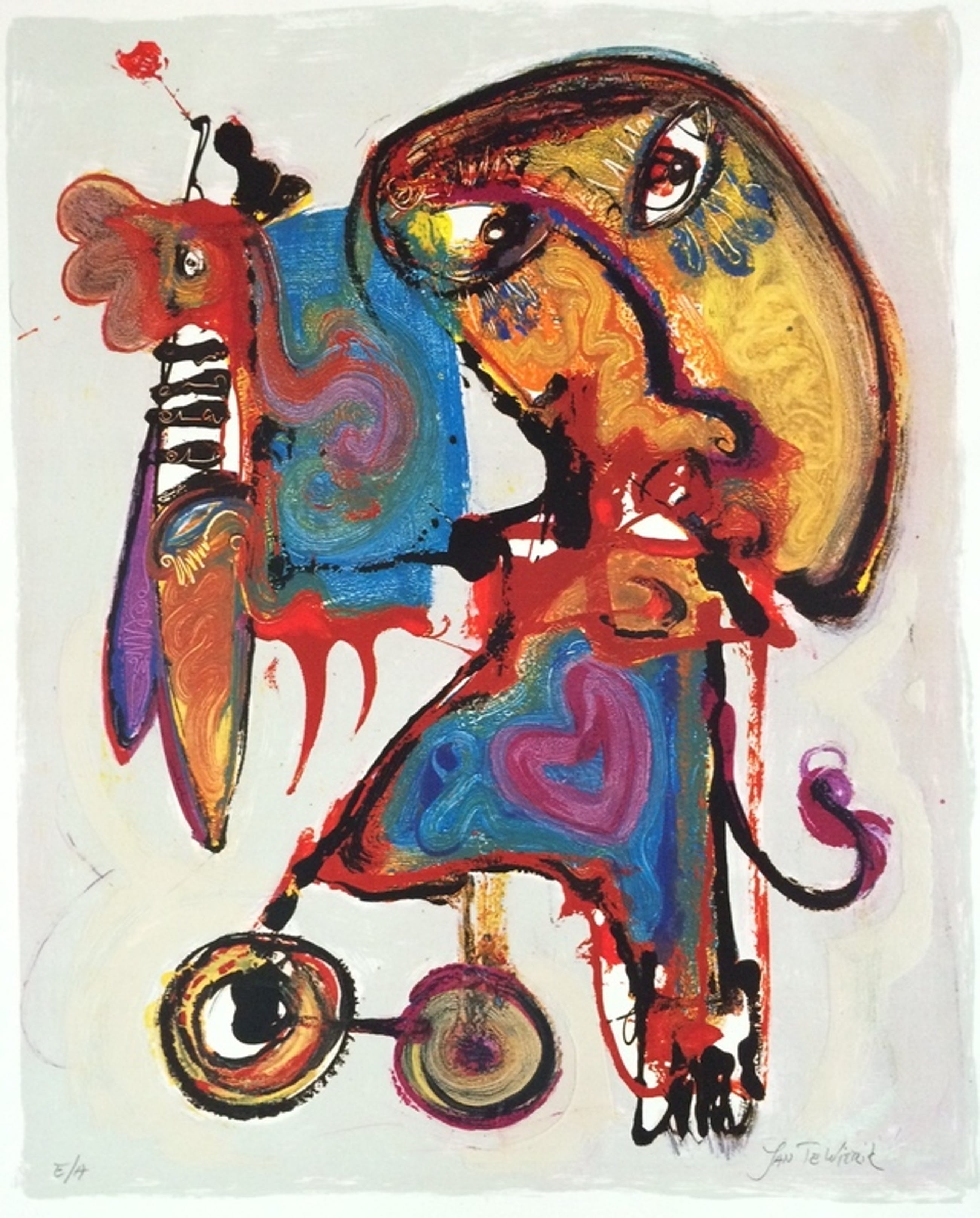 Prachtige zeefdruk van Jan te Wierik , een E/A met afmeting van het beeld 62 x 52 cm. In het echt komen de kleuren beter tot hun recht dan op een foto. U kunt de zeefdruk ophalen bij Van Bellen Art in Willemstad (NB) of Brielle (ZH). Verzenden Nederland €. 15,- Belgie € 25,- . De inlijsting kunnen we ook voor u verzorgen, maar dan moet het wel opgehaald worden.