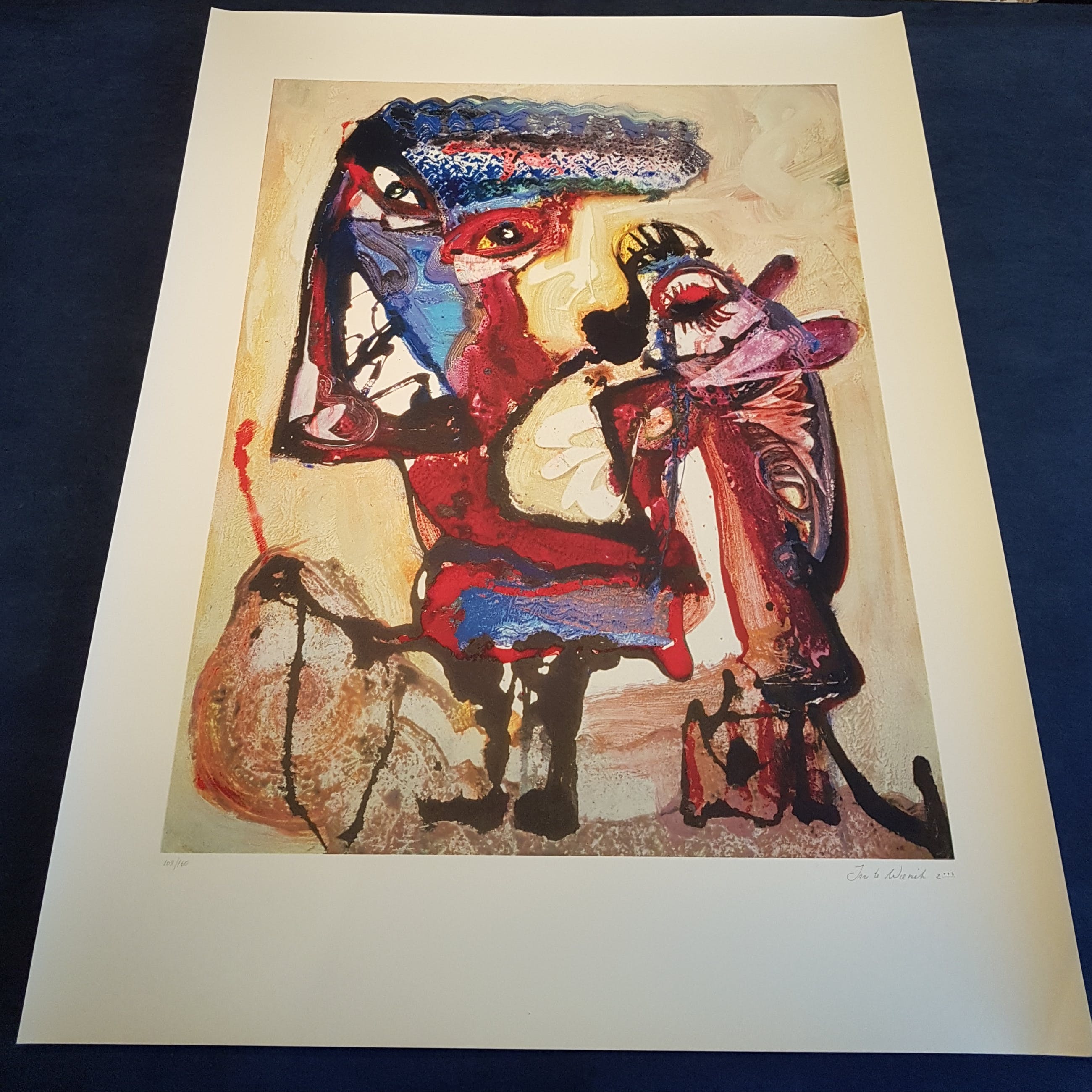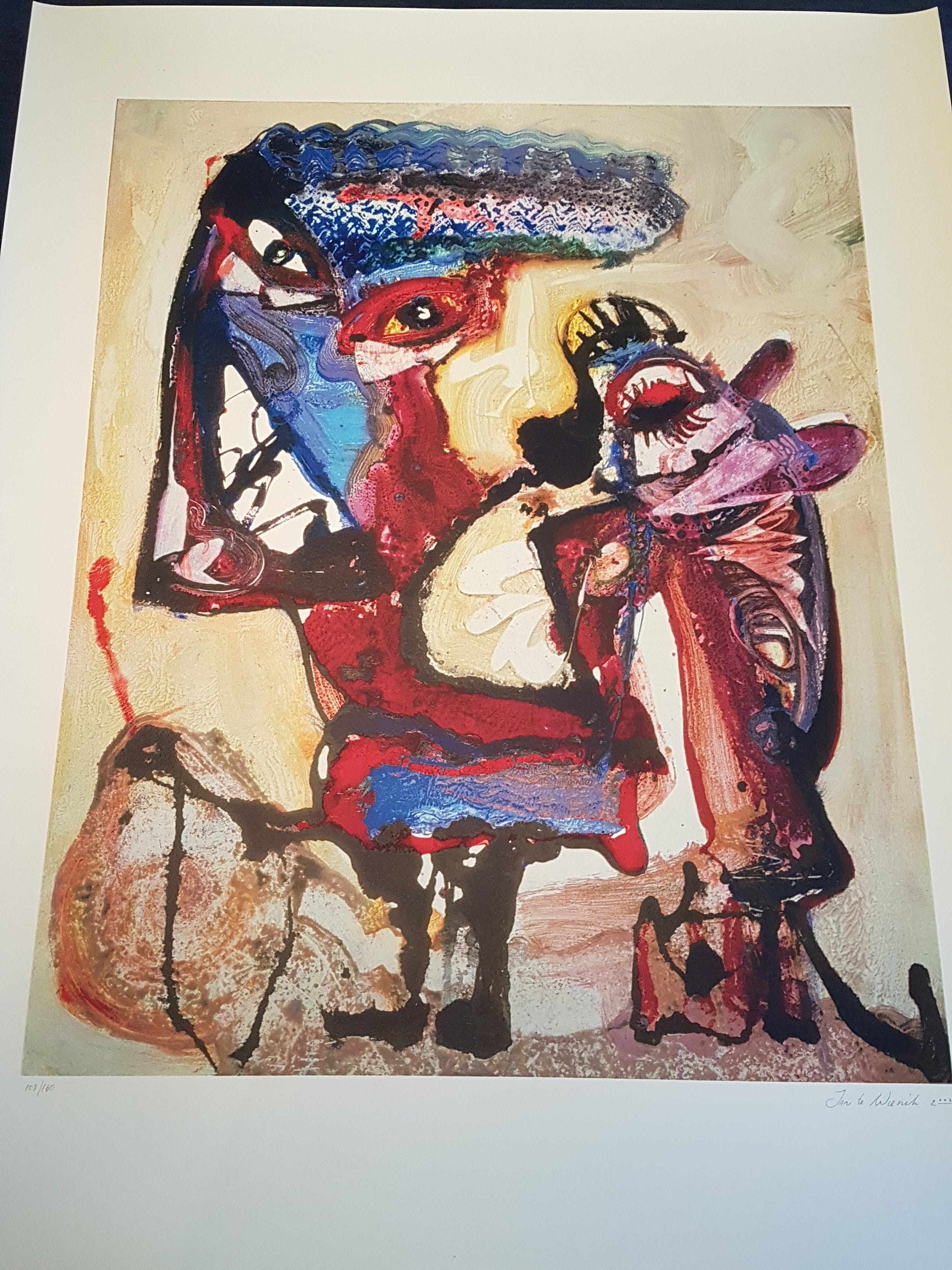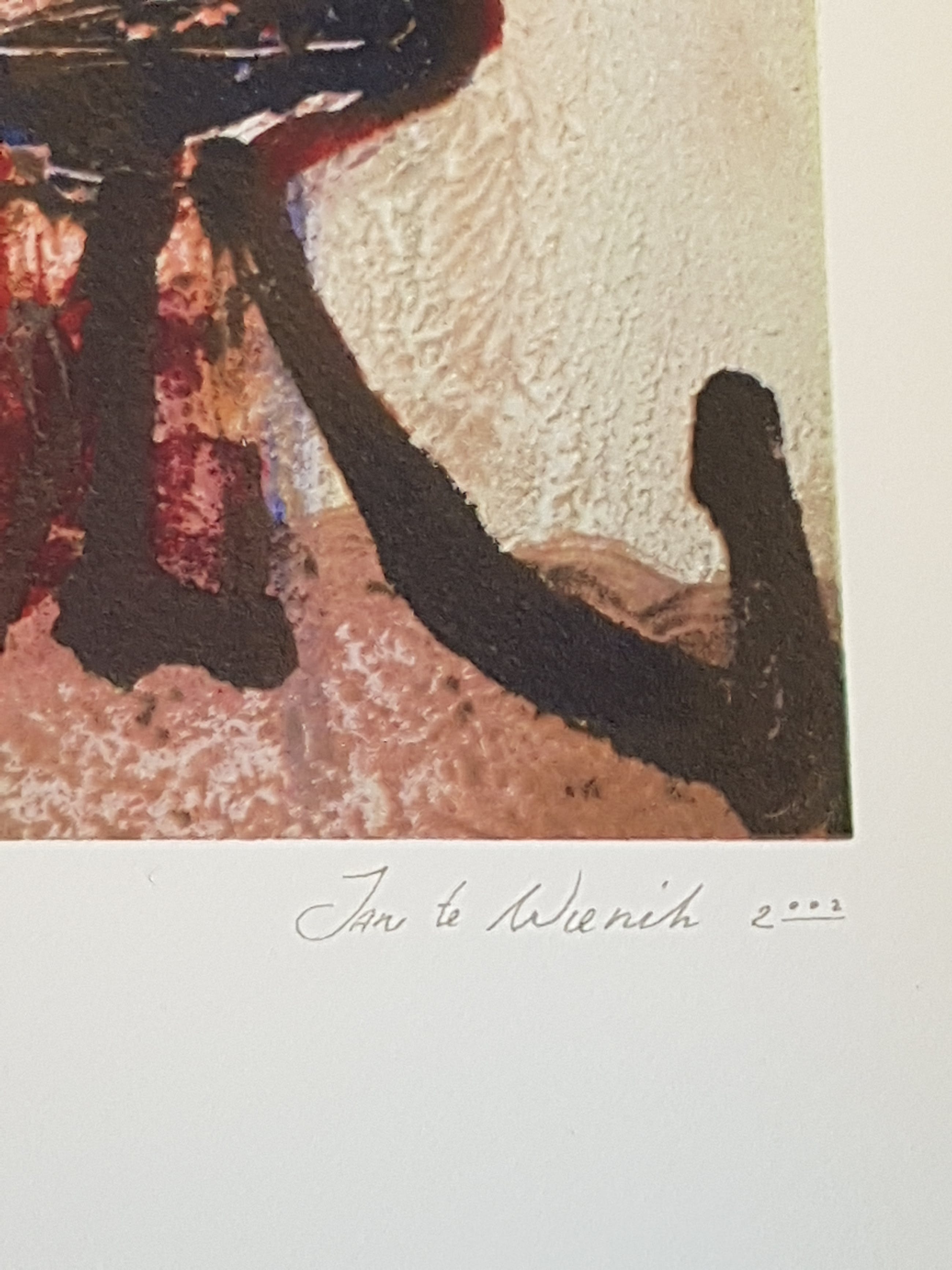 Hoogwaardige zeefdruk van de bekenden Nederlandse kunstenaar Jan te wierik op hand geschept papier gesigneerd en genummerd door de kunstenaars ieder werk heeft een gewicht van 300 gram zoals het hoort bij een originele zeefdruk