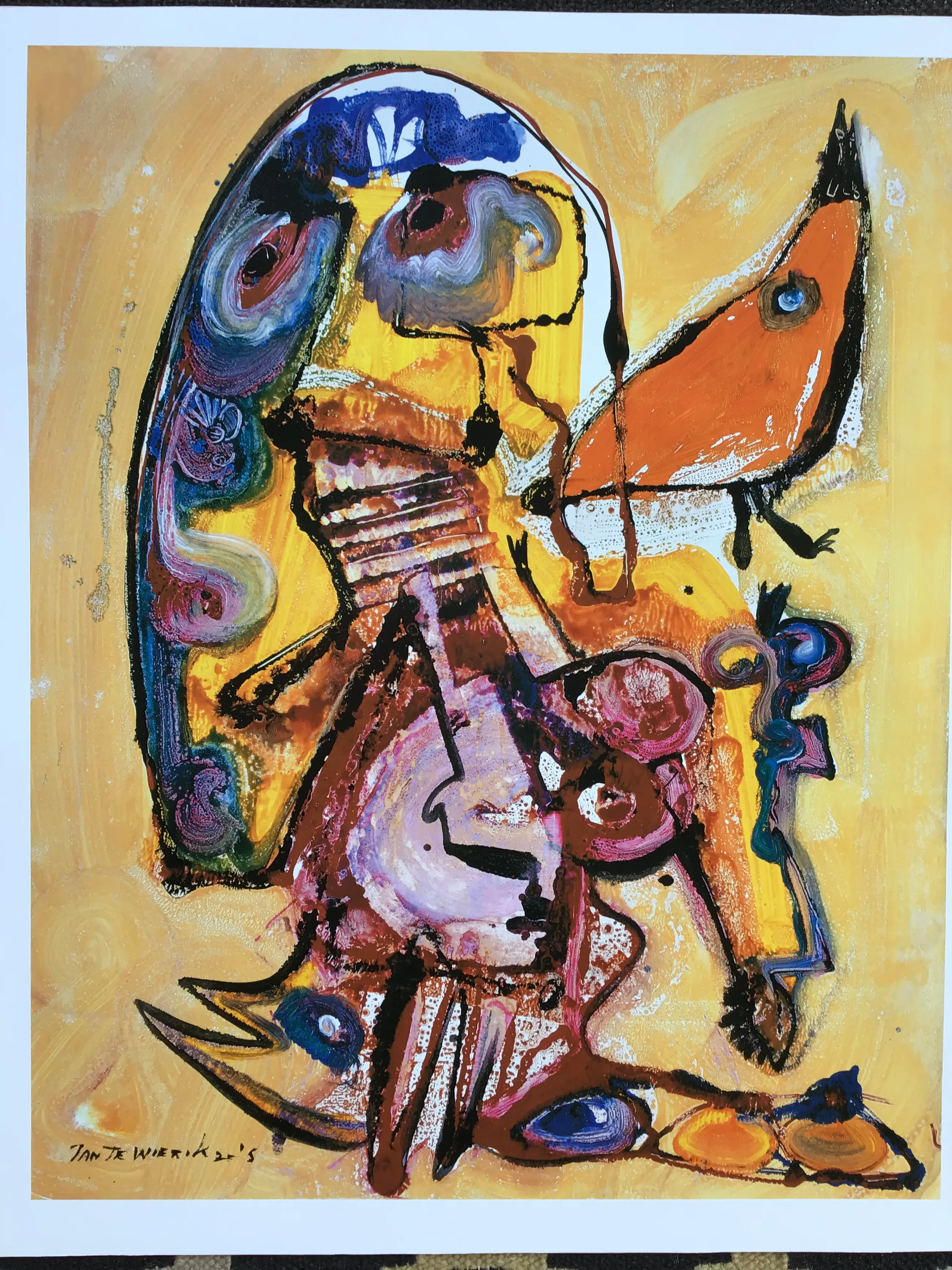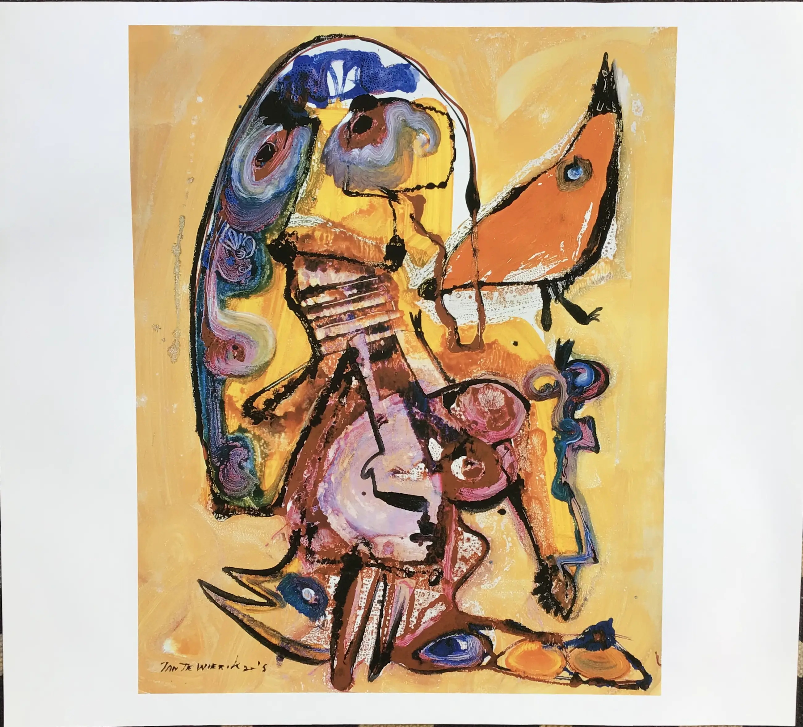 Jan te Wierik Mooie offsetlitho naar schilderij Titel Oranje Vogel Afmetingen 42,5 x 47,5 cm zwaar papier Conditie goed Wordt aangetekend verzonden