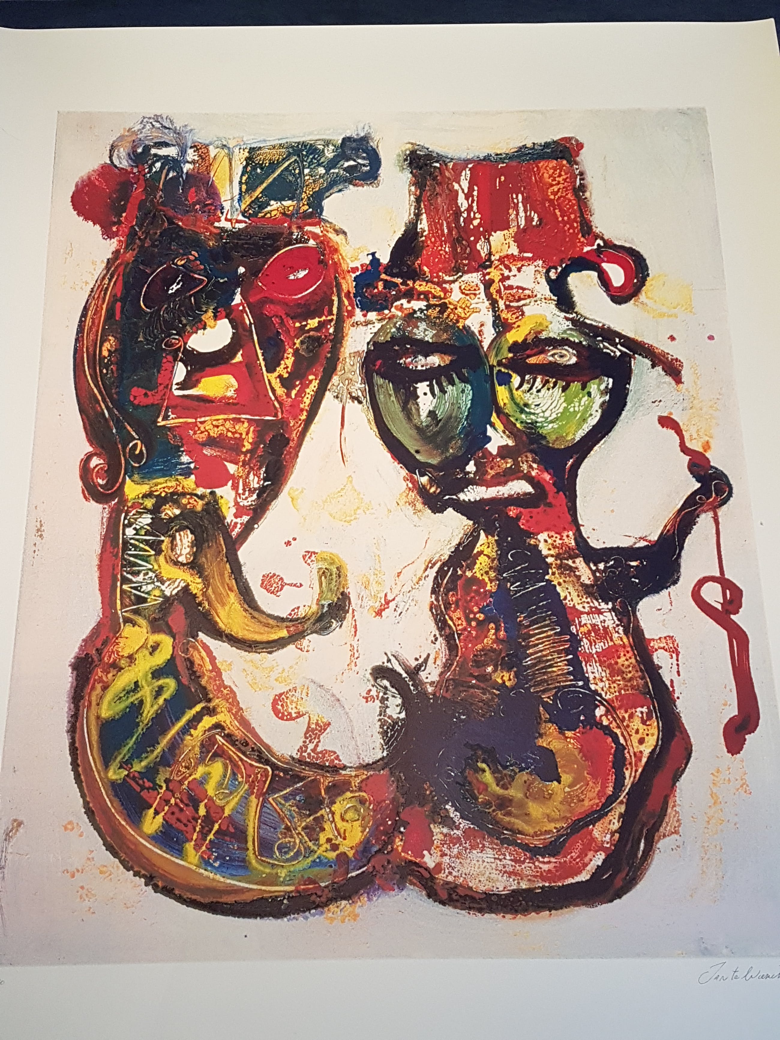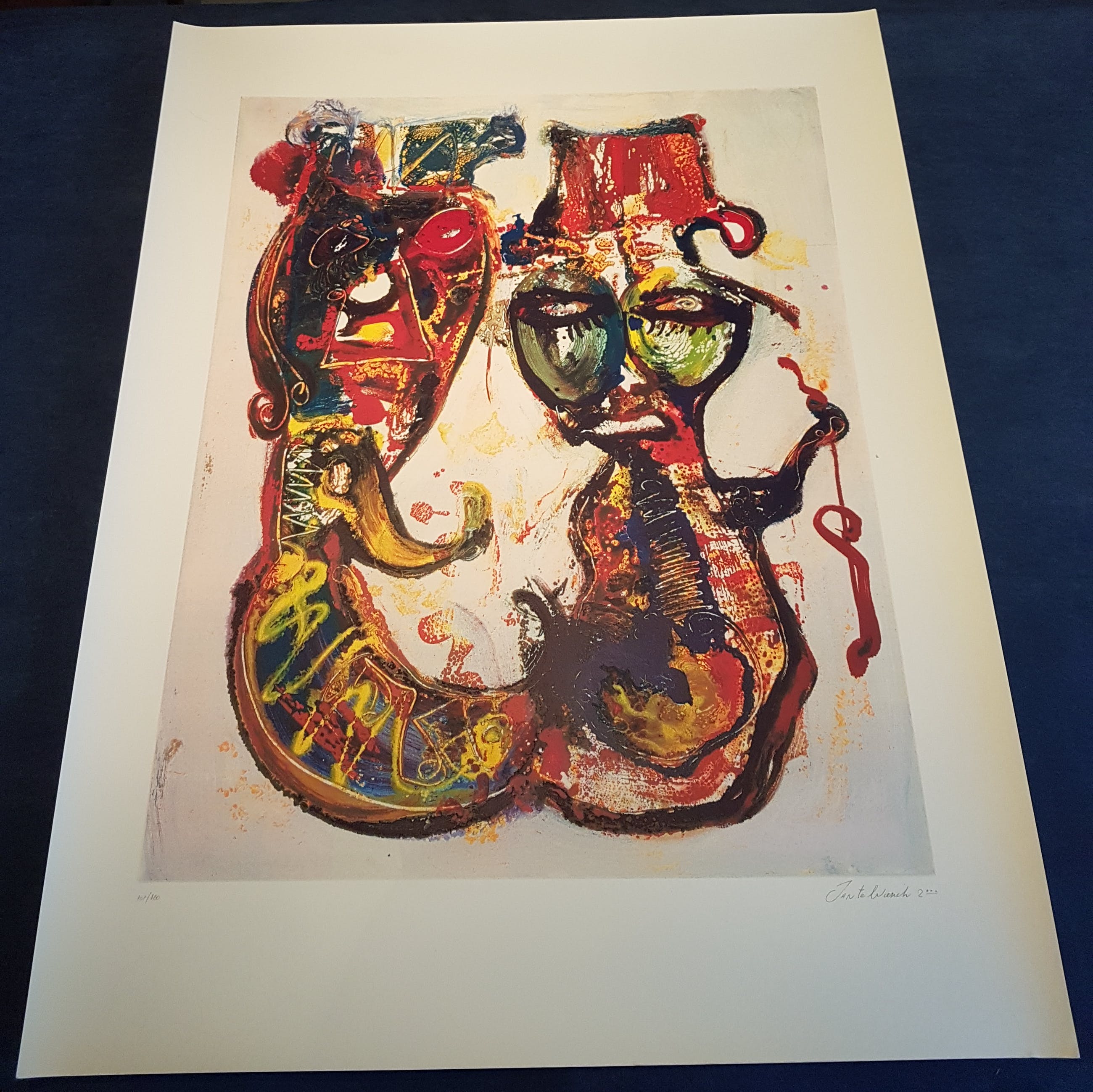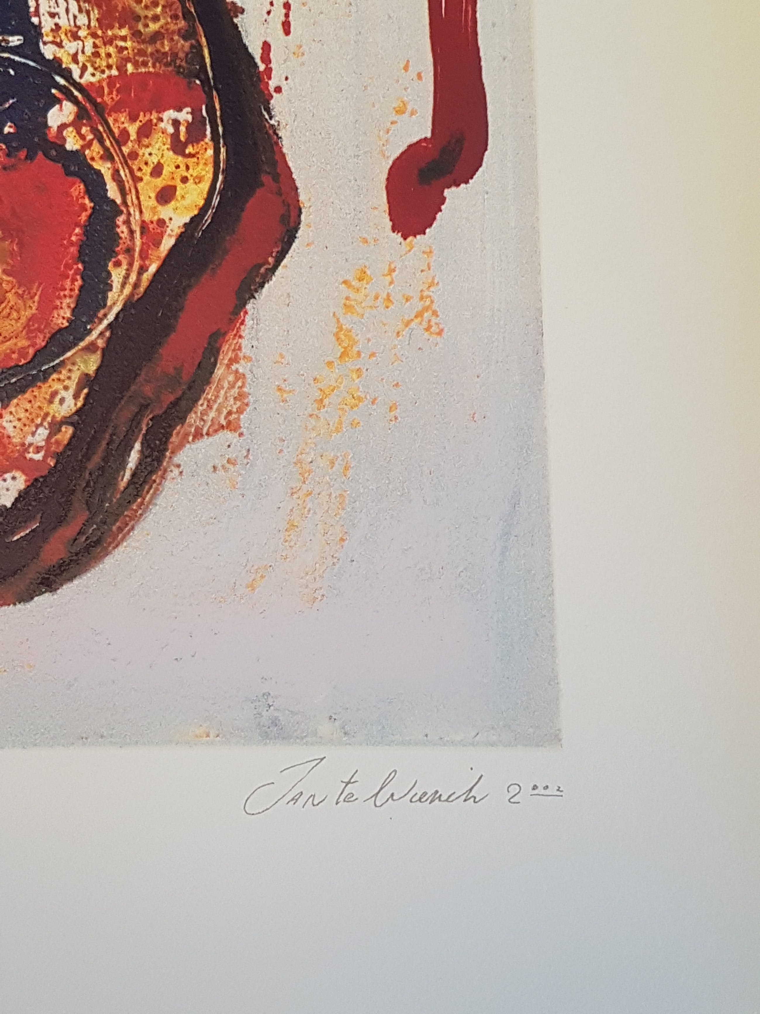 Hoogwaardige zeefdruk van de bekenden Nederlandse kunstenaar Jan te wierik op hand geschept papier gesigneerd en genummerd door de kunstenaars ieder werk heeft een gewicht van 300 gram zoals het hoort bij een originele zeefdruk