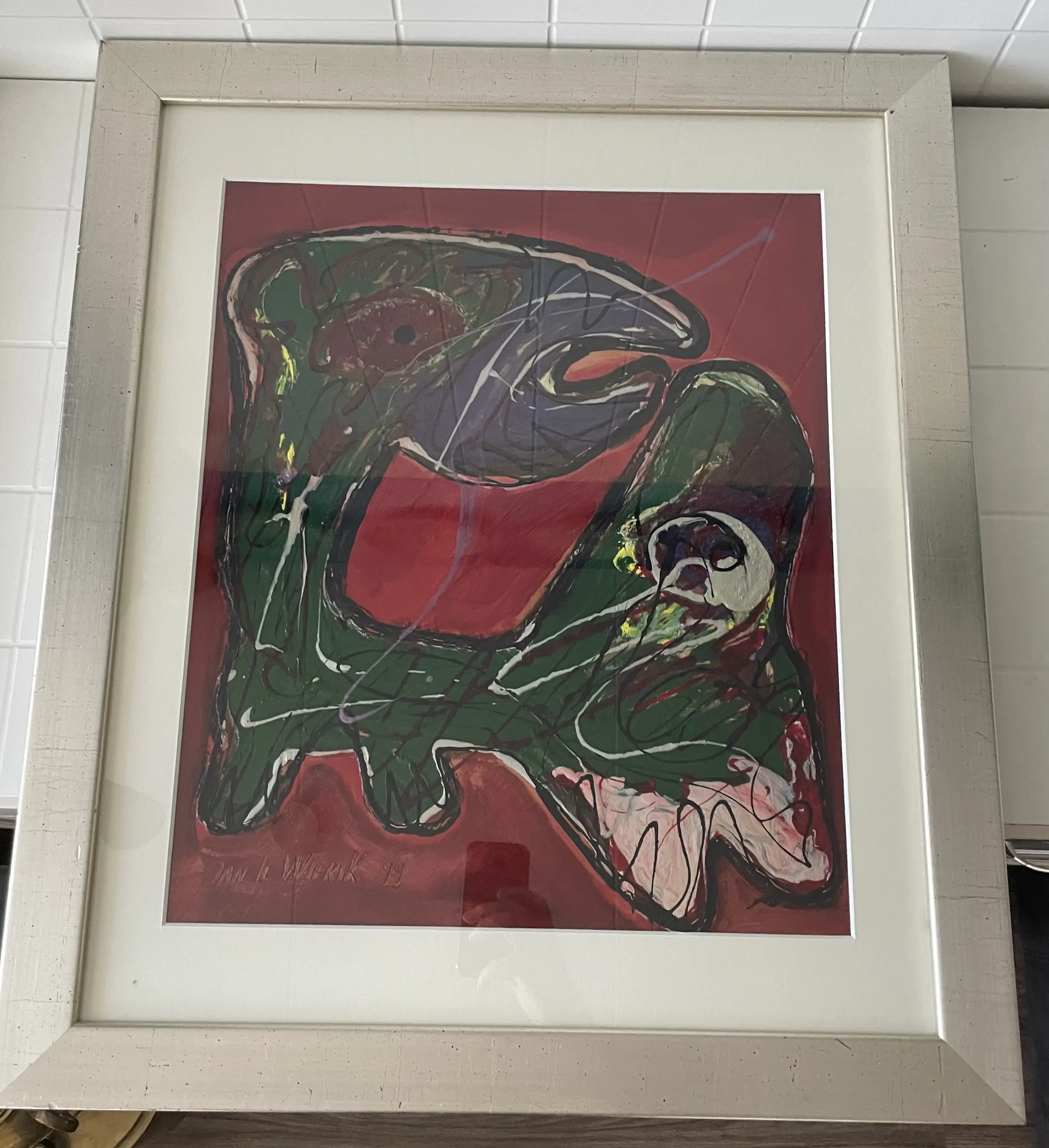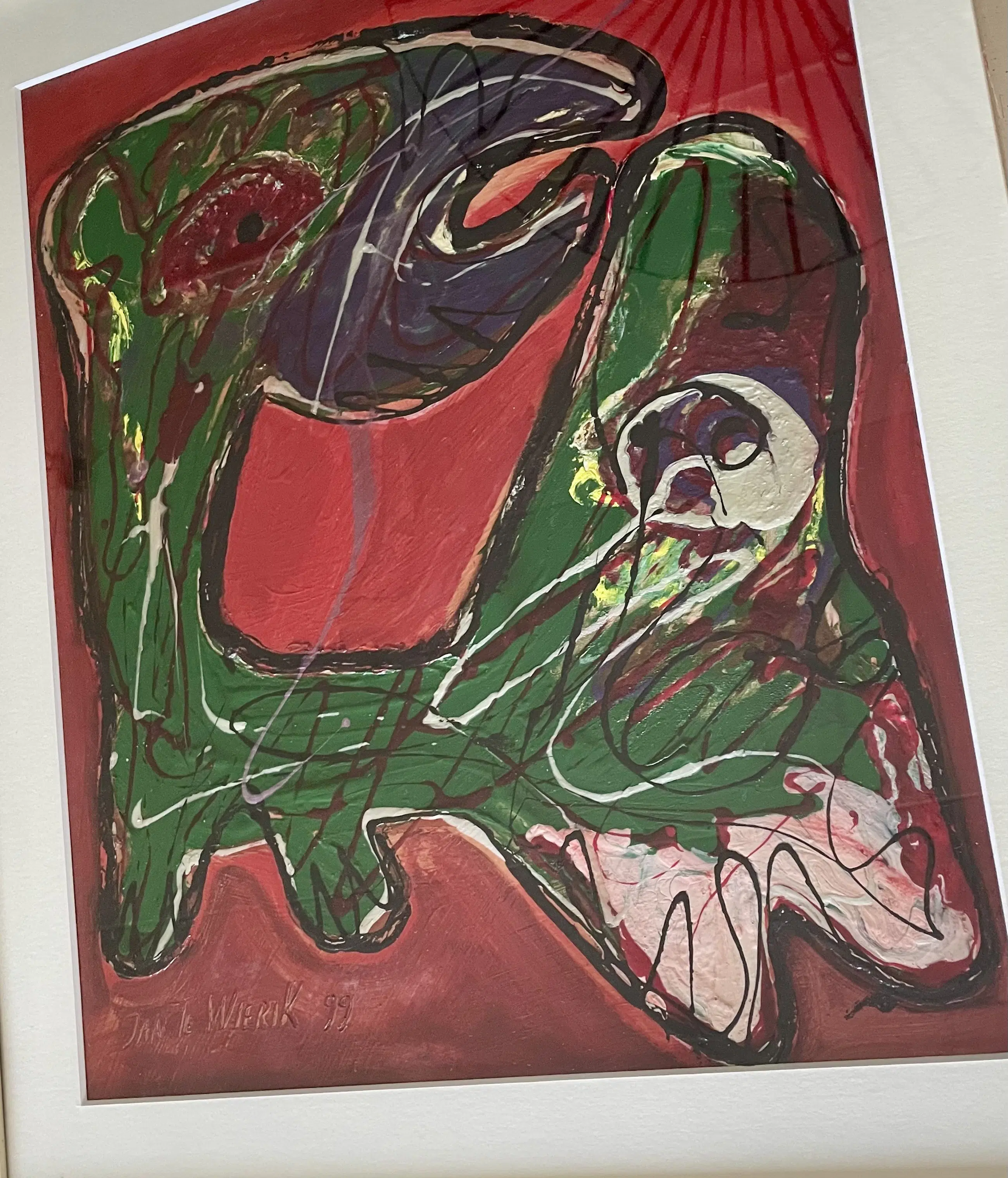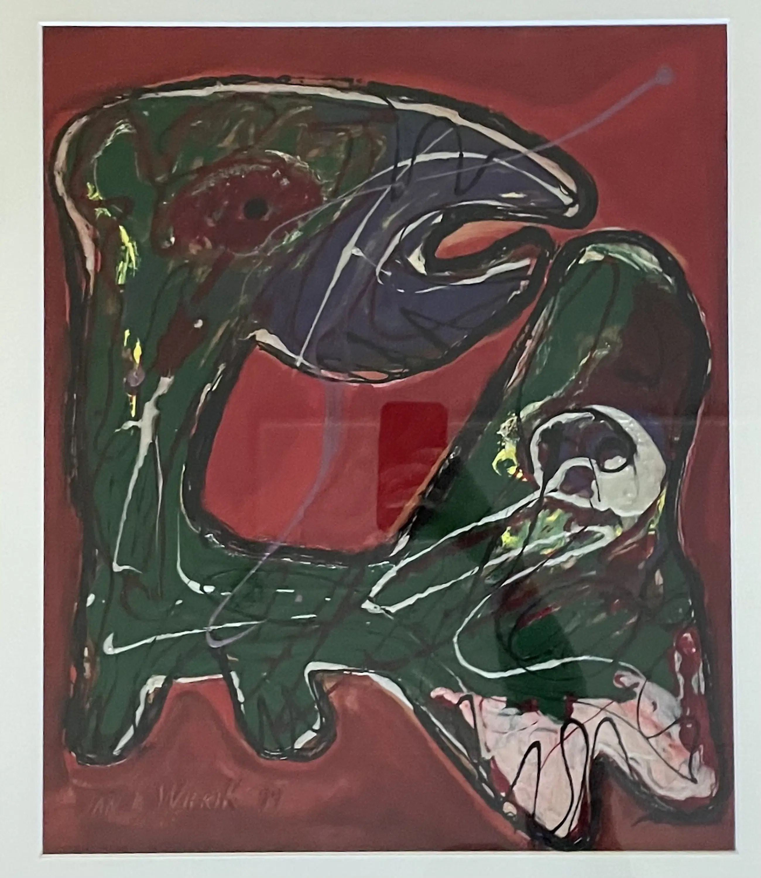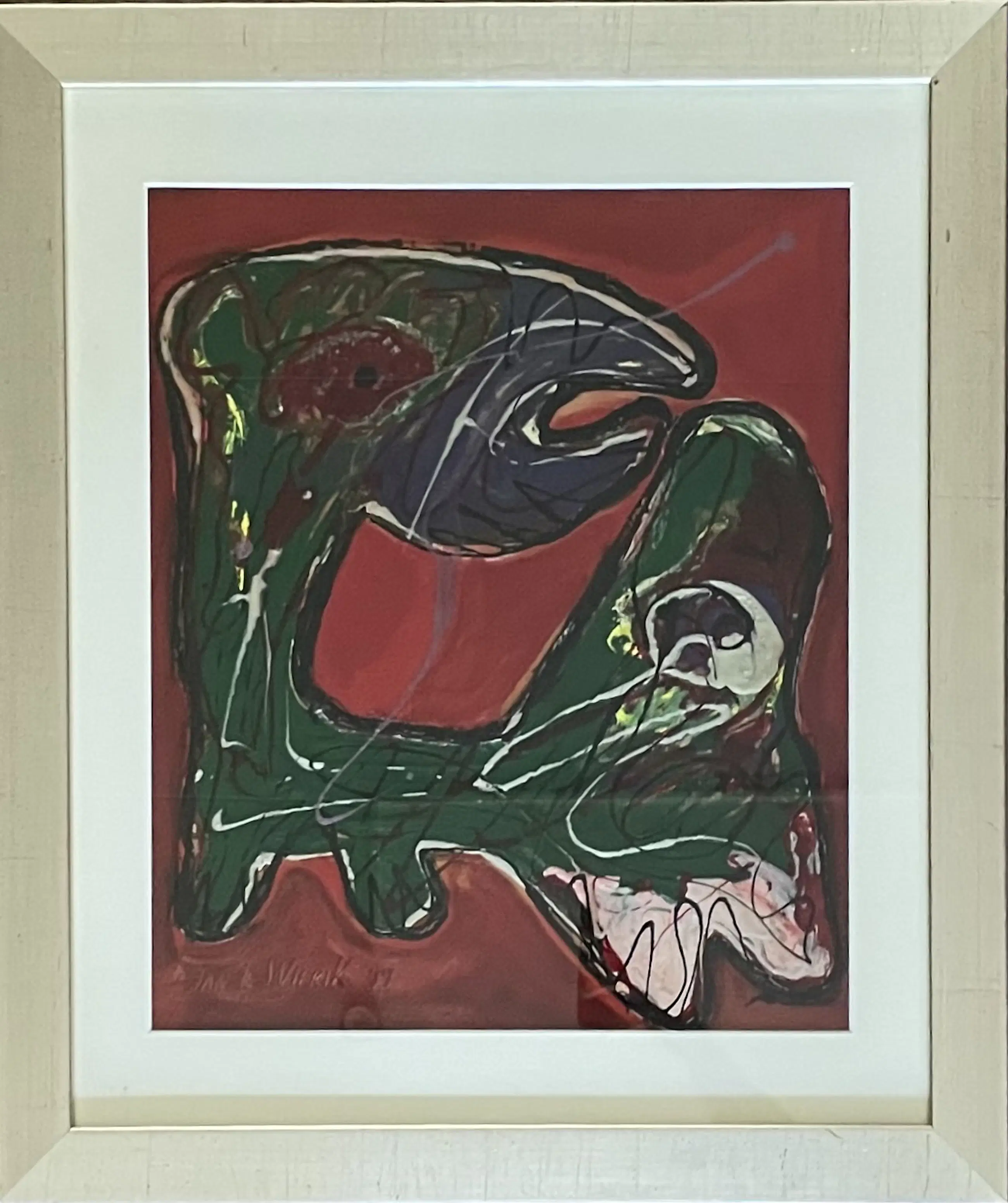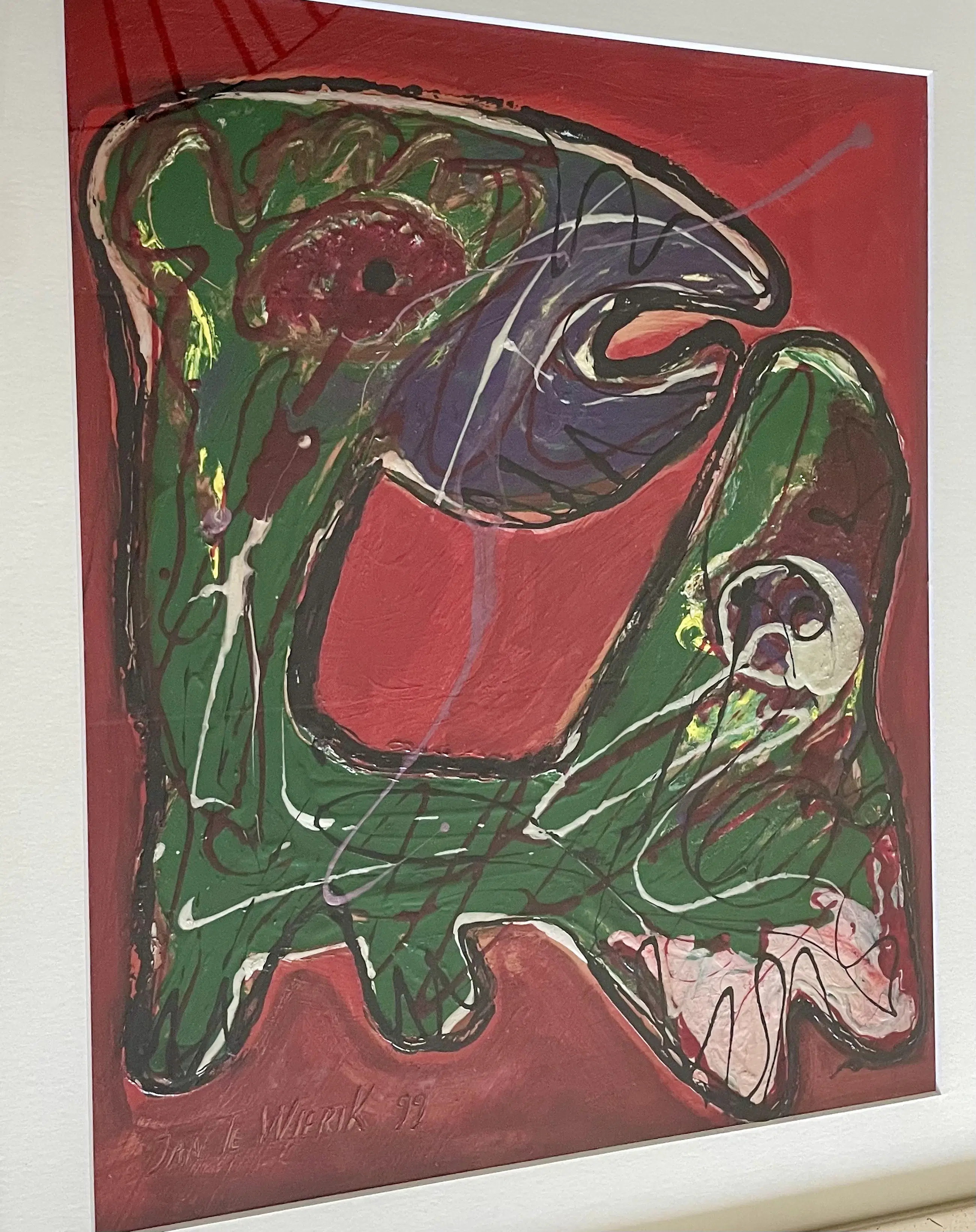 Zeer mooi expressief werk met dik opgelegde verftoetsen welke een dierlijk figuur voorstelt.