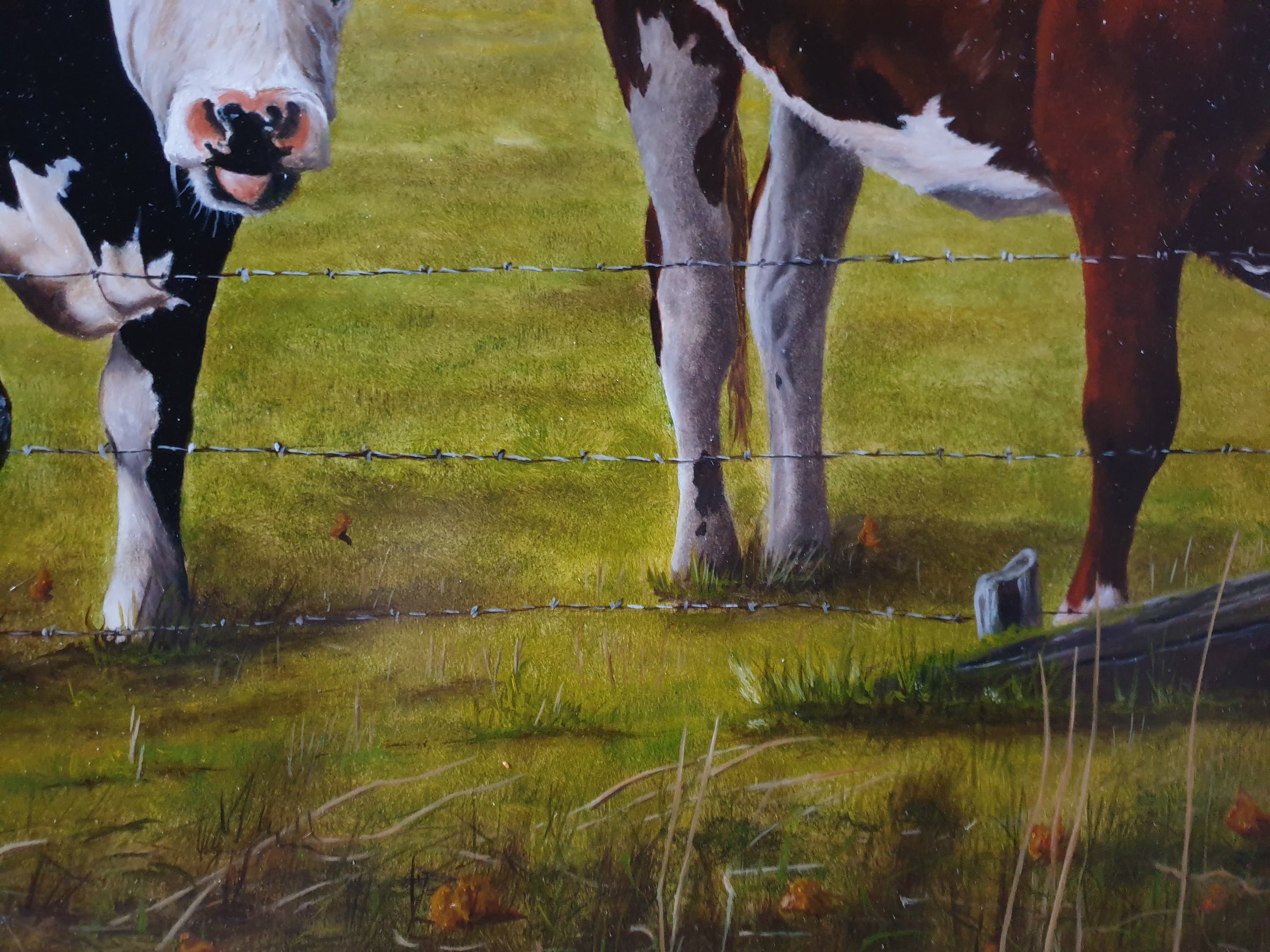 Kunstschilder Jan Teunissen geniet voornamelijk bekendheid vanwege zijn zeer gedetailleerde en in een clair-obscur-achtige sfeer weergegeven realistische schilderijen. Voornamelijk stillevens. Een enkele keer maakt de schilder een uitstapje naar andere onderwerpen zoals ook met het schilderij "Twee kalveren in weiland". Een tafereel dat de schilder tegenkwam tijdens een van zijn fietstochten in de natuur nabij zijn woonplaats Best in het zuiden van Nederland.