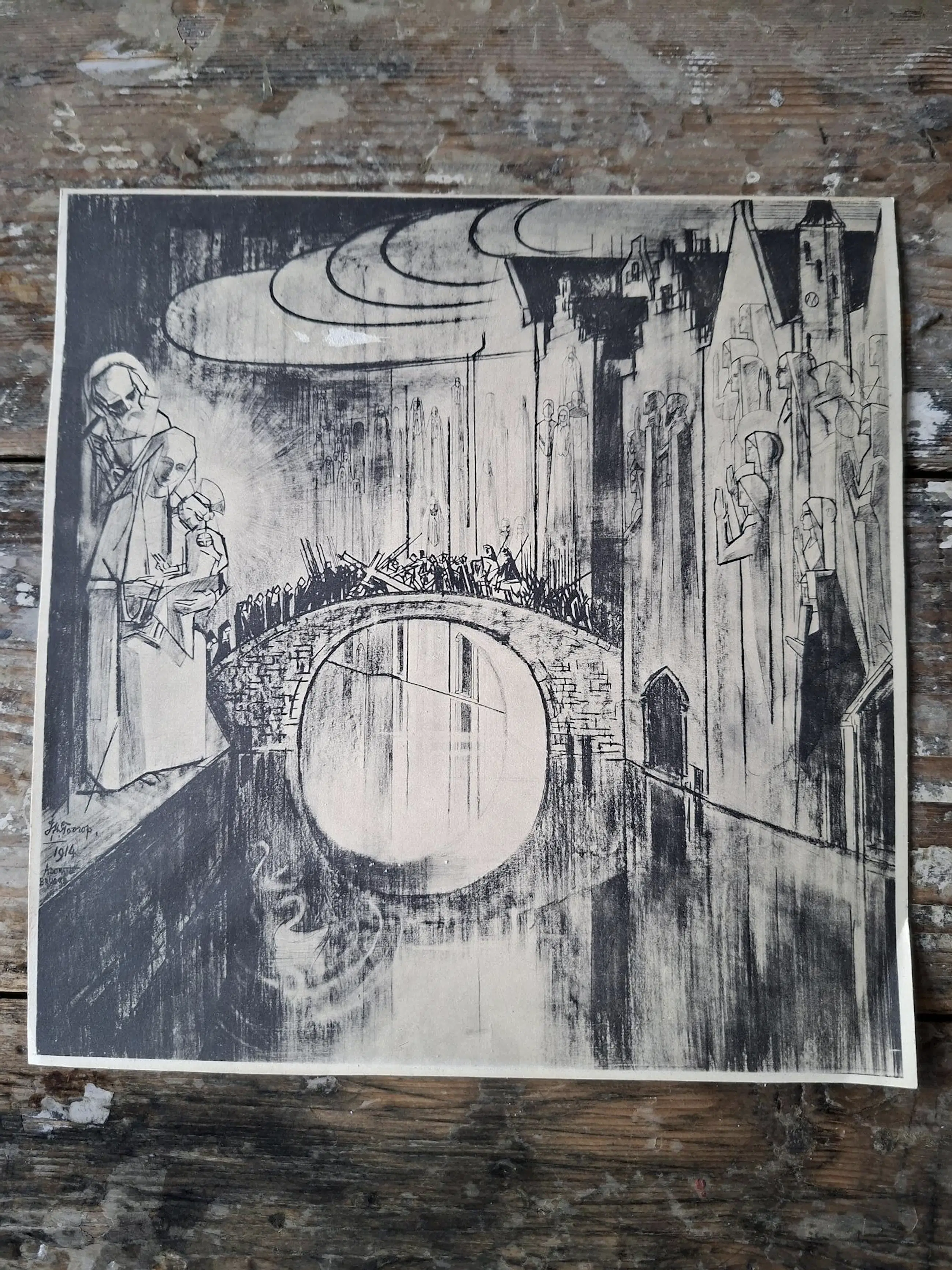 Litho Jan Toorop 23x23 Druk gesigneerd 1914 Adoratie Brugge