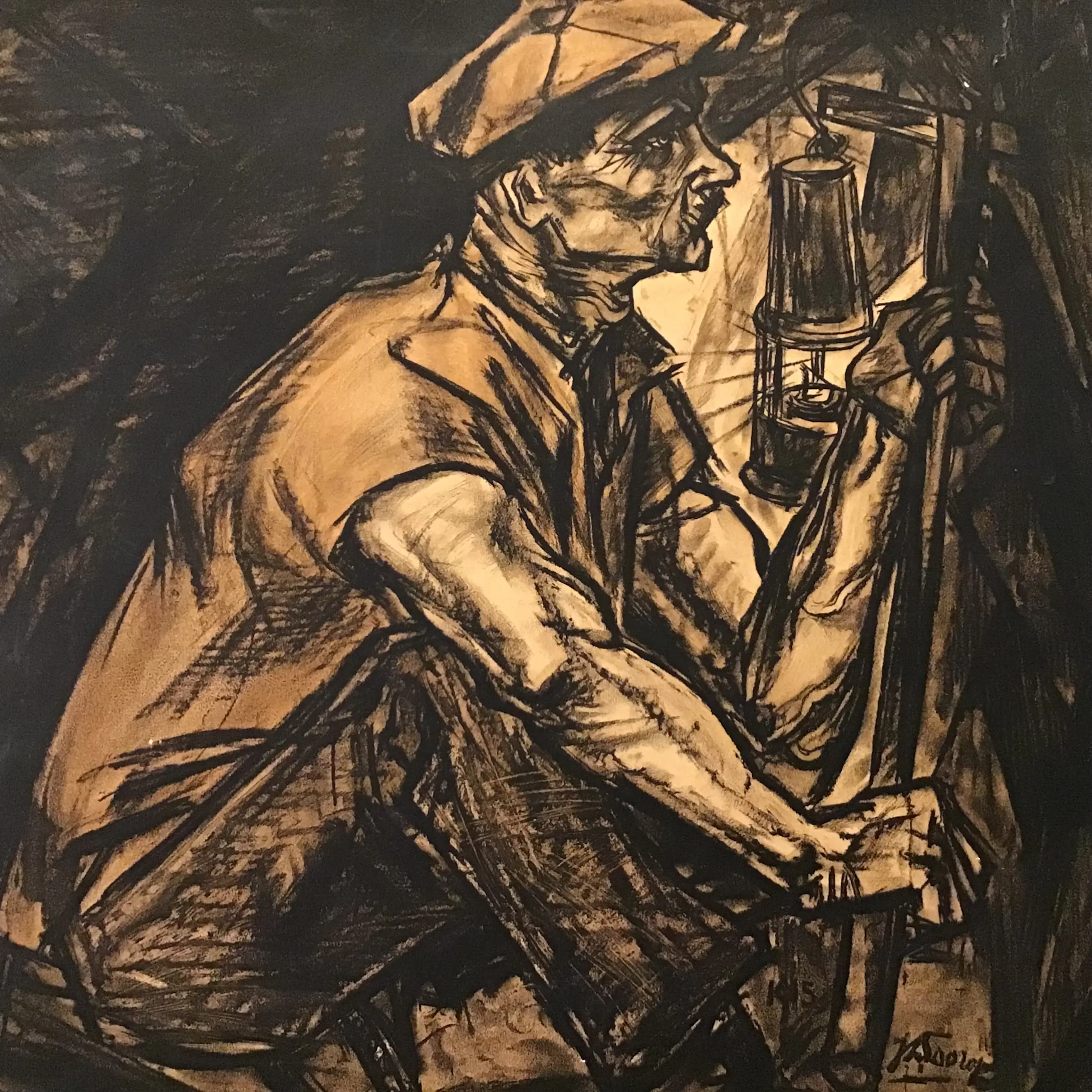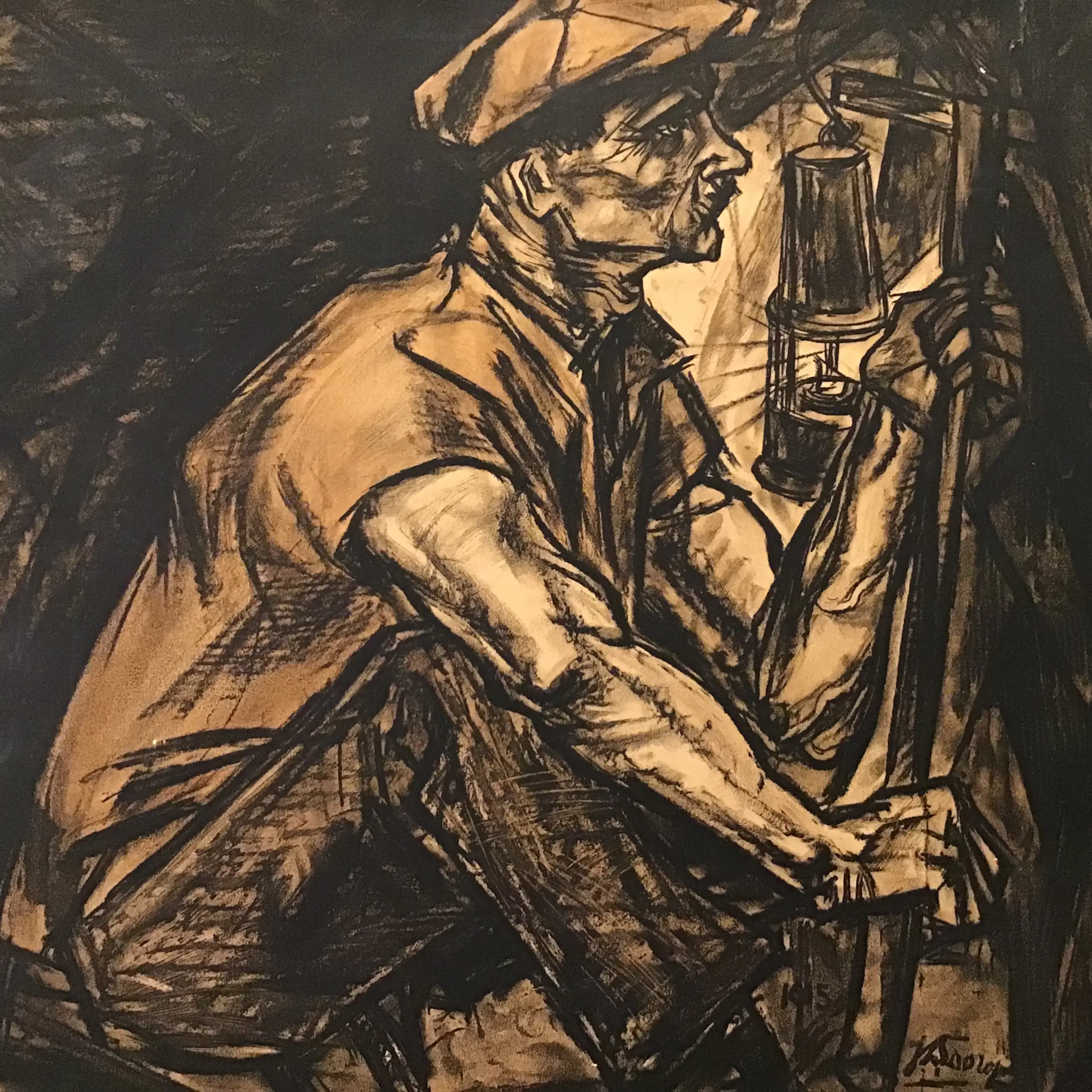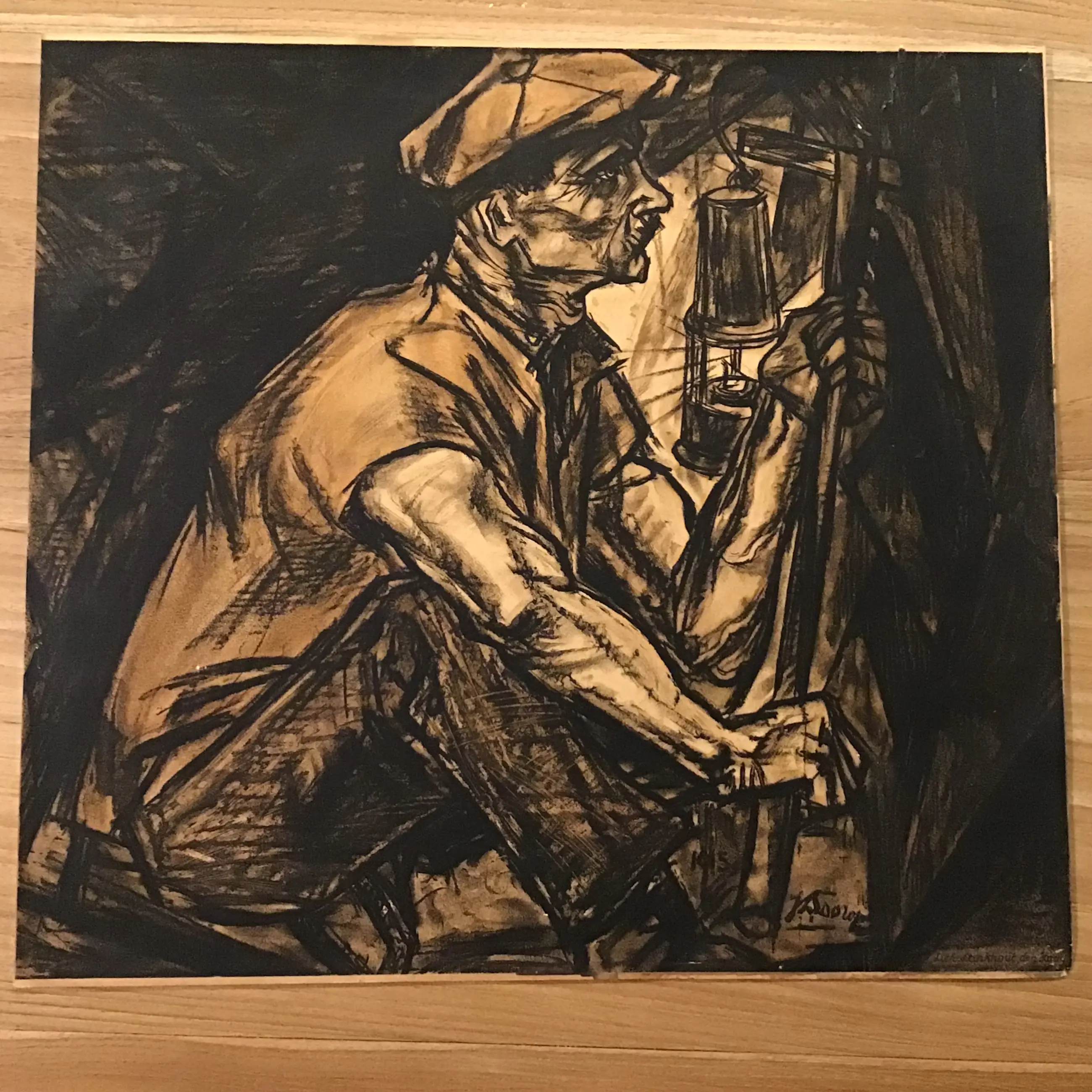 De kleurenlitho van Jan Toorops ‘De Mijnwerker’ werd in december 1915 in de handel gebracht door de lithografische inrichting van S. Lankhout en Co in Den Haag. De oplage bedroeg 6.000 exemplaren. De litho’s gingen van de hand voor vijf gulden per stuk. Eerder dat jaar had Jan Toorop (1858-1928) de tekening gemaakt tijdens een bezoek aan de Zuid-Limburgse mijnstreek. De opbrengst van de verkoop van de litho’s kwam ten goede aan de bouw van een nieuwe kerk in Heerlerheide, een mijnwerkersparochie.