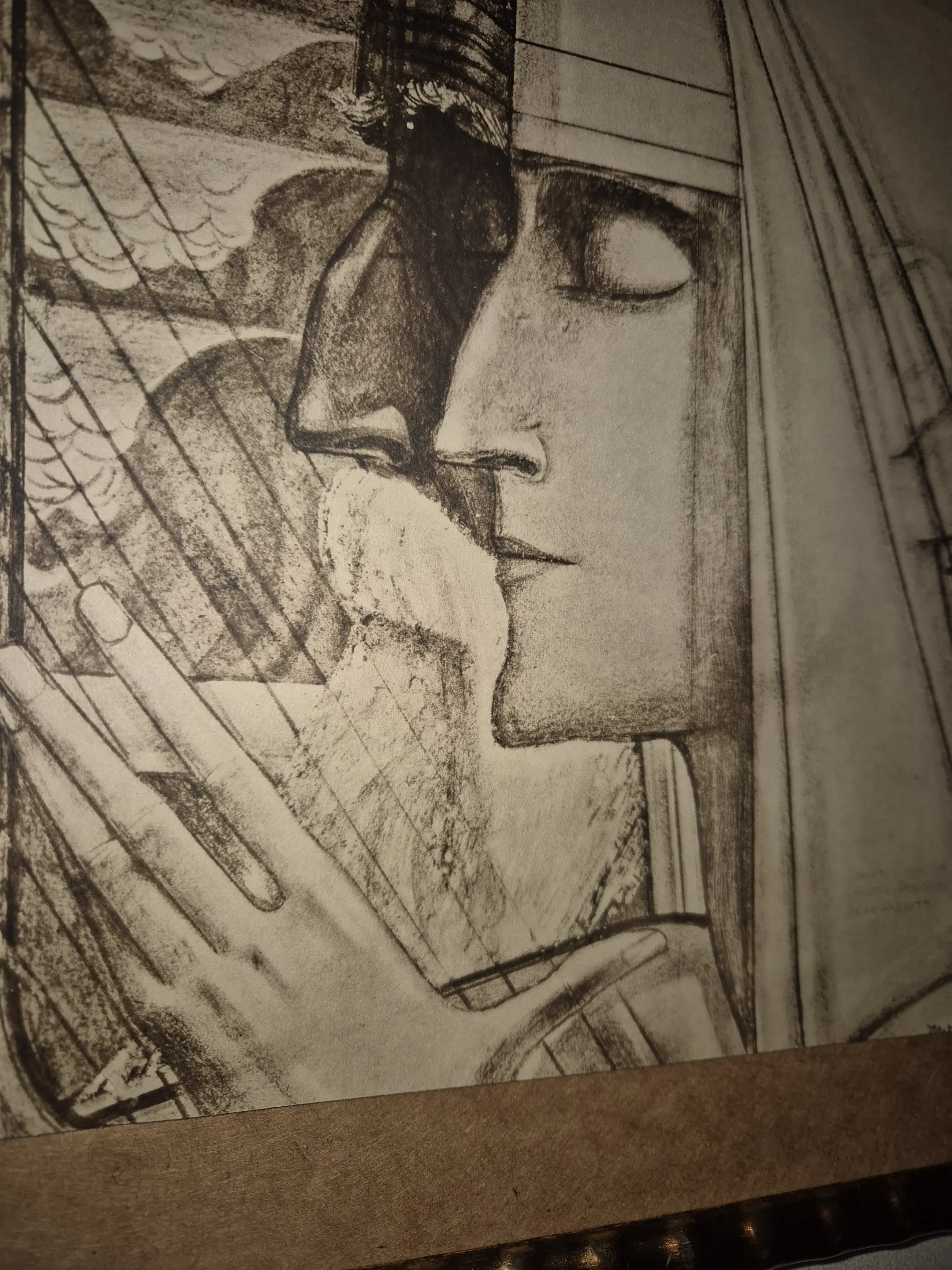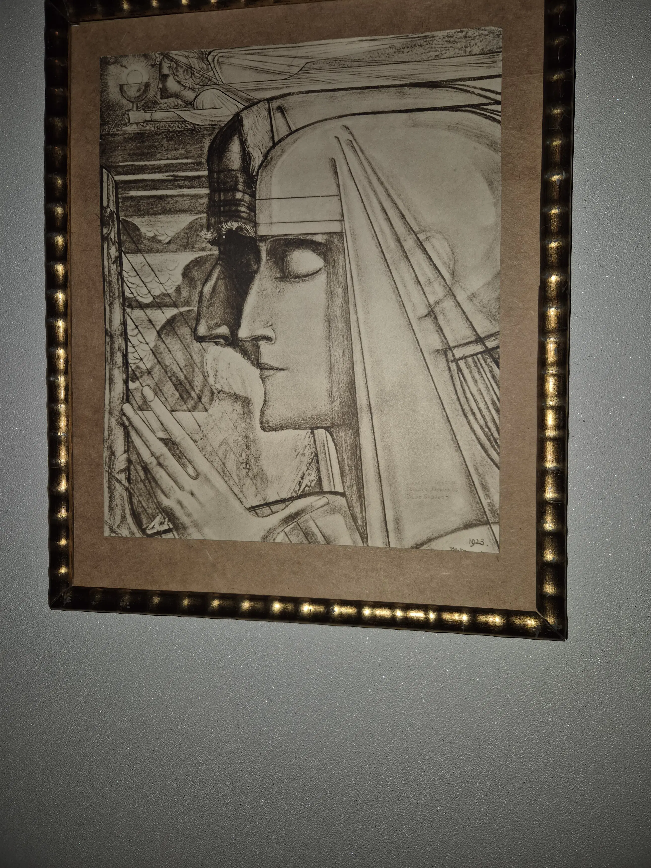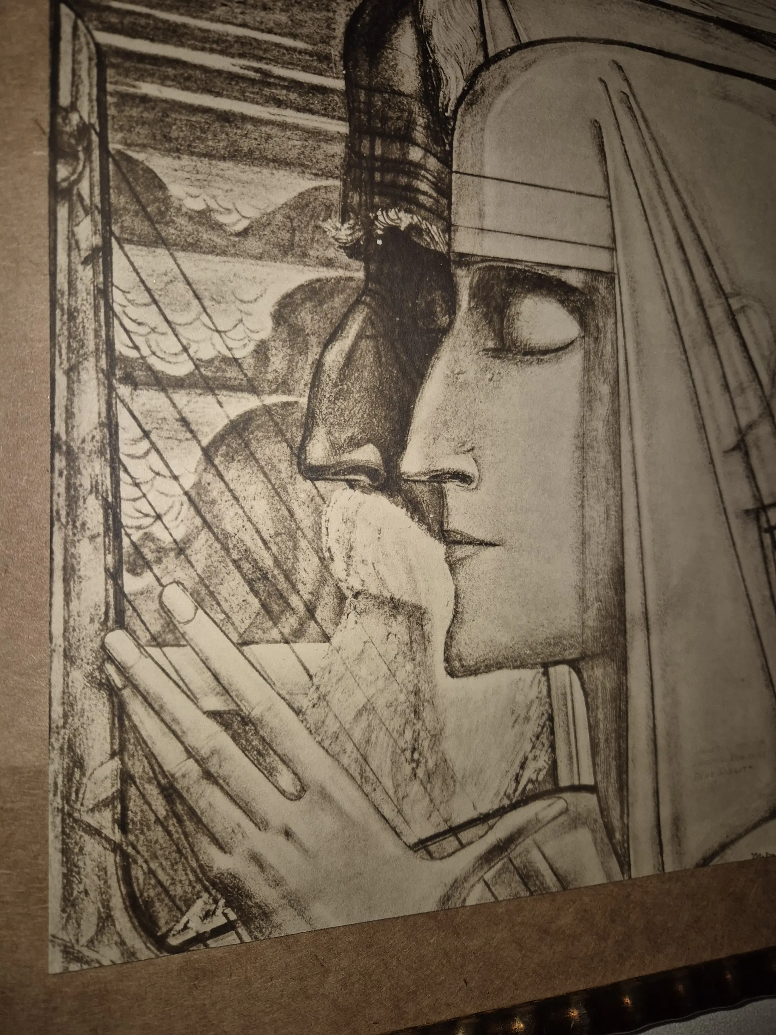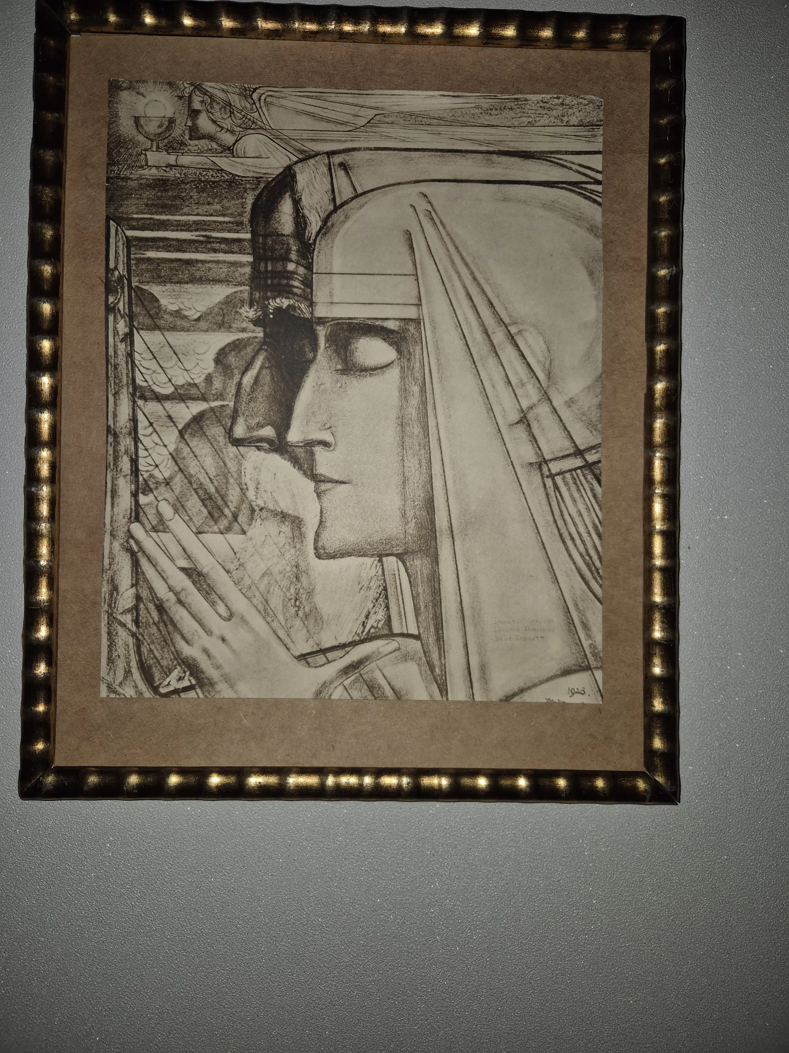Litho van het echte werk van Jan Toorop dat hij maakte in 1923 de Harpspeler en de Engel tokkelen aan de Harp Toorop kwam als jonge jongen naar Nederland en werkte zich op tot een geweldig kunstenaar met van Gogh en Mondriaan deze afbeelding zit in een mooie oude lijst en is in perfecte staat.