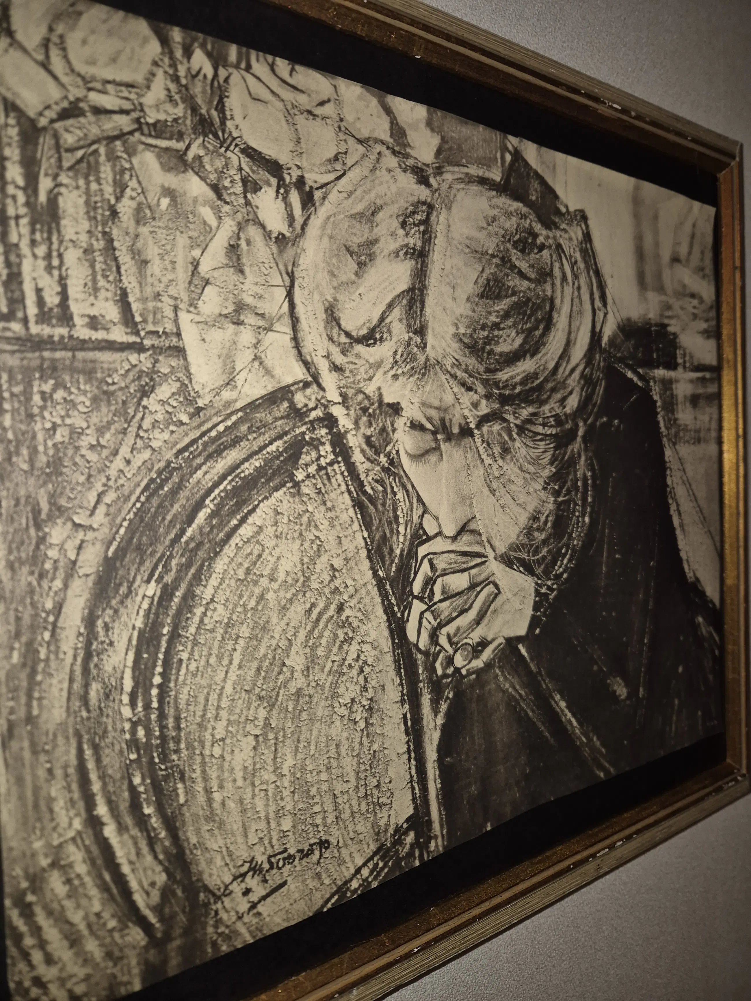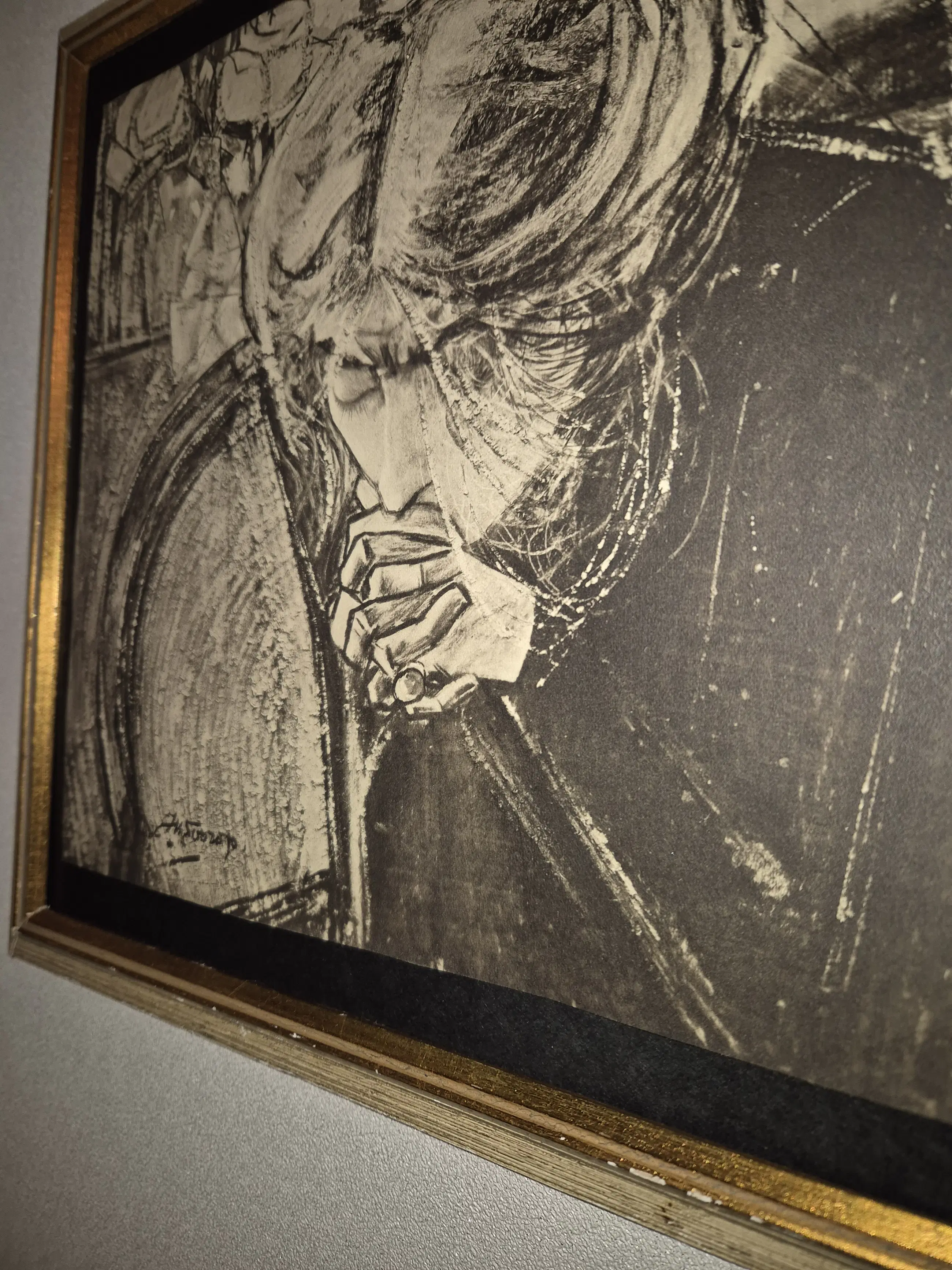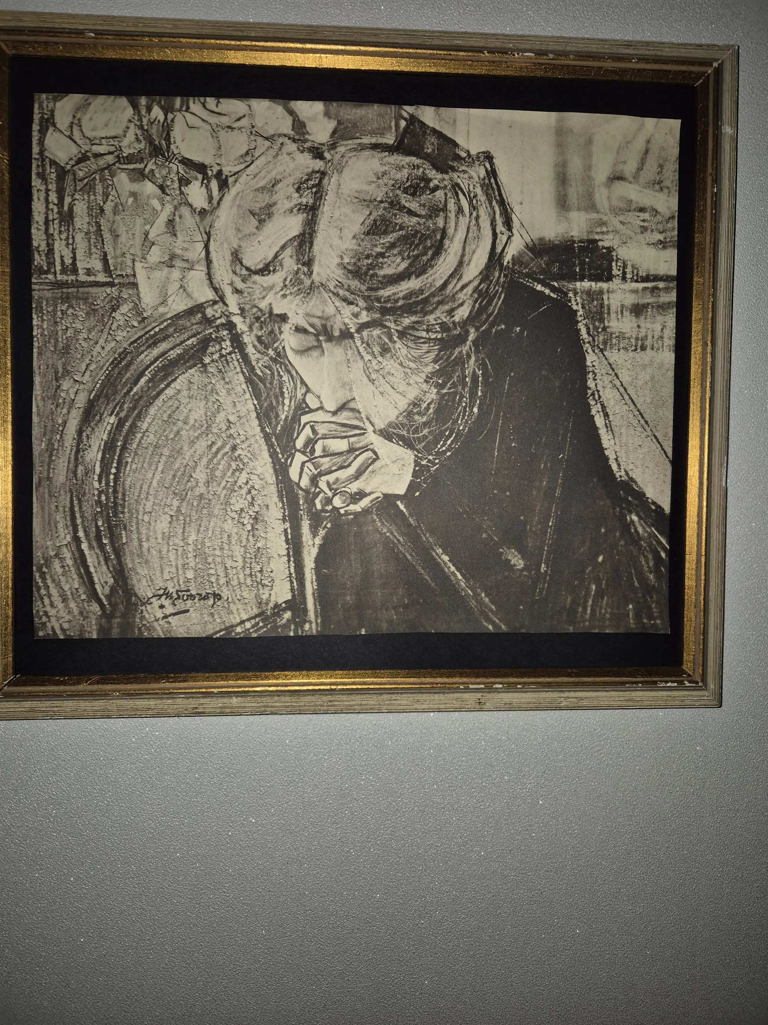 Litho no 19 eind jaren 20 van het echte werk van Kunstenaar Jan Toorop 1858 1928 dat hij maakte in 1914 deze vrouw op deze afbeelding is Dichteres Miep Janssen zijn goede vriendin Toorop was een veel zijdig kunstenaar Miep schreef heel gedichten voor Toorop het werk van deze Kunstenaar is erg gewild bij jong en oud en bij veel verzamelaars deze Litho en lijst zijn in goede staat .
