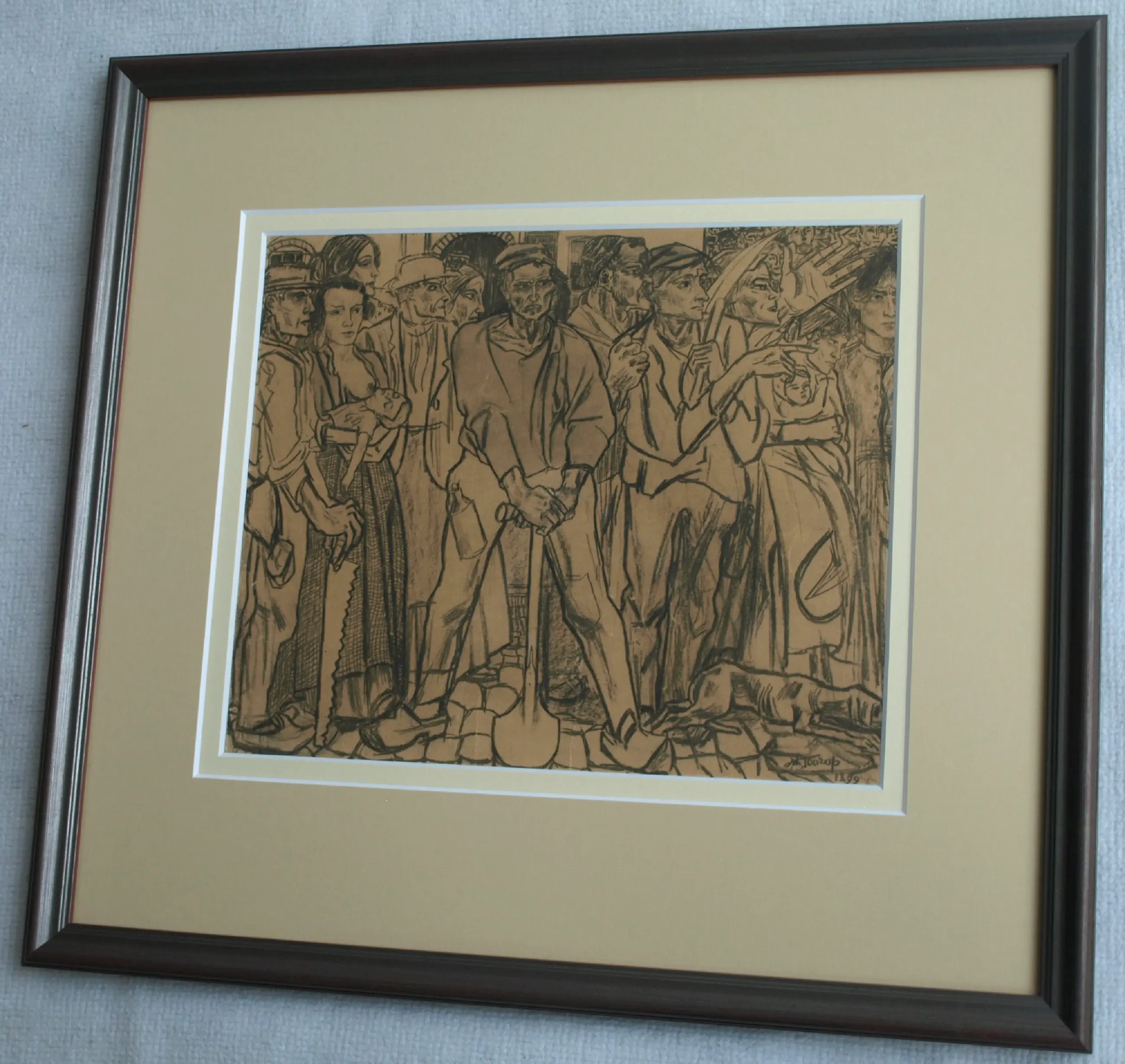 In goede staat. Het papier is verkleurd door de tand des tijds en heeft een paar lichte kreukjes/slijtplekjes. De lijst is in zeer goede staat. Zie ook de foto’s voor een eigen indruk. Kan zo aan de muur.