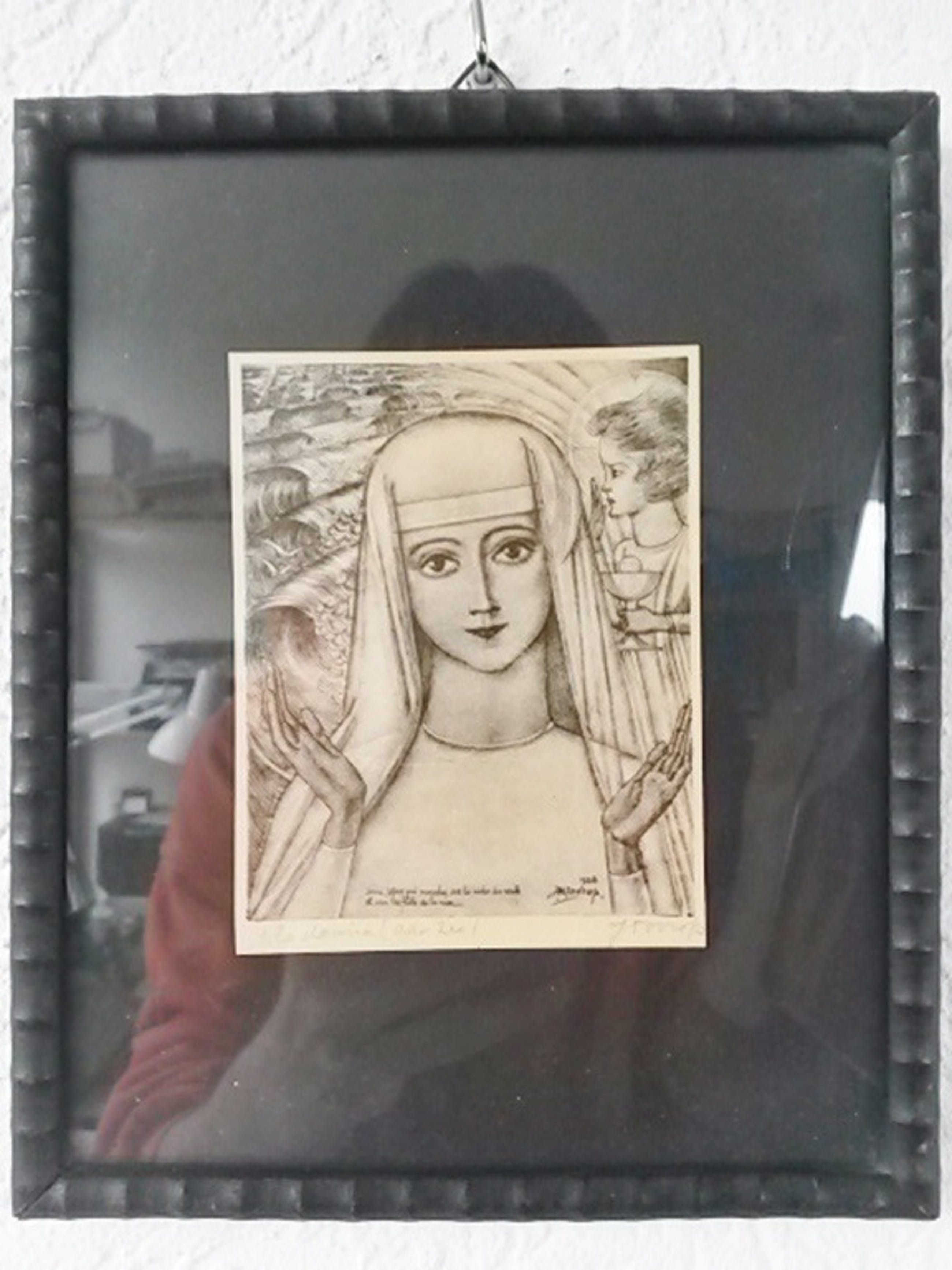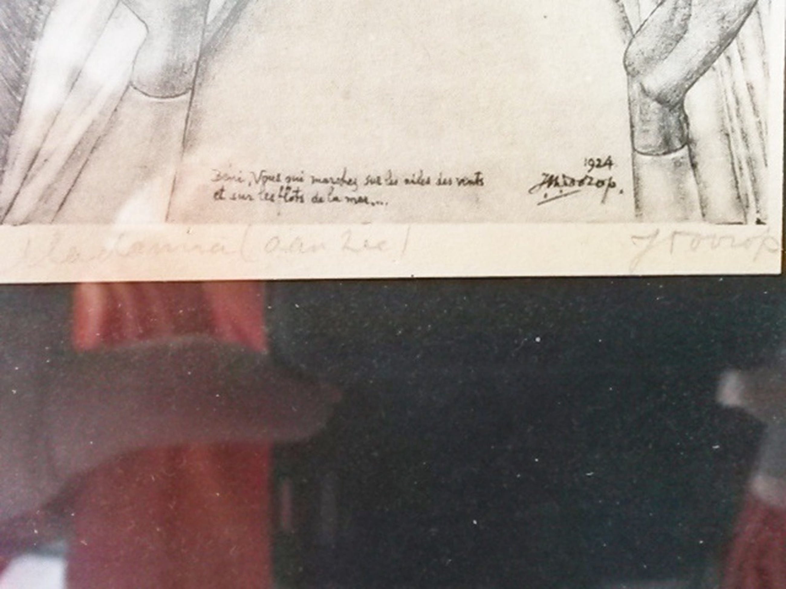 Jan Toorop, Madonna (aan zee), 10 x 8 cm. In een authentiek lijstje.ca 20 x 16 cm, Handgesigneerd met potlood rechtsonder. Authnticiteit is gegarandeerd.