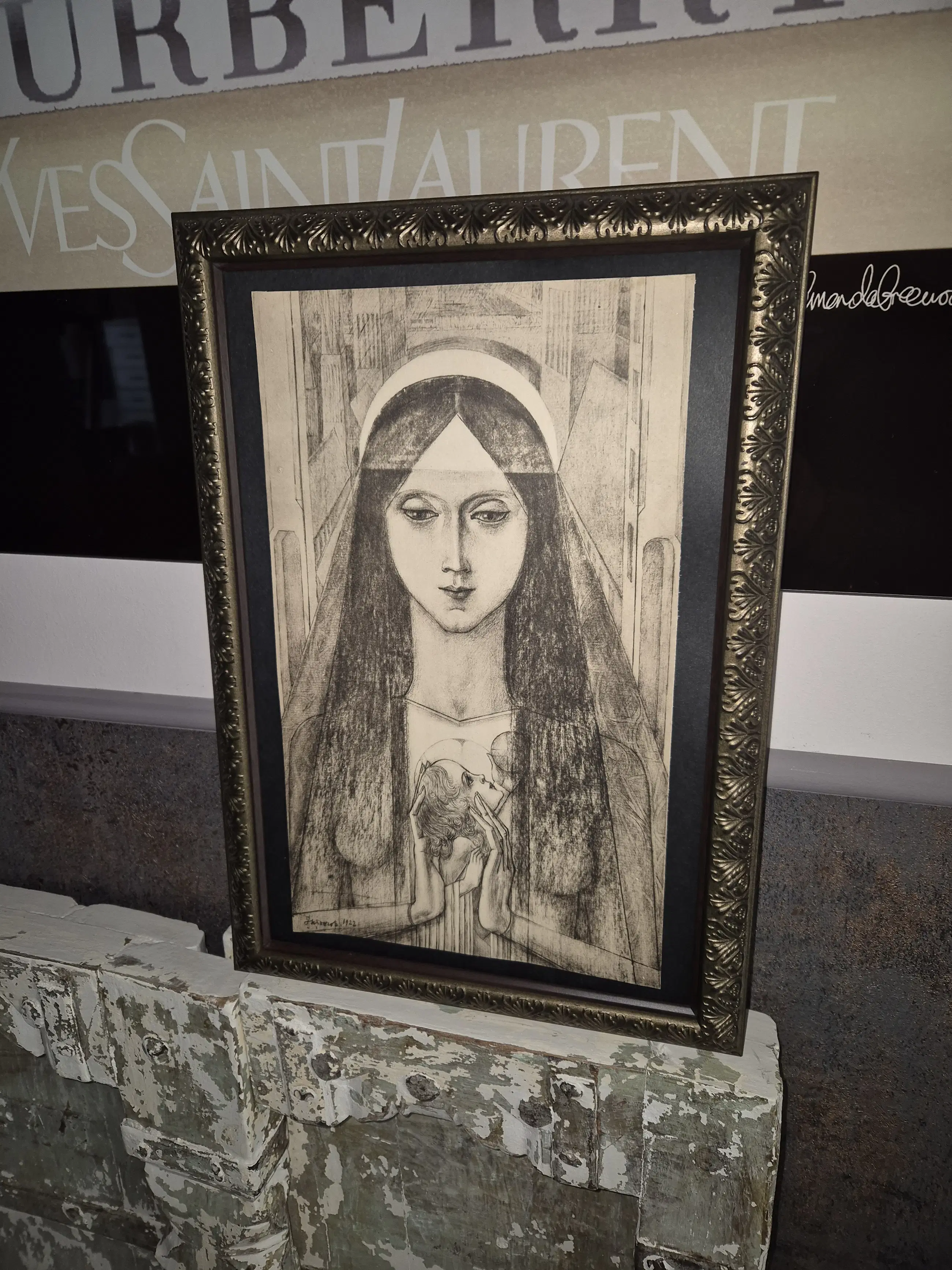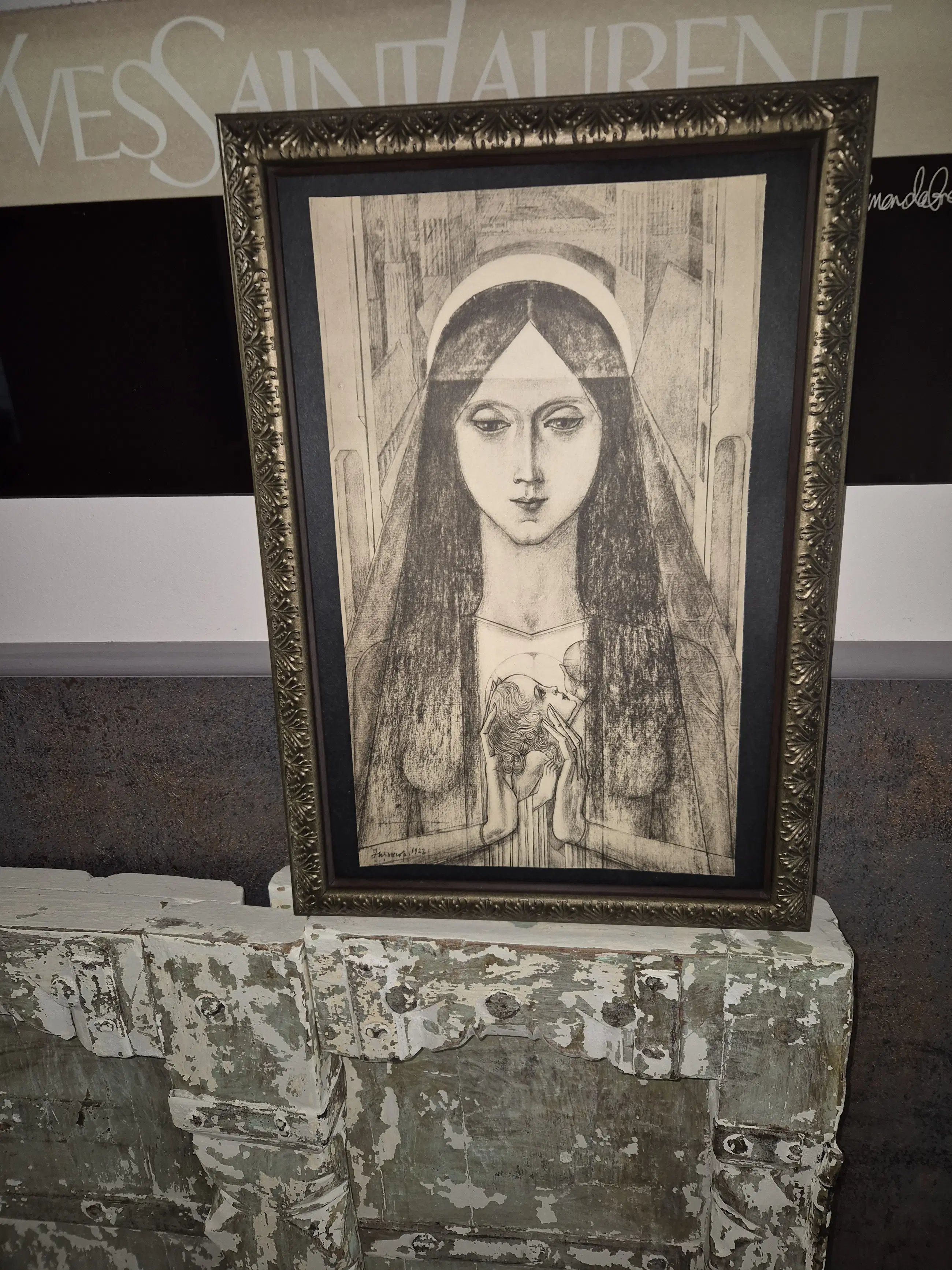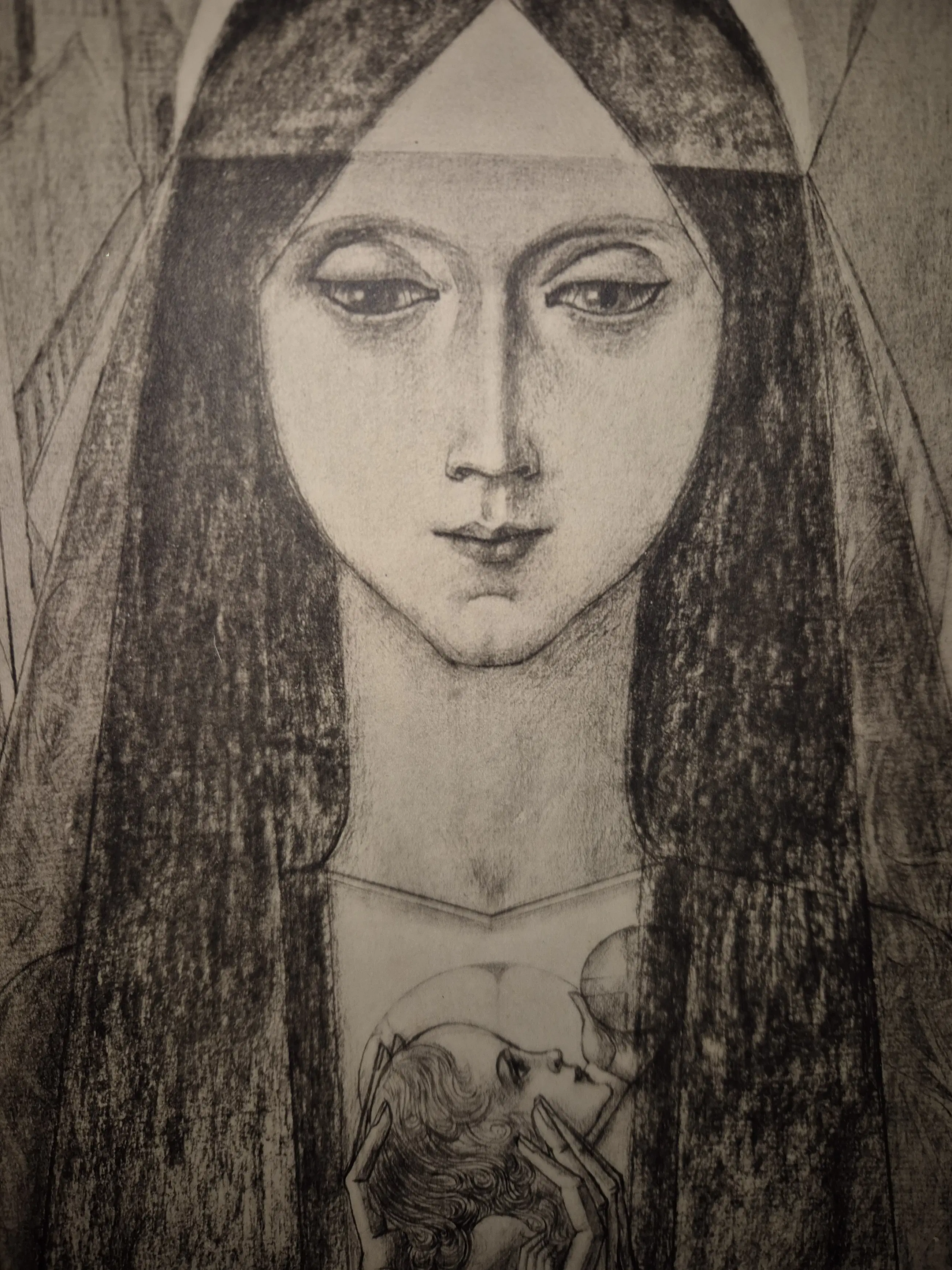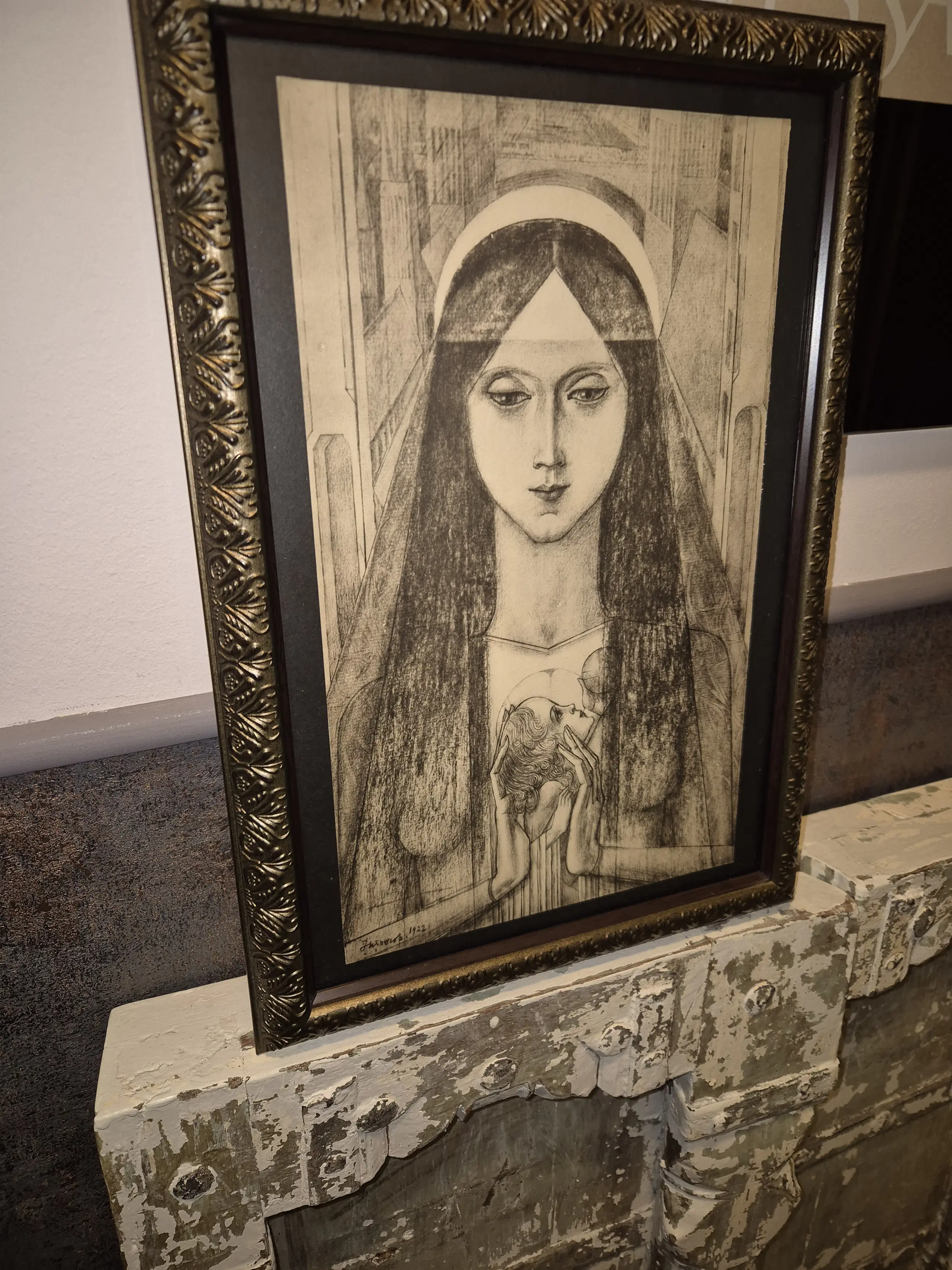 Litho Felix Abrahanson van een van de beste Nederlandse Kunstenaars samen met Mondriaan en van Gogh in de periode rond 1900 Toorop werkte zich op tot een wereld bekende kunstenaar werkte in veel Nederlandse steden van KATWIJK aan Zee tot Nijmegen en in meer Nederlandse steden en ook veel in het Buitenland deze afbeelding van Madonna en lijst zijn in zeer goede staat.