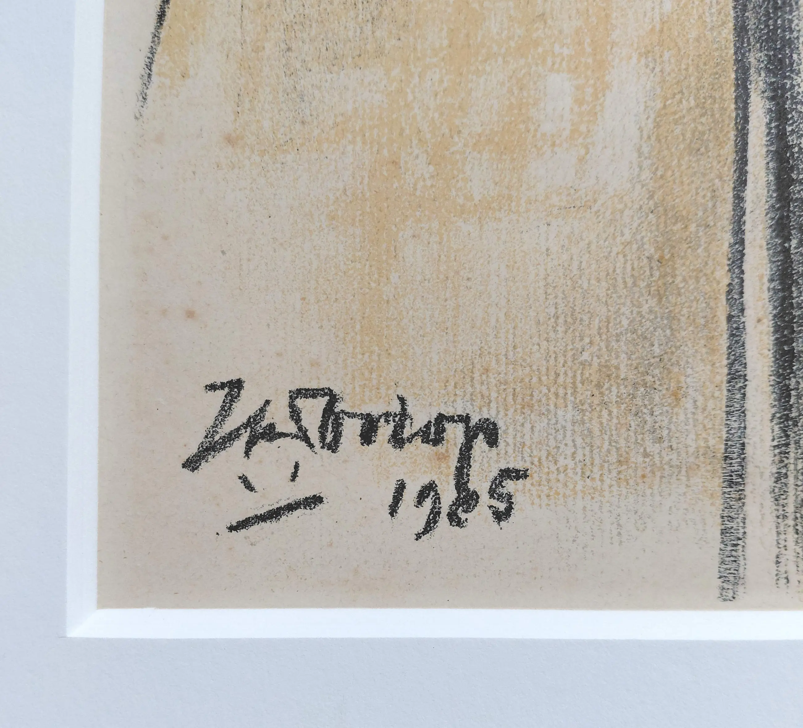 Prachtig, zeer gezocht werk van Jan Toorop uit 1905. Litho op papier, in de druk gesigneerd en gedateerd linksonder. Professioneel ingelijst door lijstenmakerij Bel Ami (Amsterdam) in complementerende houten lijst, achter Tru-Vue museumglas en met smetteloos, zuurvrij passe-partout. Alles in uitstekende conditie.