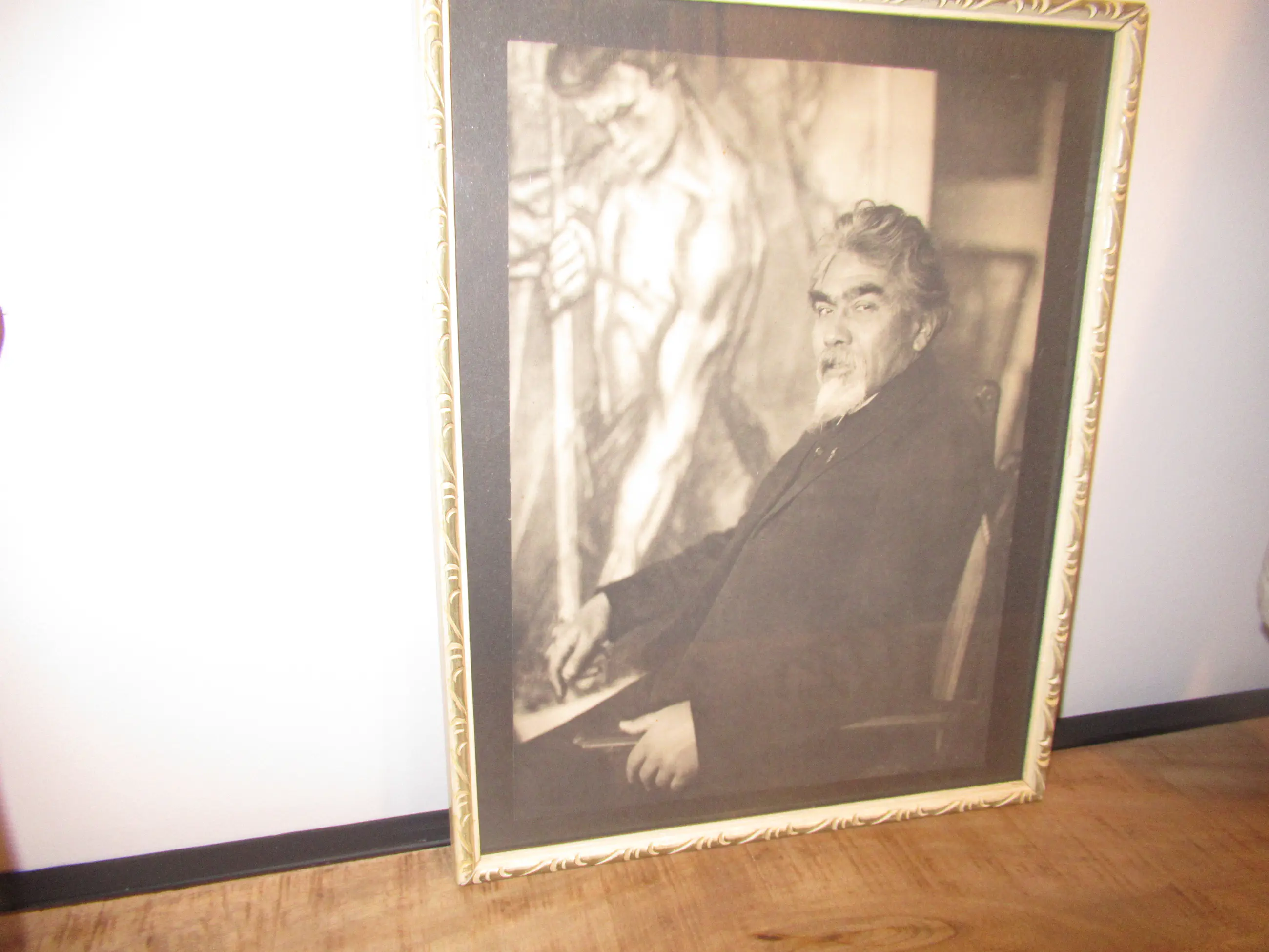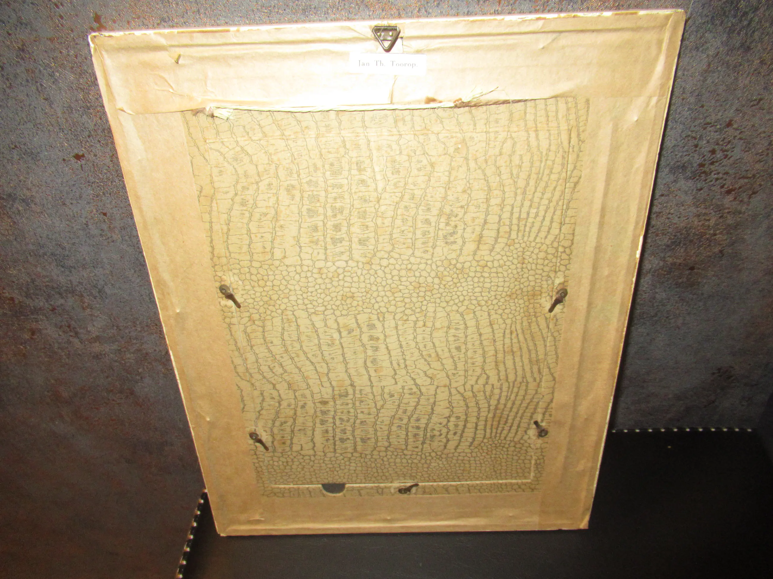 Jan Toorop (1858-1928) zelf portret bij zijn werk van de ijzergieter, en de Jonge Generatie dat hij maakte in 1892 deze 2 afbeeldingen isografie genoemd komen uit 1929 na zijn dood gedrukt de Jonge Generatie daarop is veel op te zien en zit in een oude lijst met matglas, Toorop zelf zit in een oude lijst maat lijst 34 bij 27 cm, alle bij in zeer goede staat. Jan Toorop was een van de beste Nederlandse Kunstenaars met van Gogh en Mondriaan in de periode rond 1900