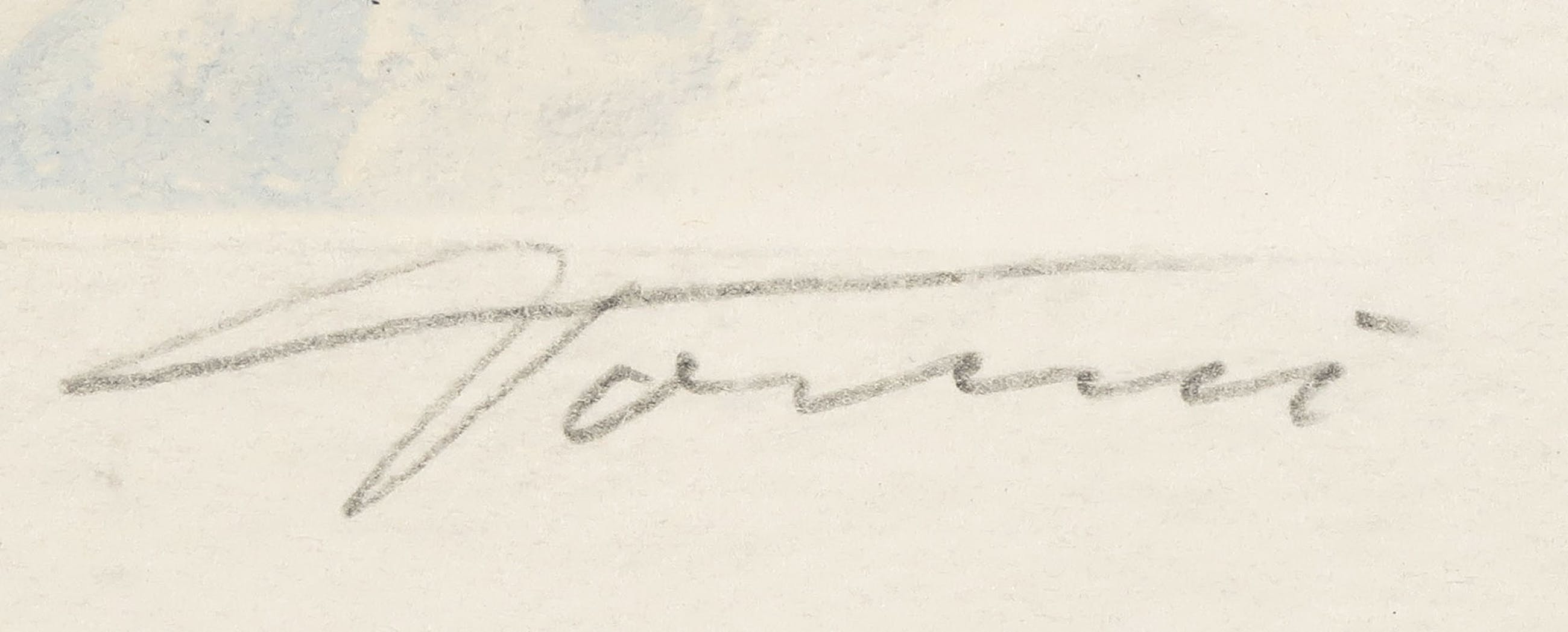 Het werk is bevestigd op een stevig onderblad. Afmetingen beeld: 23 x 29 cm.