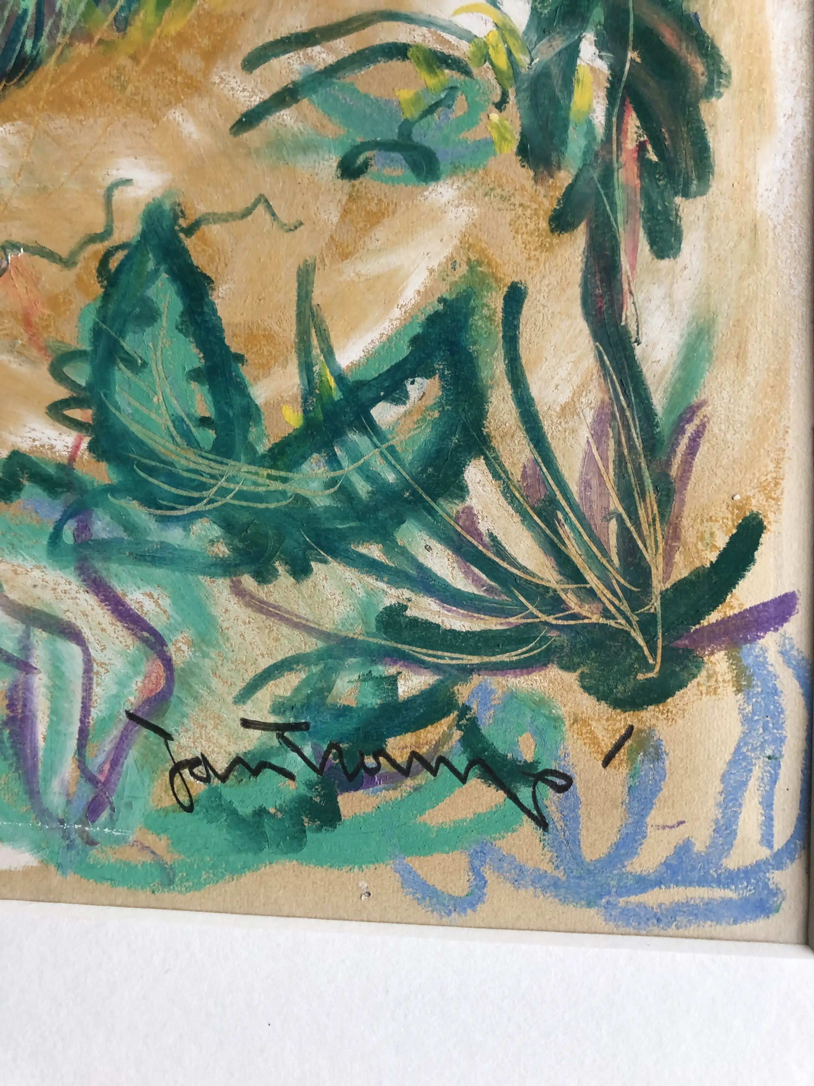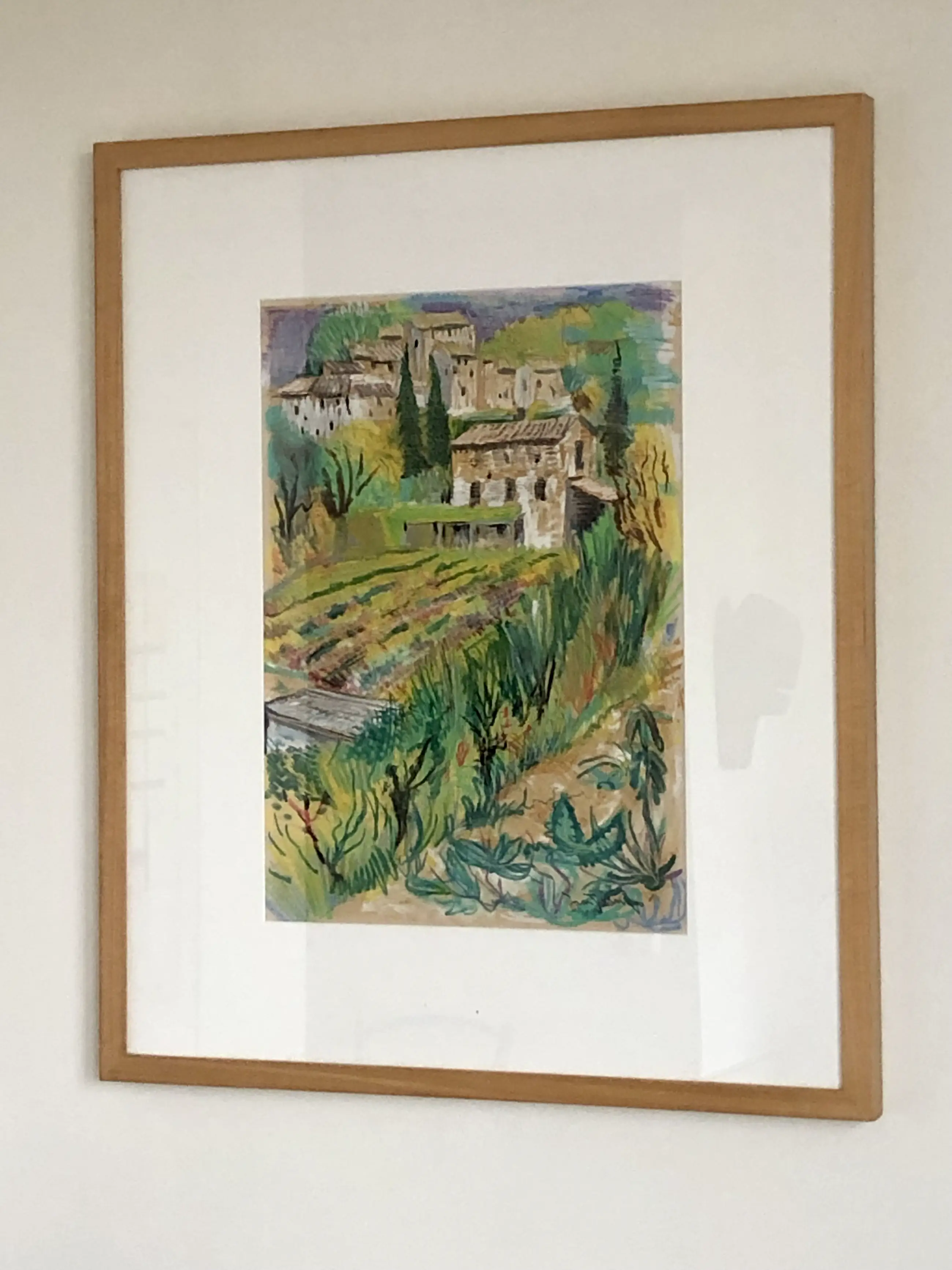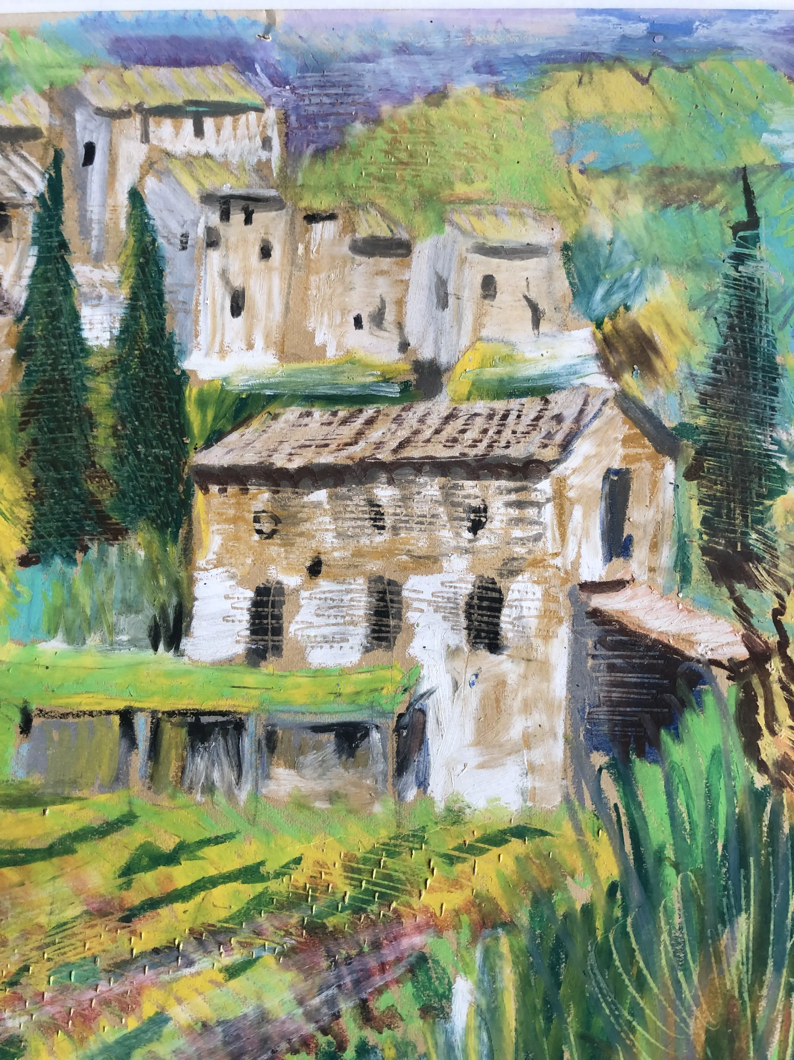 Prachtig kleurige weergave van het Toscaanse platteland door de Amsterdamse kunstenaar Jan Tromp. Jan (Johannes) Tromp was schilder, tekenaar en vervaardiger van gouaches.
