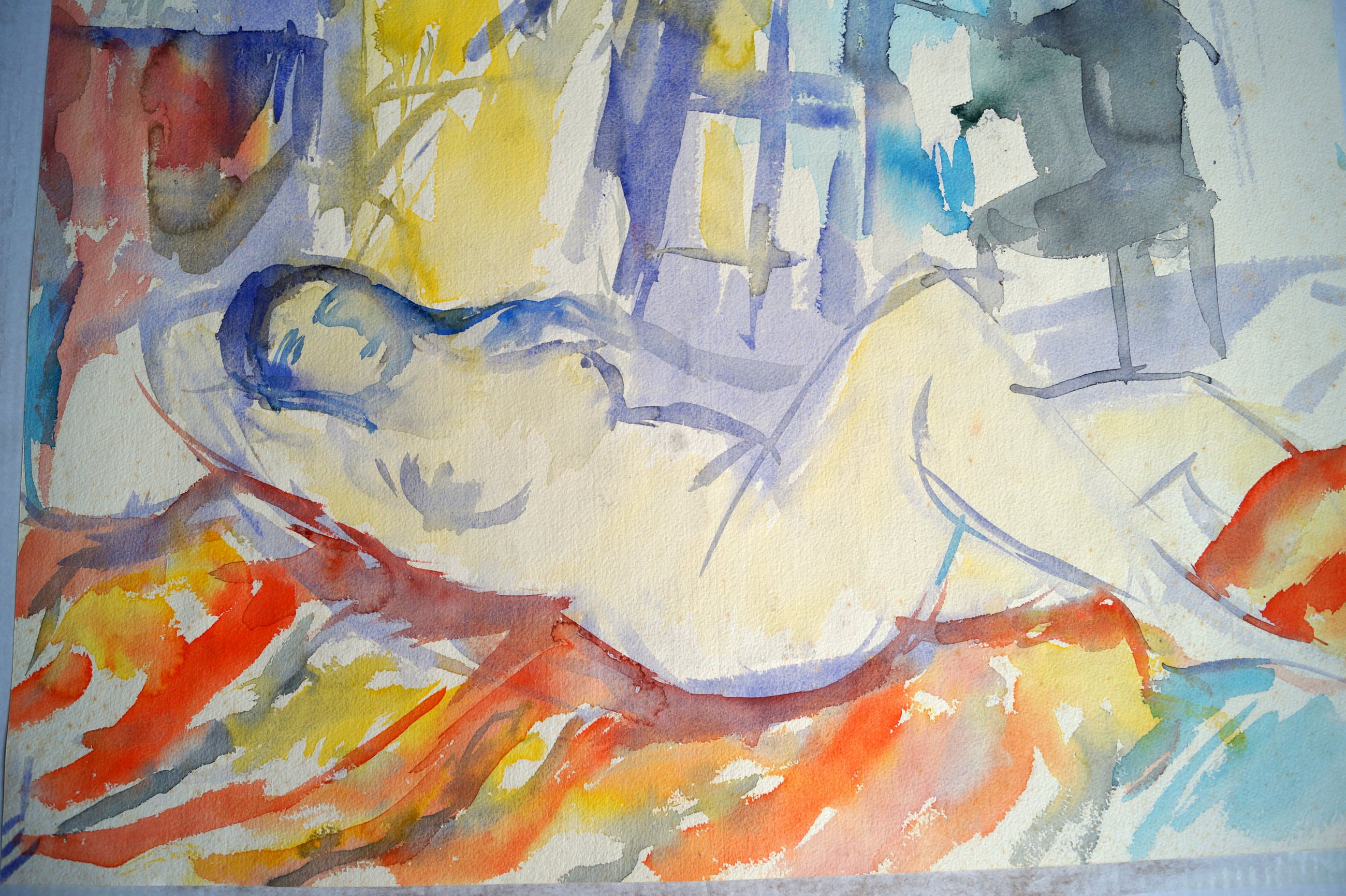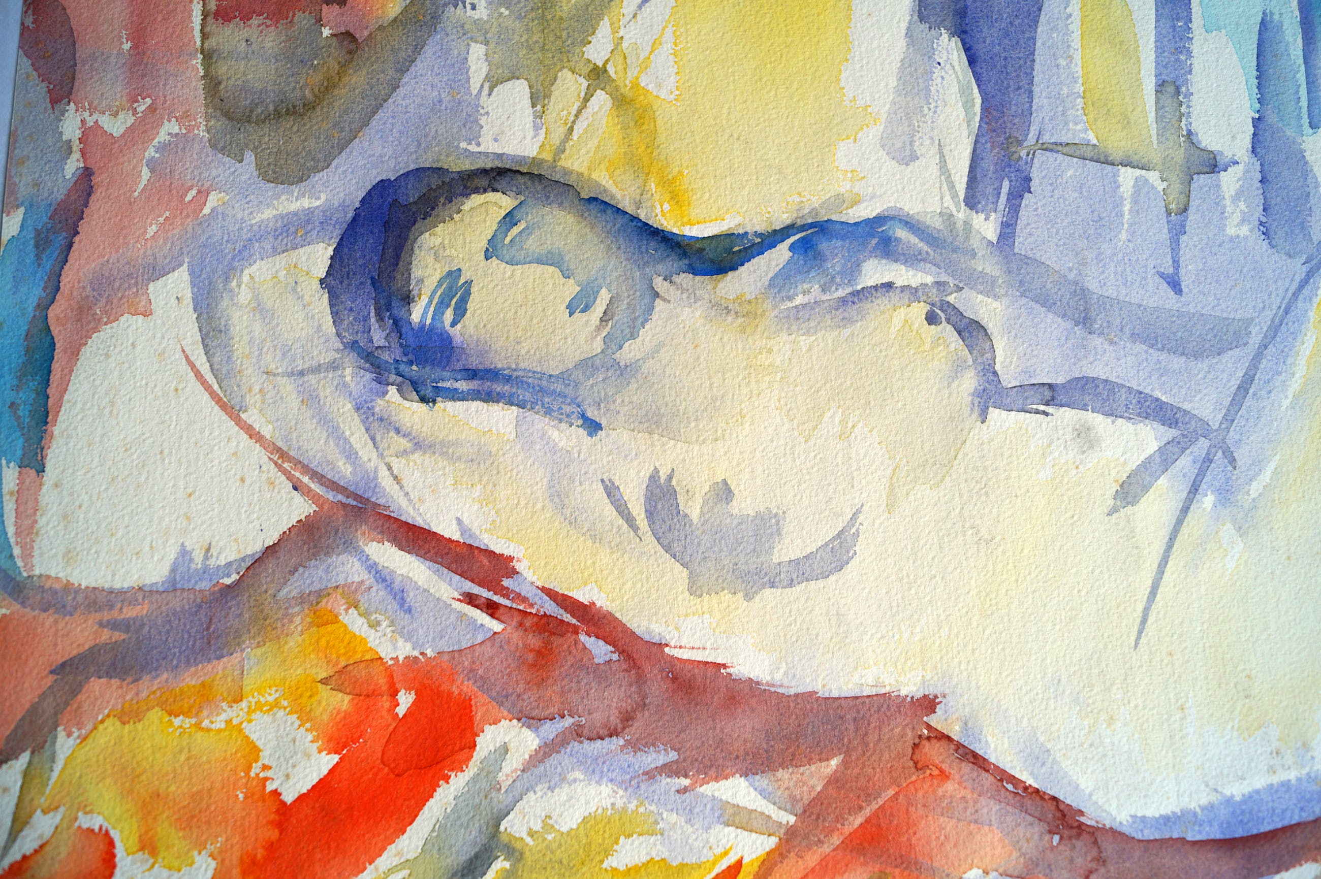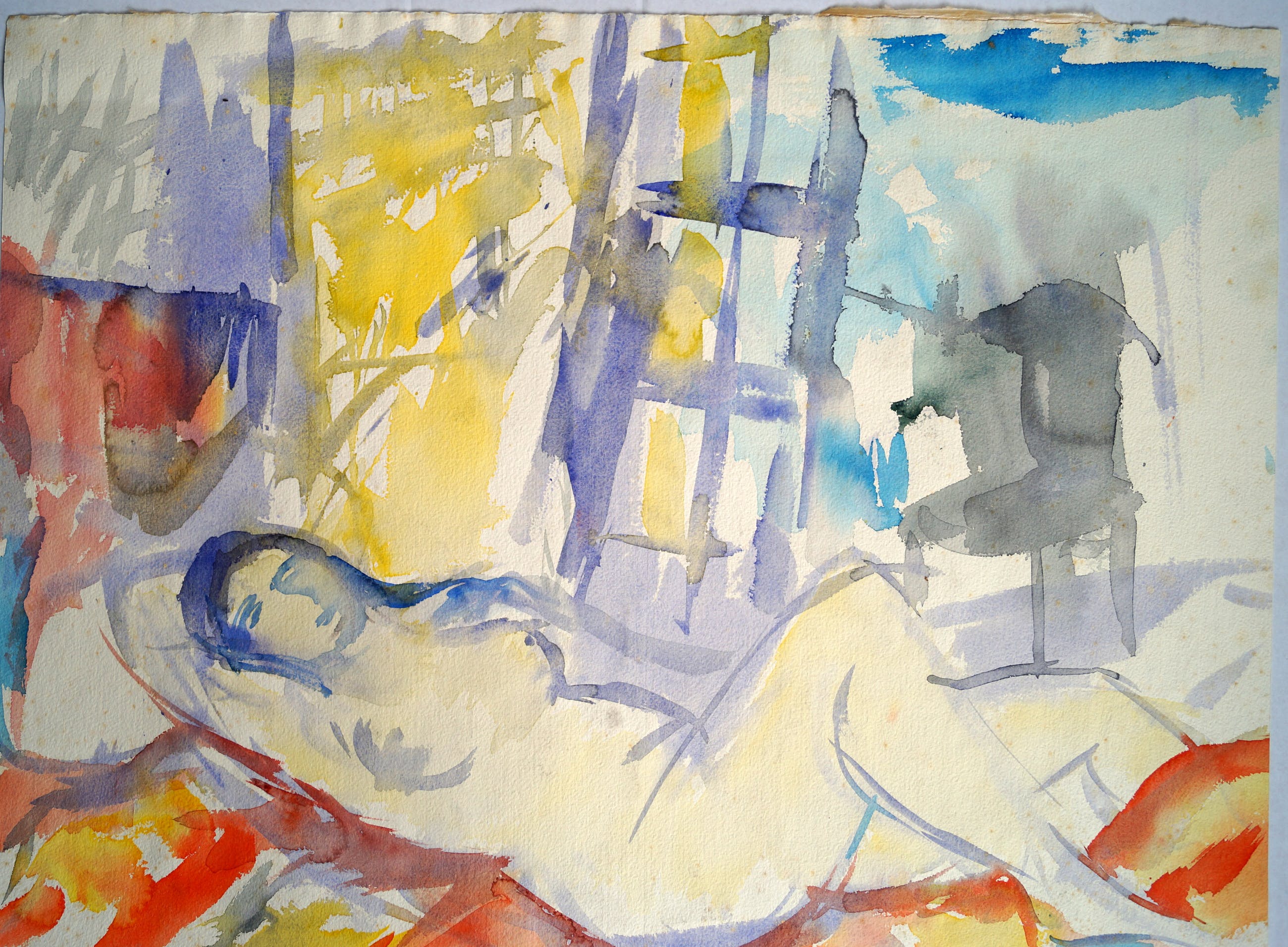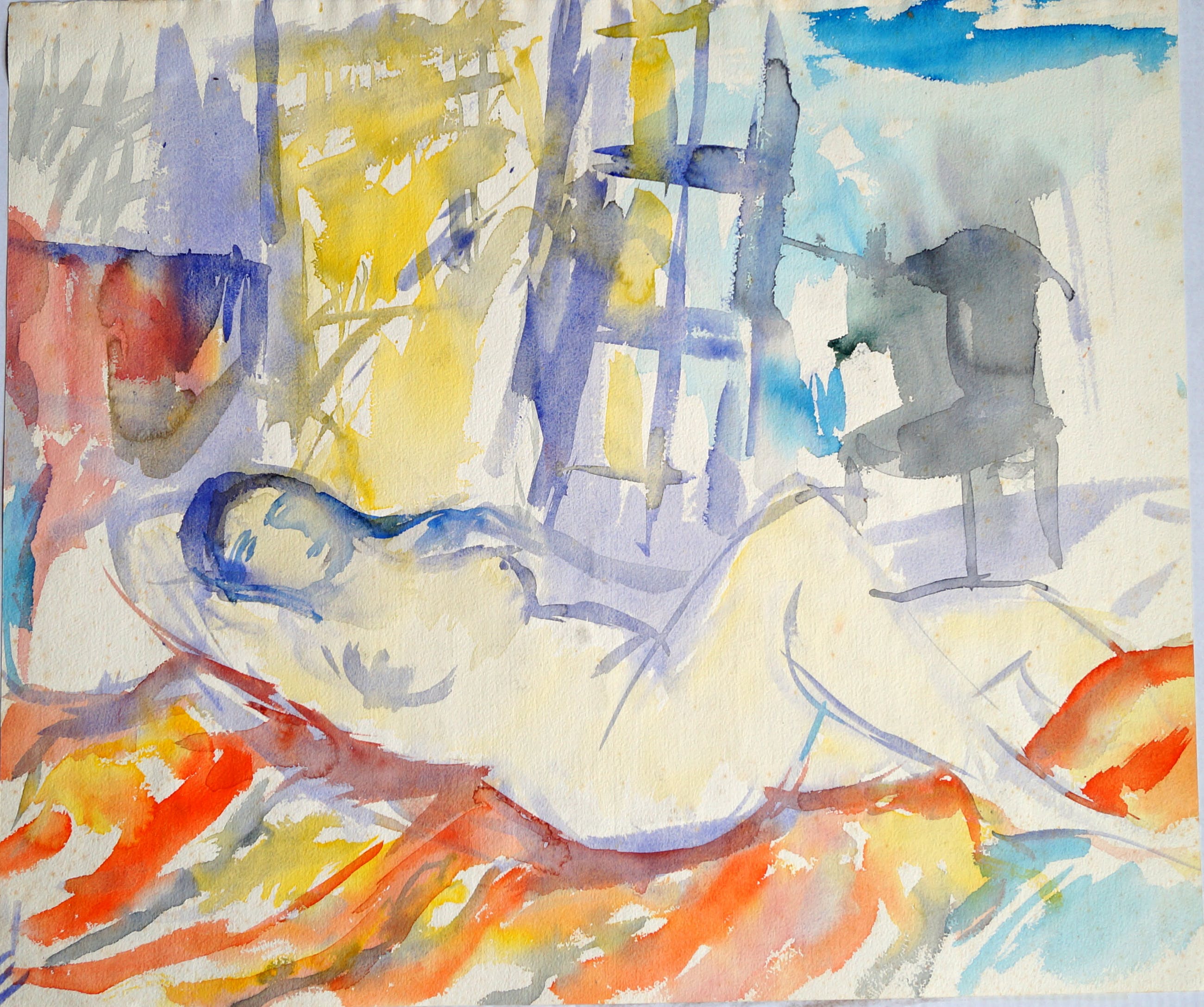 Fijn zomers aquarel in frisse kleuren. Tijdloze compositie, kenmerkend voor het werk van Tullemans.