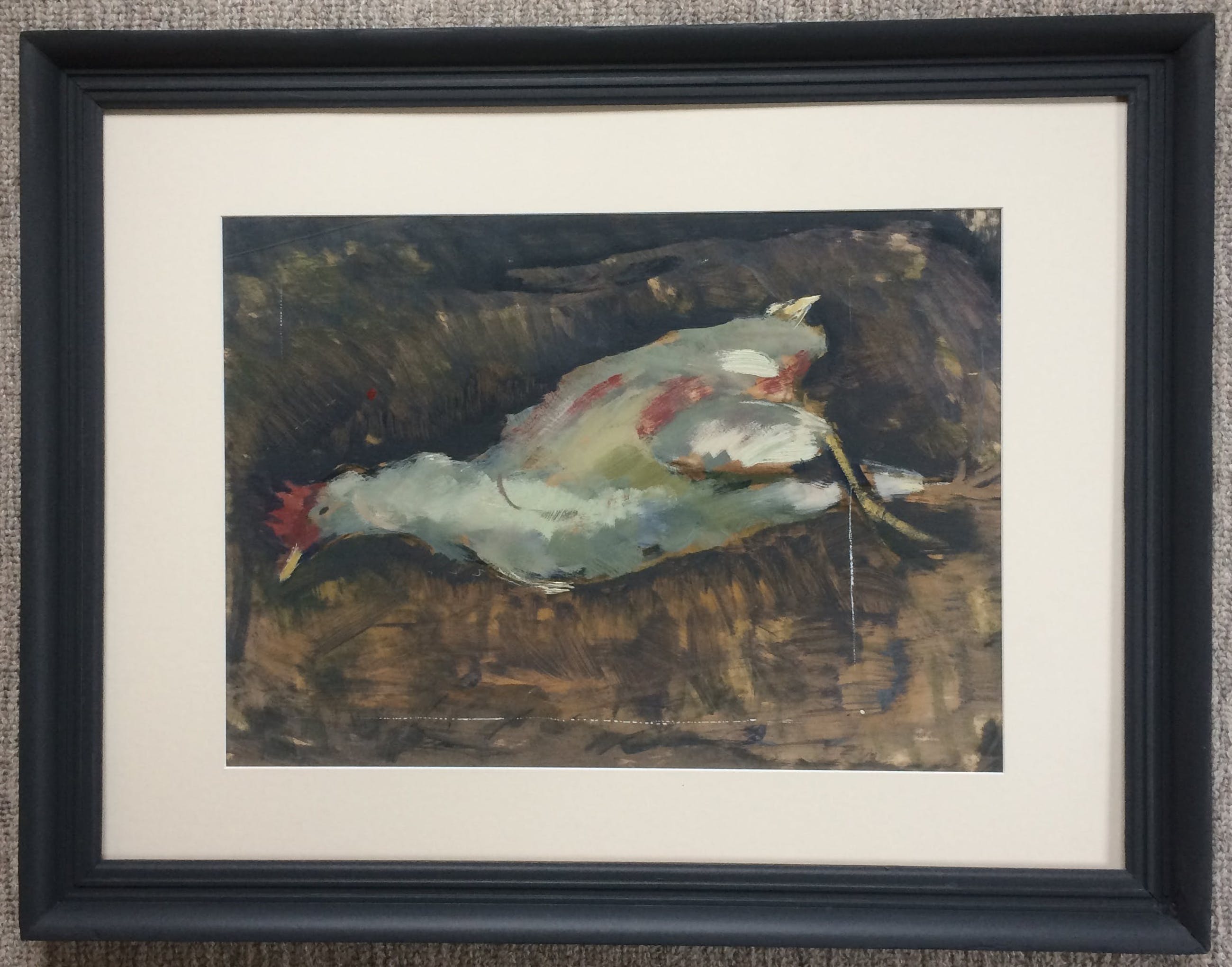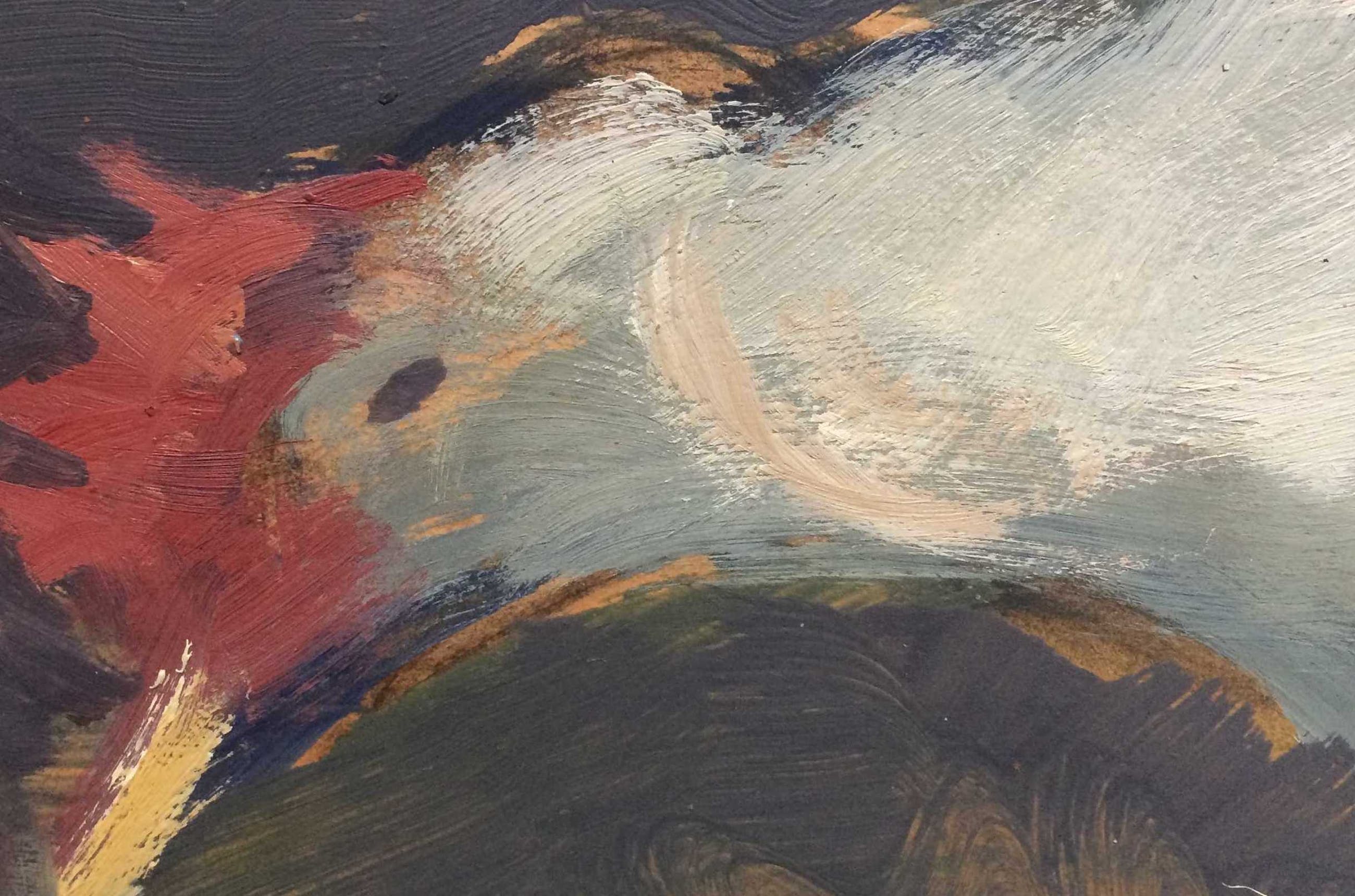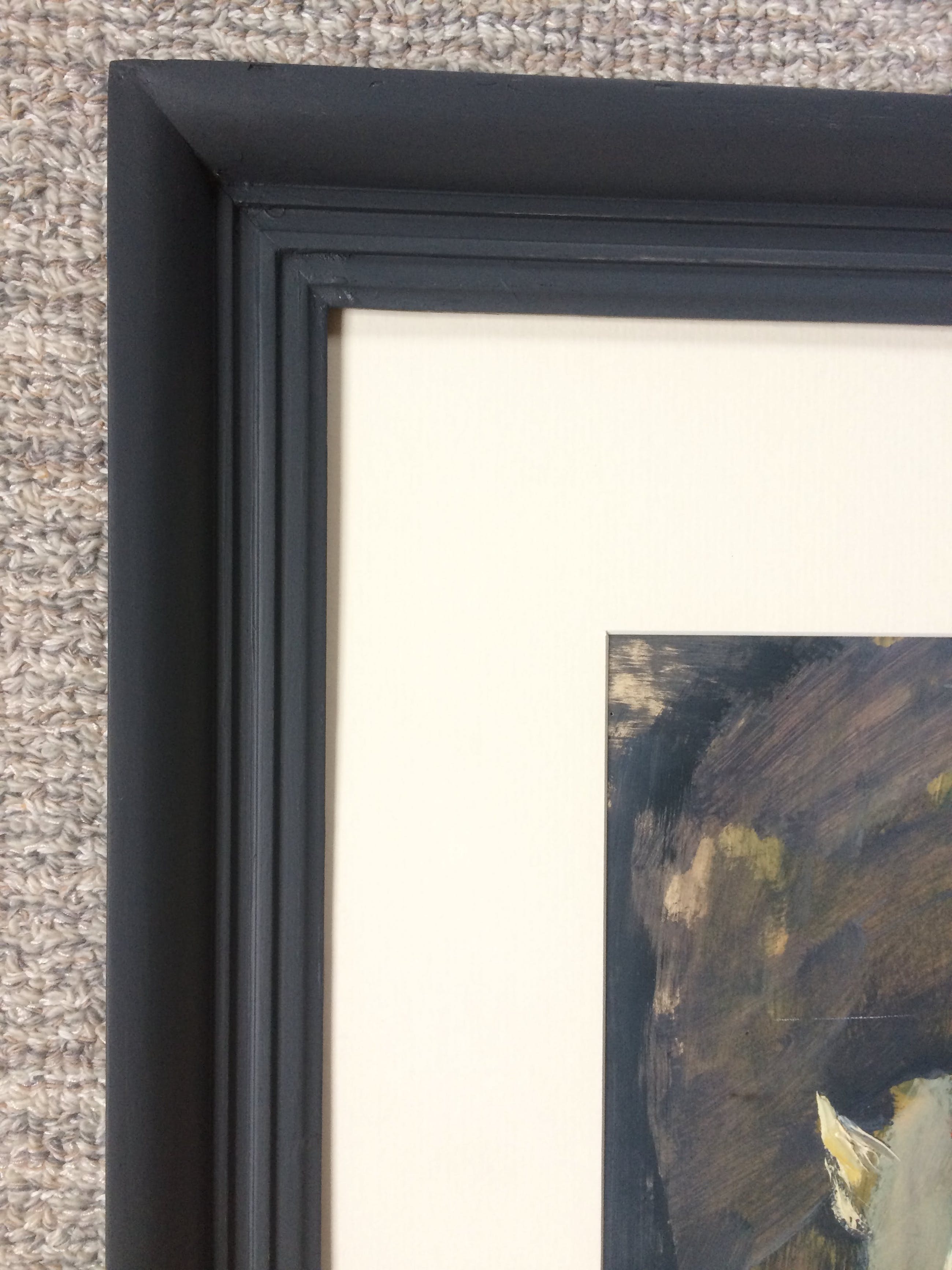 zijn werk: een vouwtje en een enkel gerepareerd scheurtje in het papier, niet storend. Witte verfstreep is afkomstig van een ander werk dat Tullemans er op heeft gelegd terwijl het nog nat was..