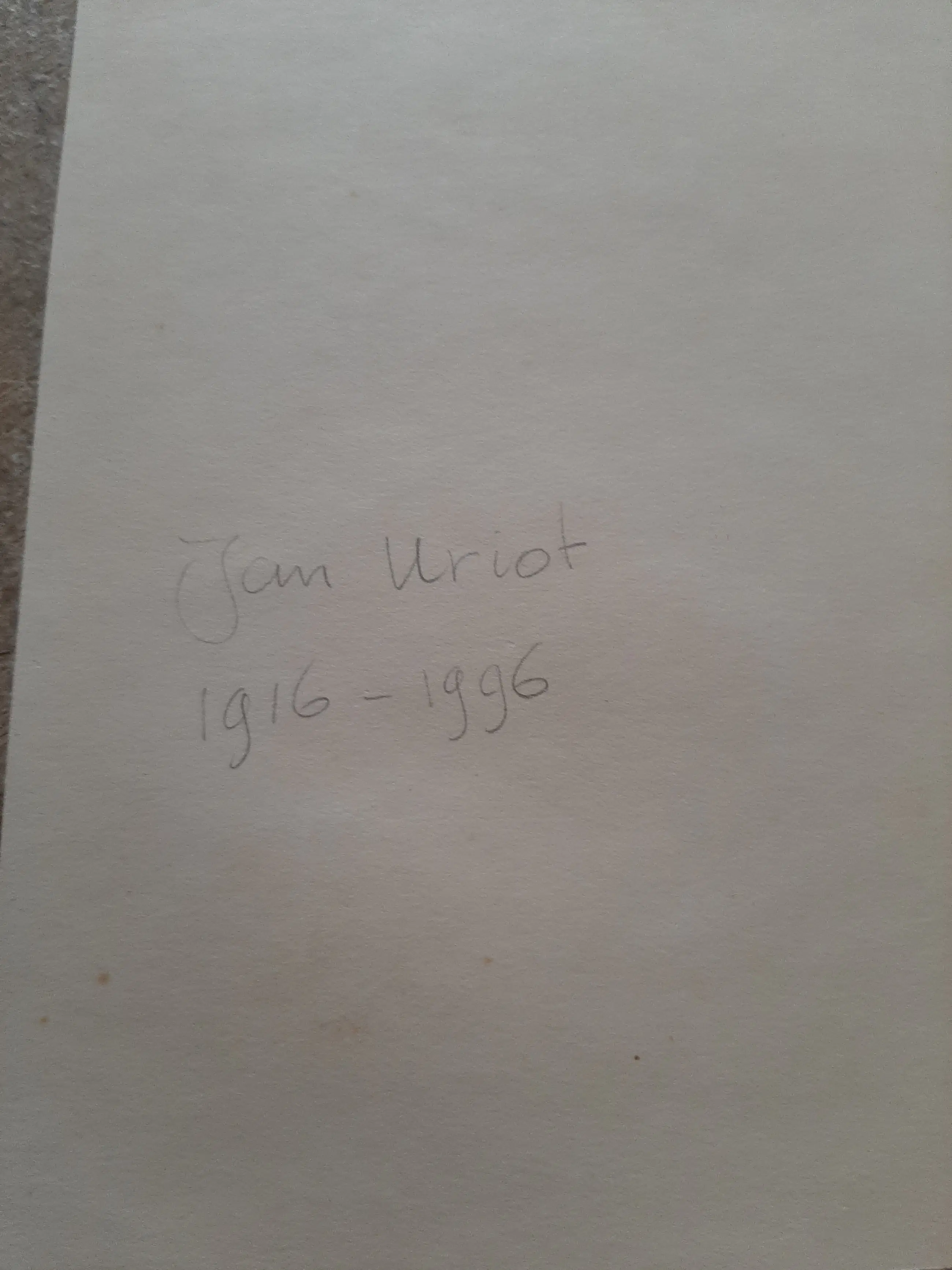 Joannes Franciscus of Jan Uriot heeft altijd als beeldend kunstenaar gewerkt, aanvankelijk als zilversmid. Van 1936-1939 kreeg hij een opleiding tot kunstschilder van de Gooise kunstenaar Is. Naarden. Als gemobiliseerd soldaat maakte Jan Uriot in 1940 de verschrikkingen van de oorlog mee. Deze ervaringen hadden een grote invloed op hem. Vanaf 1948 legde hij zich vooral toe op het schilderen van kinderportretten. Later schilderde hij veel wolkenluchten, waarin hij een hoge graad van perfectie wist te verkrijgen. In de jaren zestig kwam Uriot na vele jaren met zichzelf in het reine en verwerkte hij zijn oorlogservaringen. Daarvan waren ‘Exodus’, het verhaal van de mens (een map met 24 prenten, 1962) en vooral de illustraties bij de eerste twee zangen van Dante’s ‘Divina Commedia’. Deze temperaschilderijen werden in 1975 in een zeer fraaie uitgave (in beperkte oplage) door de Italiaanse meesterdrukker Antonio Fiorini gepubliceerd. In 1976 vestigde Jan Uriot zich met vrouw en dochter Barbara vanuit Blaricum in de St. Janstraat te Middelburg. Hier vond hij de rust terug om te werken zoals dat eerder in Blaricum gelukt was voordat het van kunstenaarsdorp in televisiedorp veranderde.