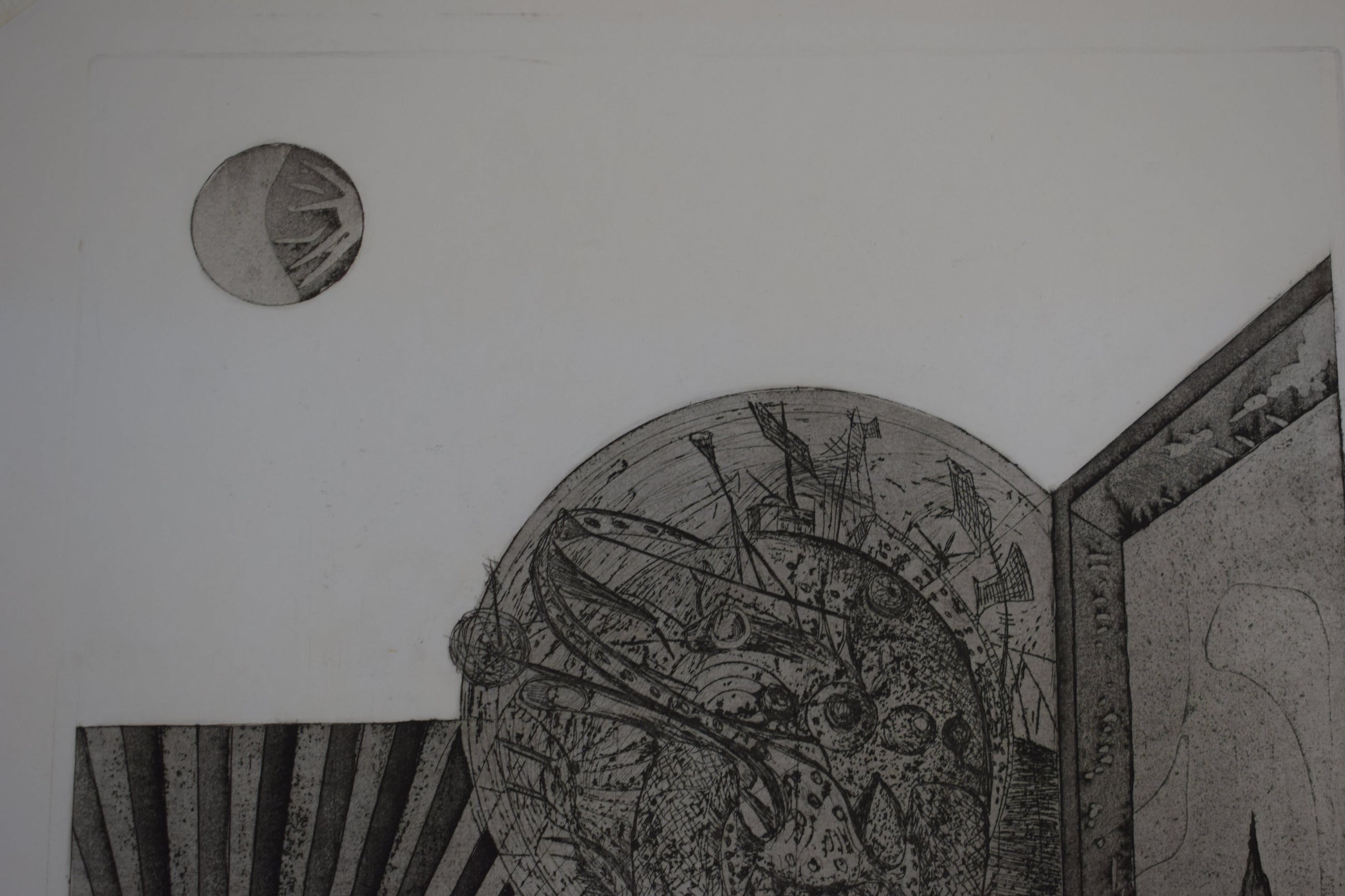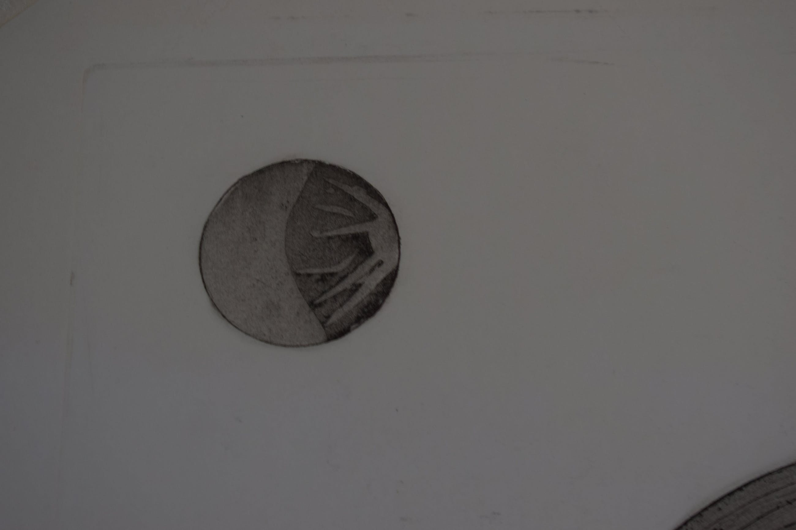 Papier heeft beschadigingen bovenin van het inlijsten. En beschadigingen onderin. Wel alles in de marge van een passepartout.