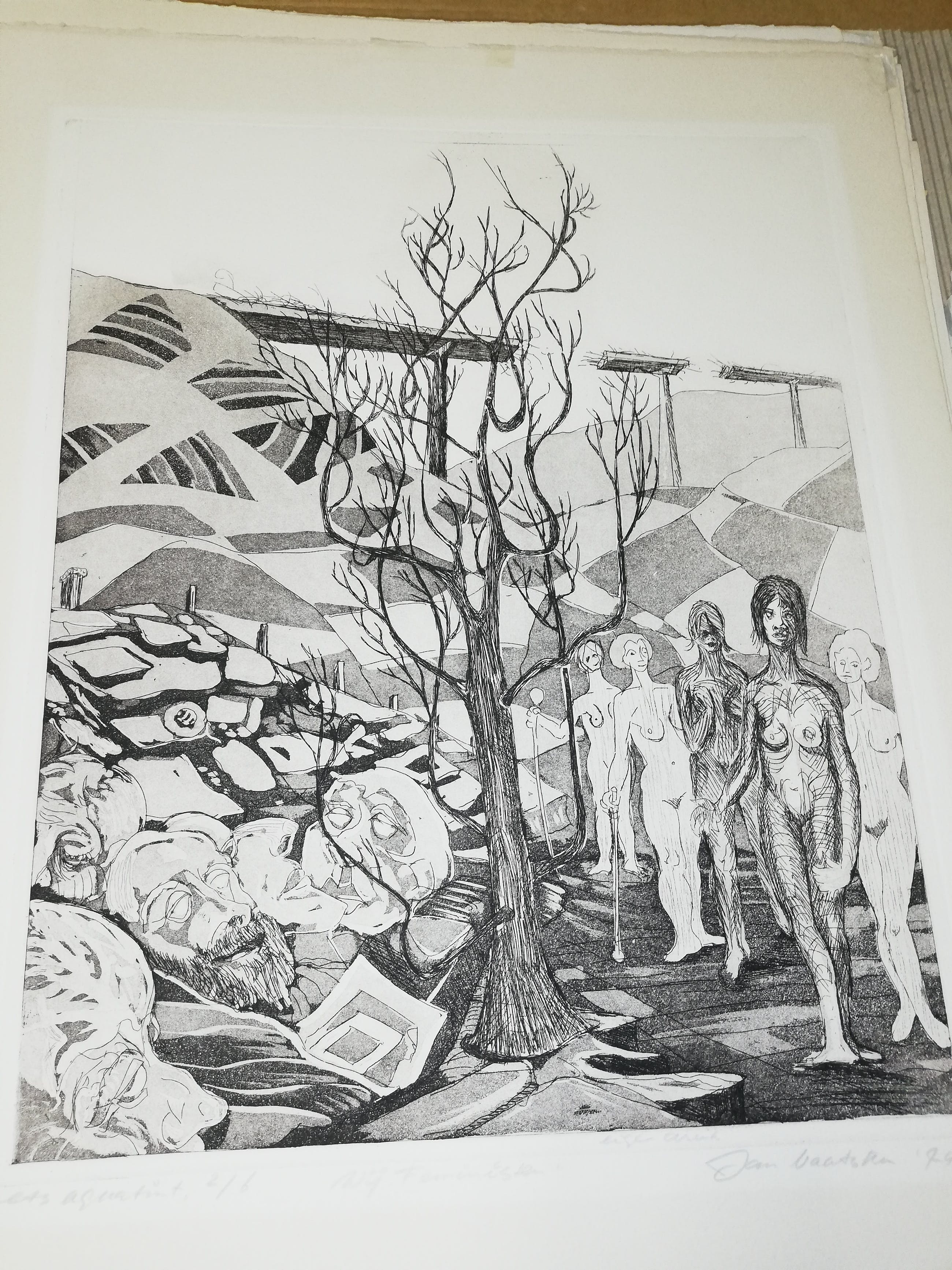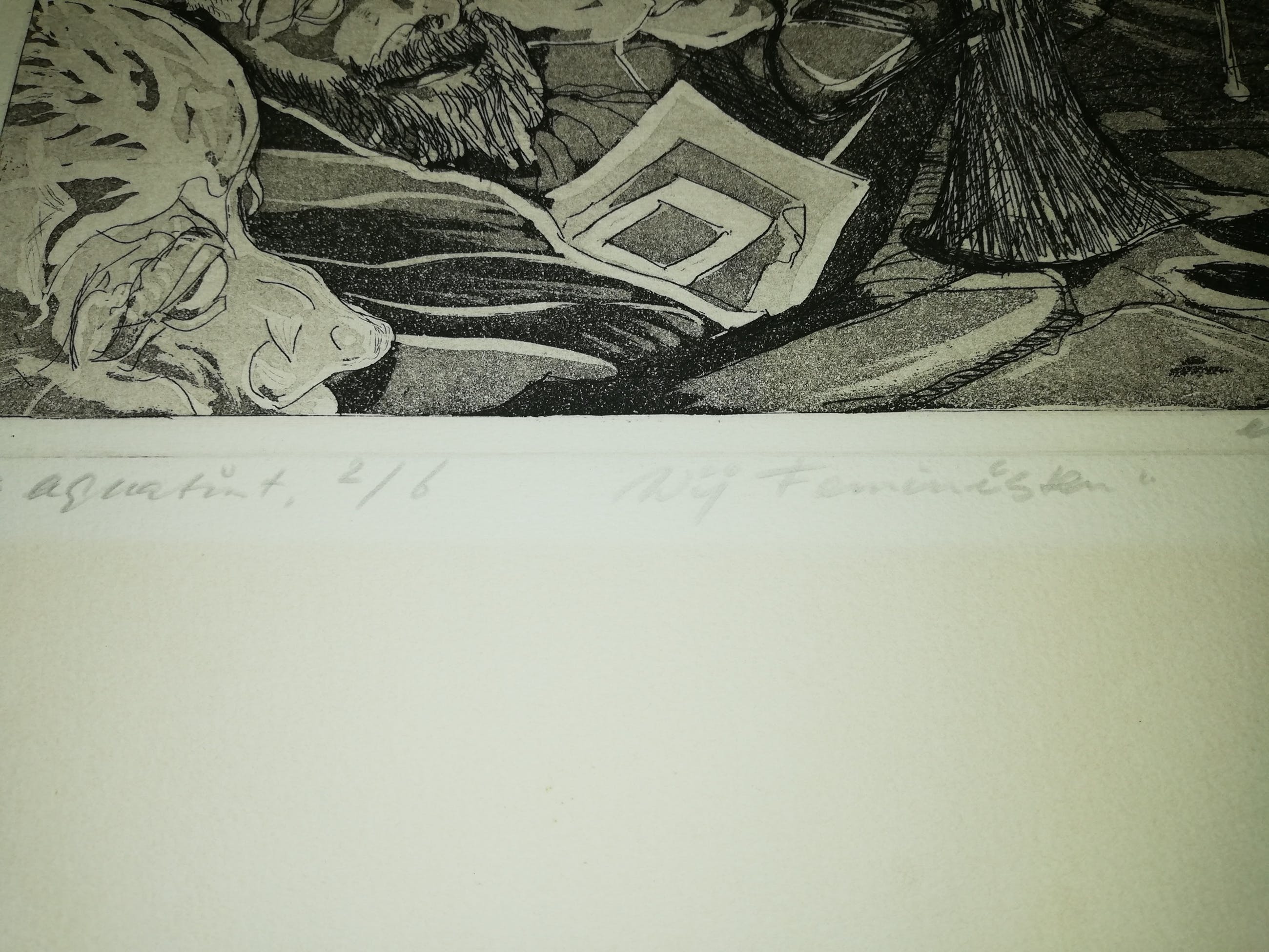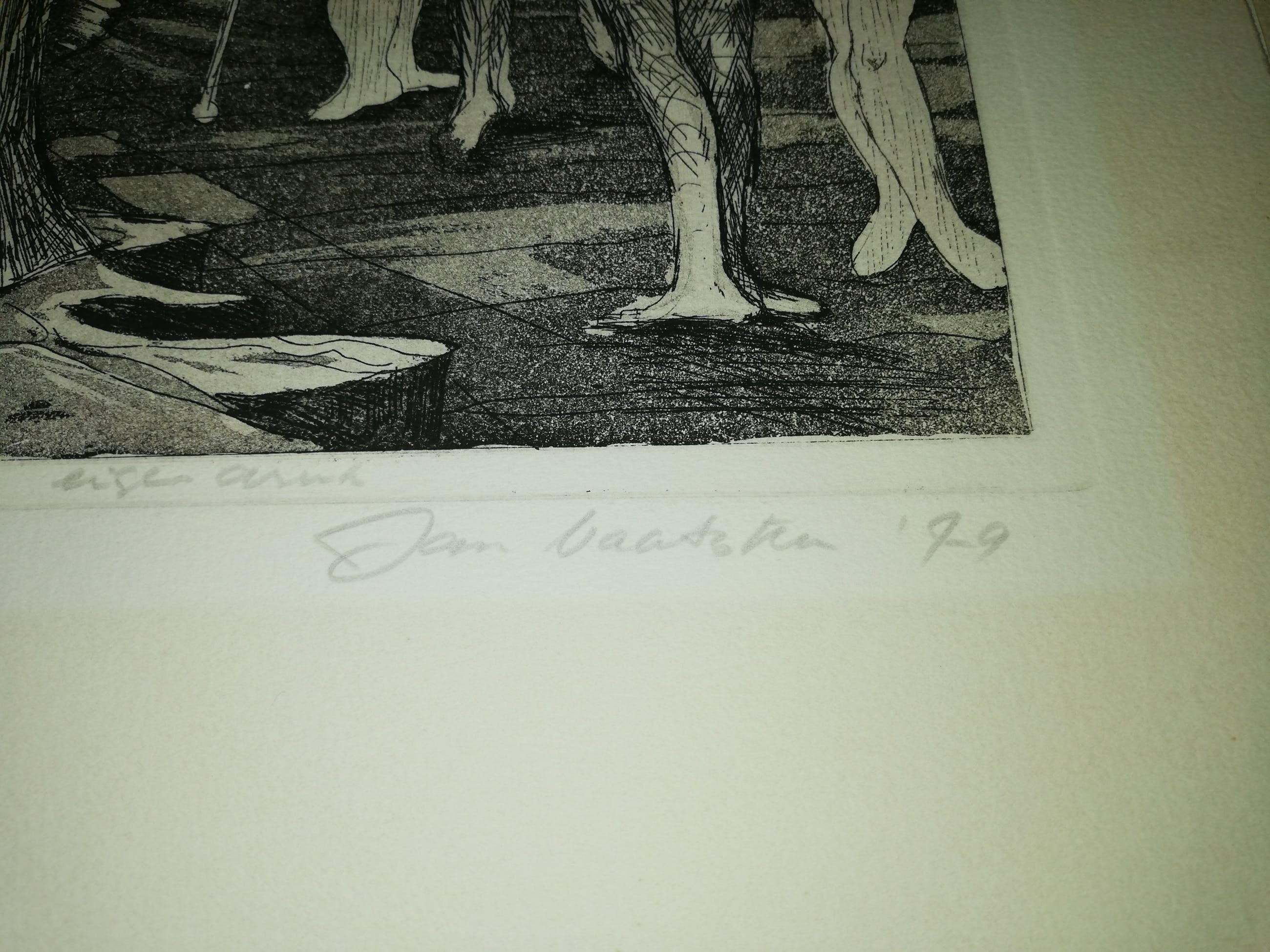 Nr 2 van 6. Mooi werk maten zijn zonder witte rand, die witte rand kan wat verkleurd zijn maar valt niet op met passe-partout. Nooit ingelijst geweest.
