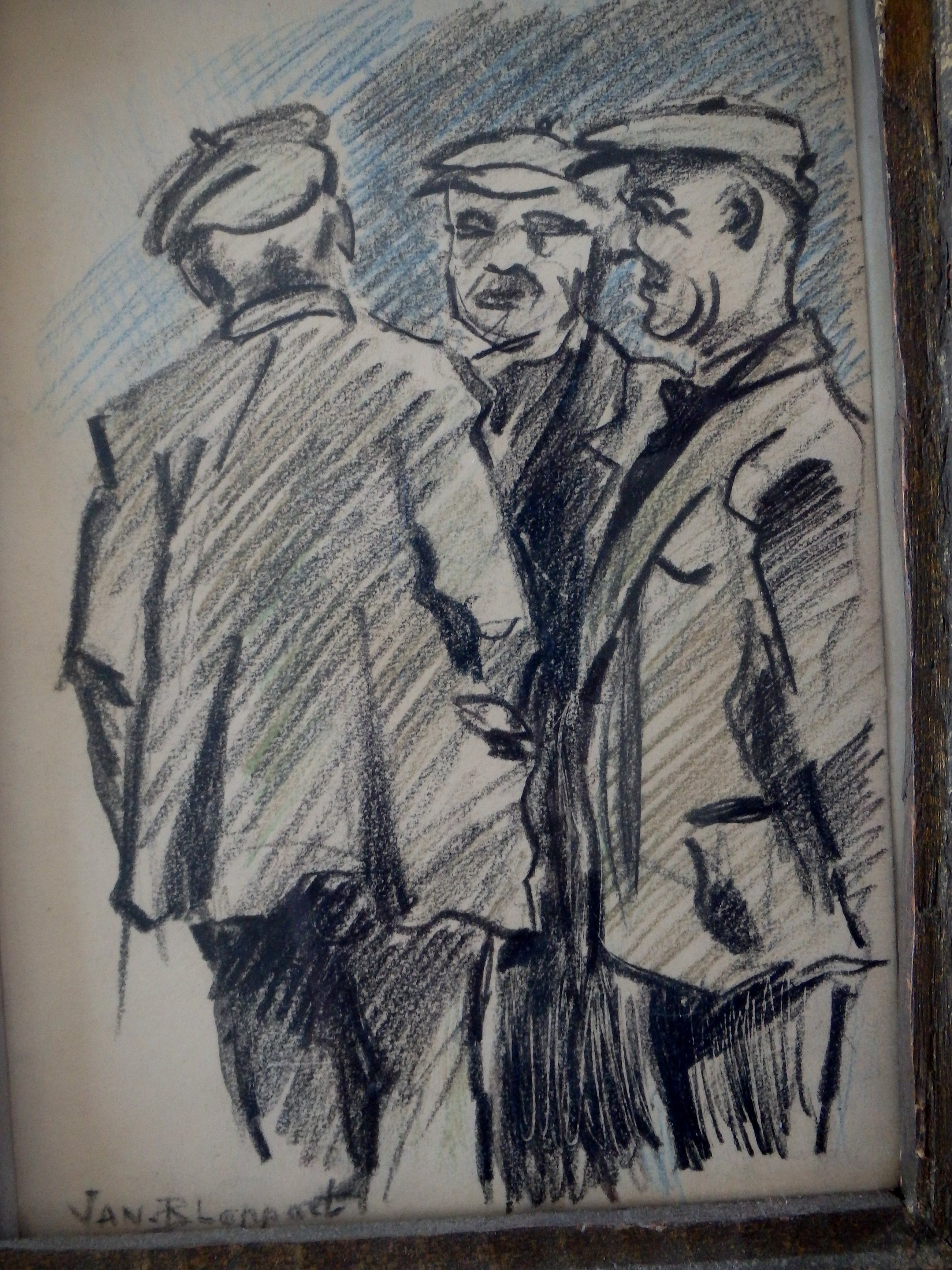 krijt / pastel tekening op papier, netjes ingelijst achter glas in gaaf oud lijstje.