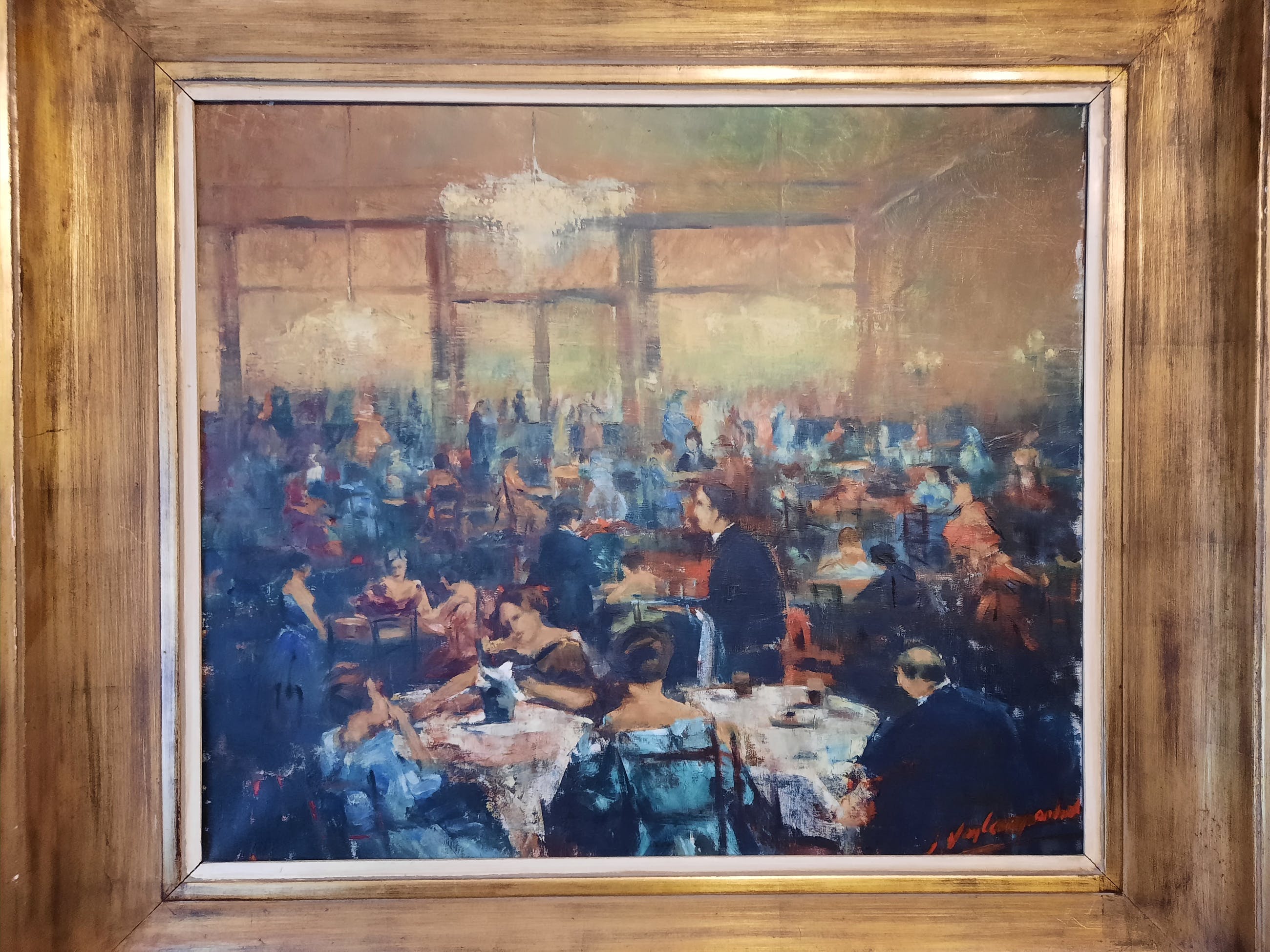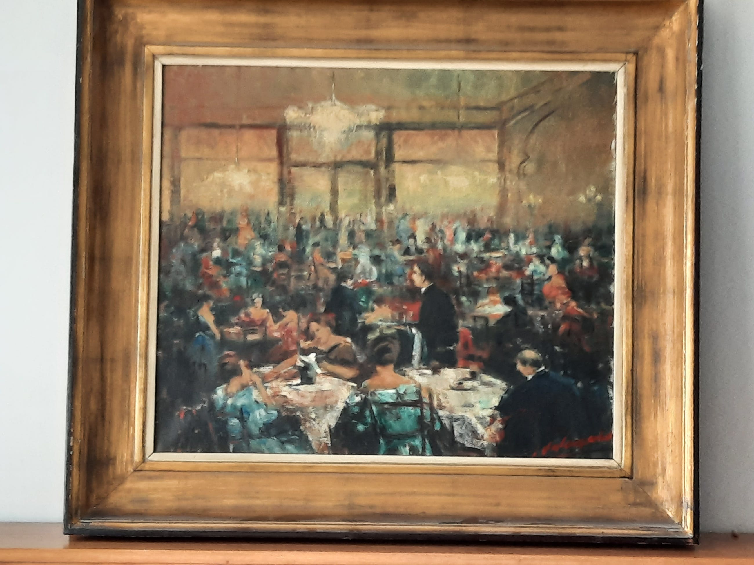 Zeer prachtige penseelzet: als je naar het schilderij kijkt waant men zich aanwezig op dat galadiner