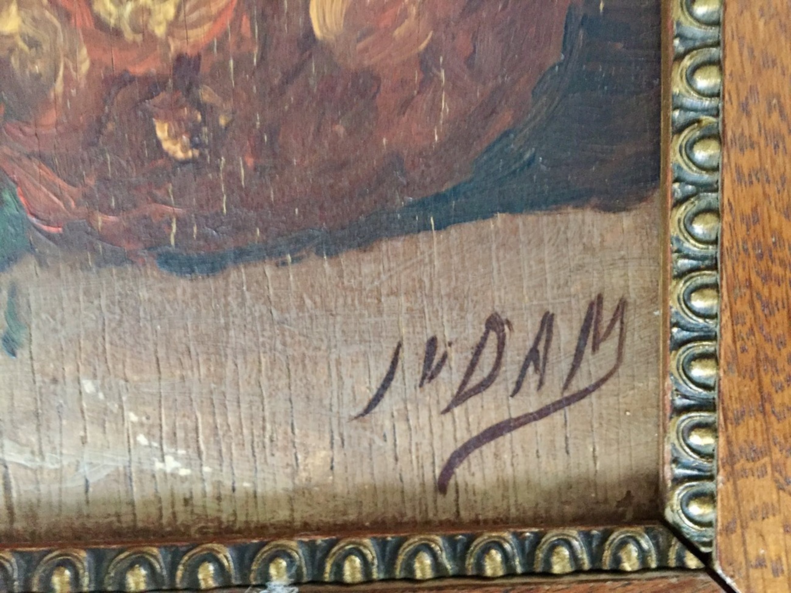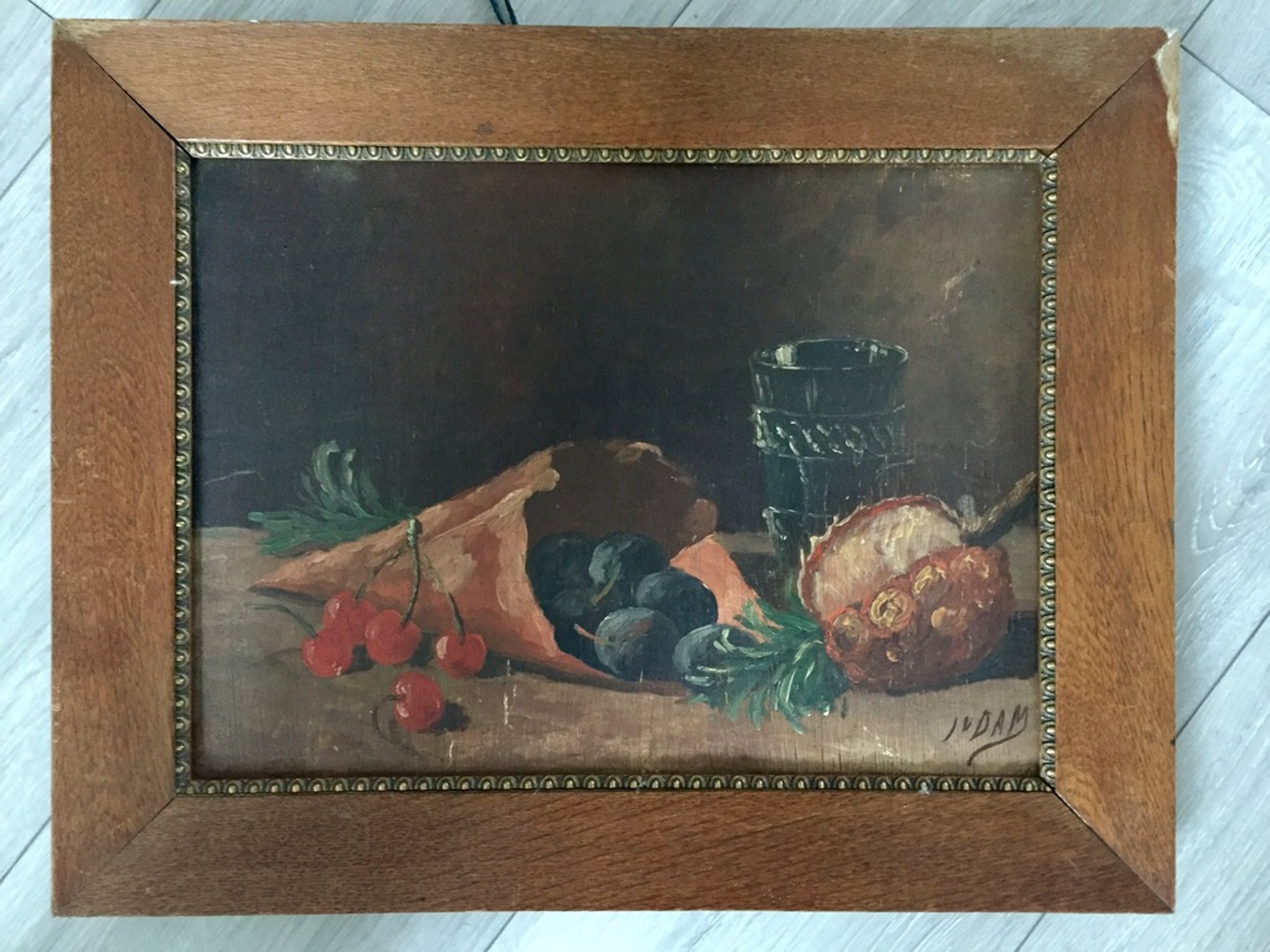 In behoorlijke staat, lijst heeft wat gebruikssporen, lakheeft wat barstjes van het paneel.