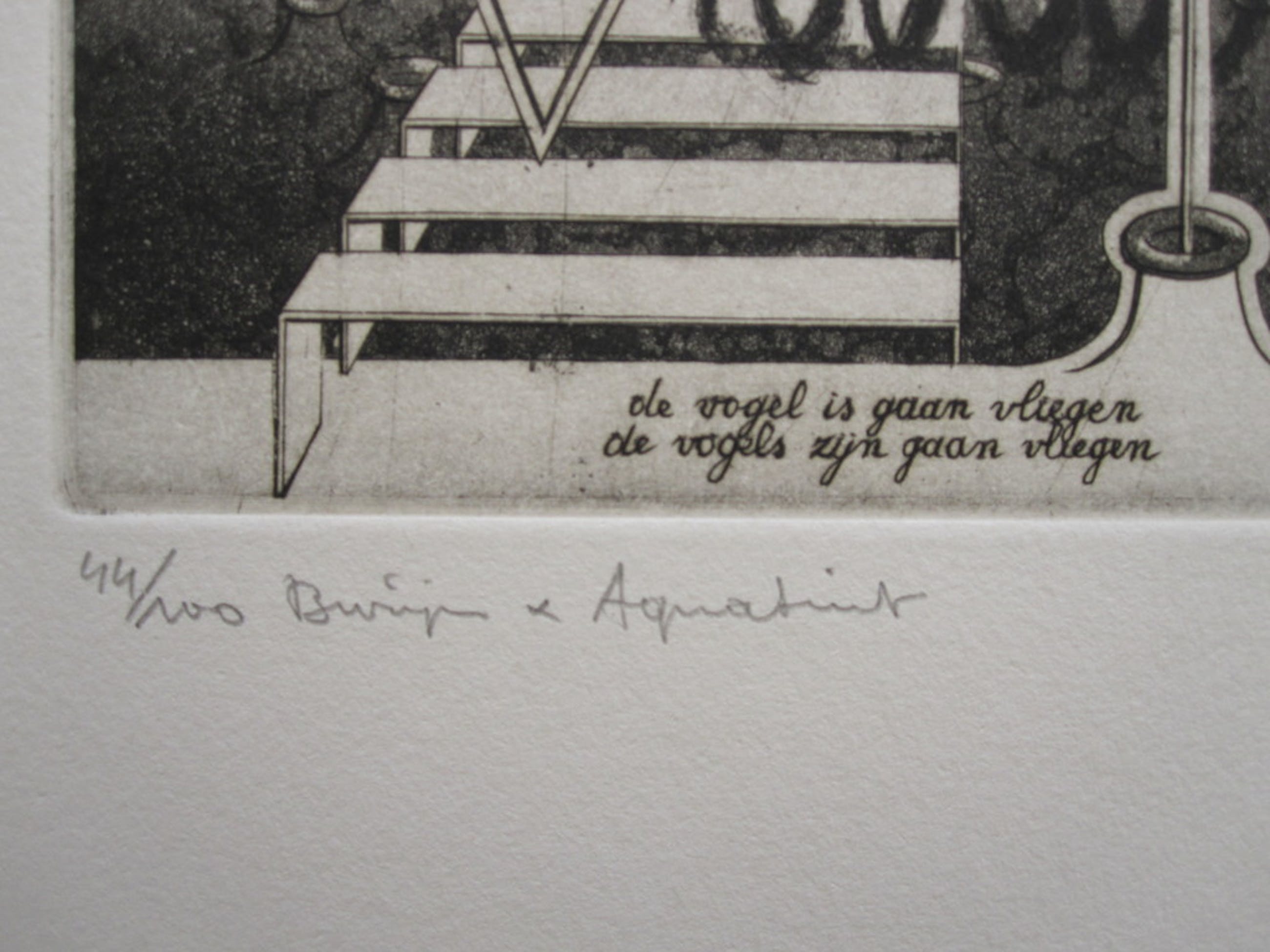 Prachtige gravure van Jan Vandeweghe, met burijn en aquatint techniek op handgeschept papier.