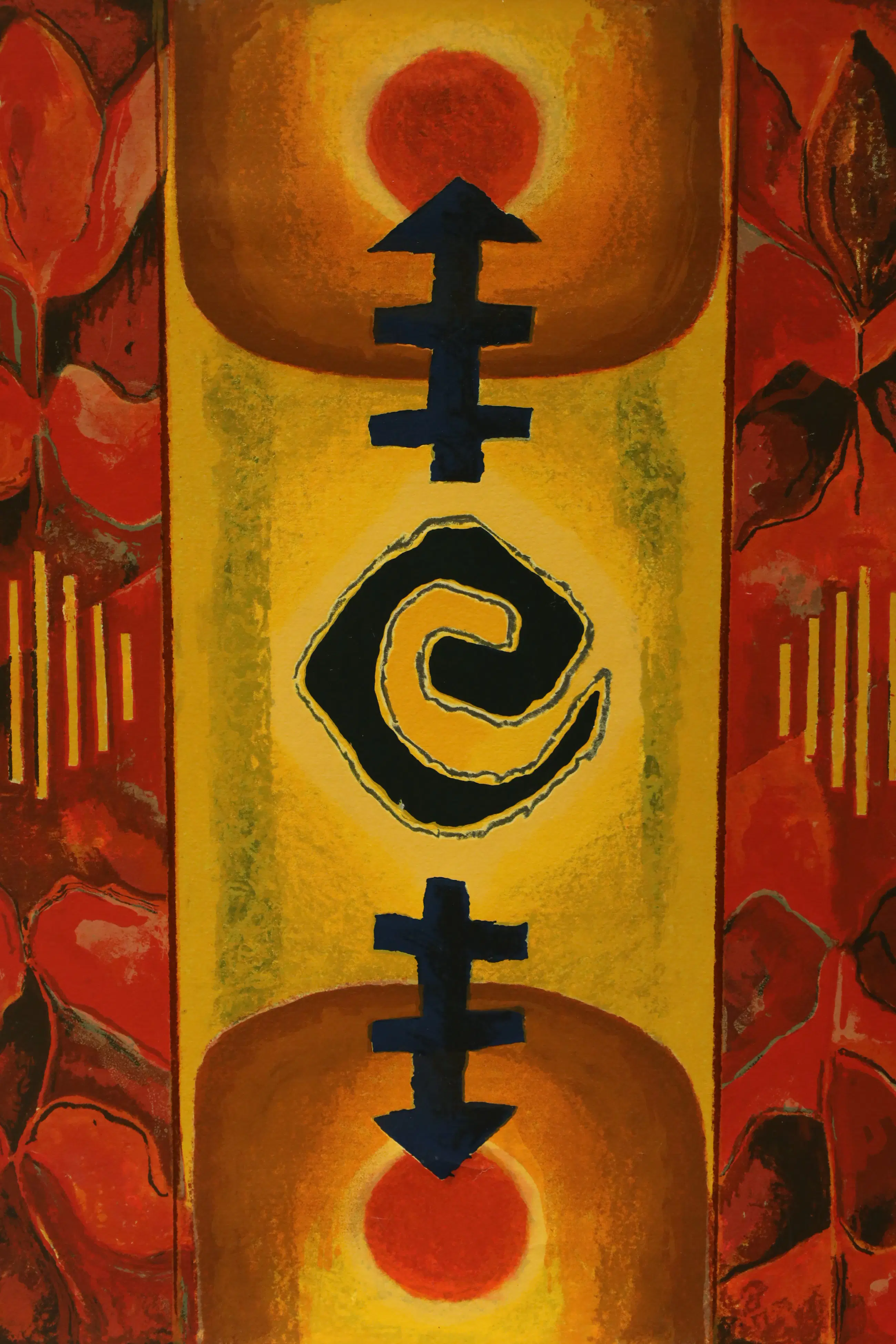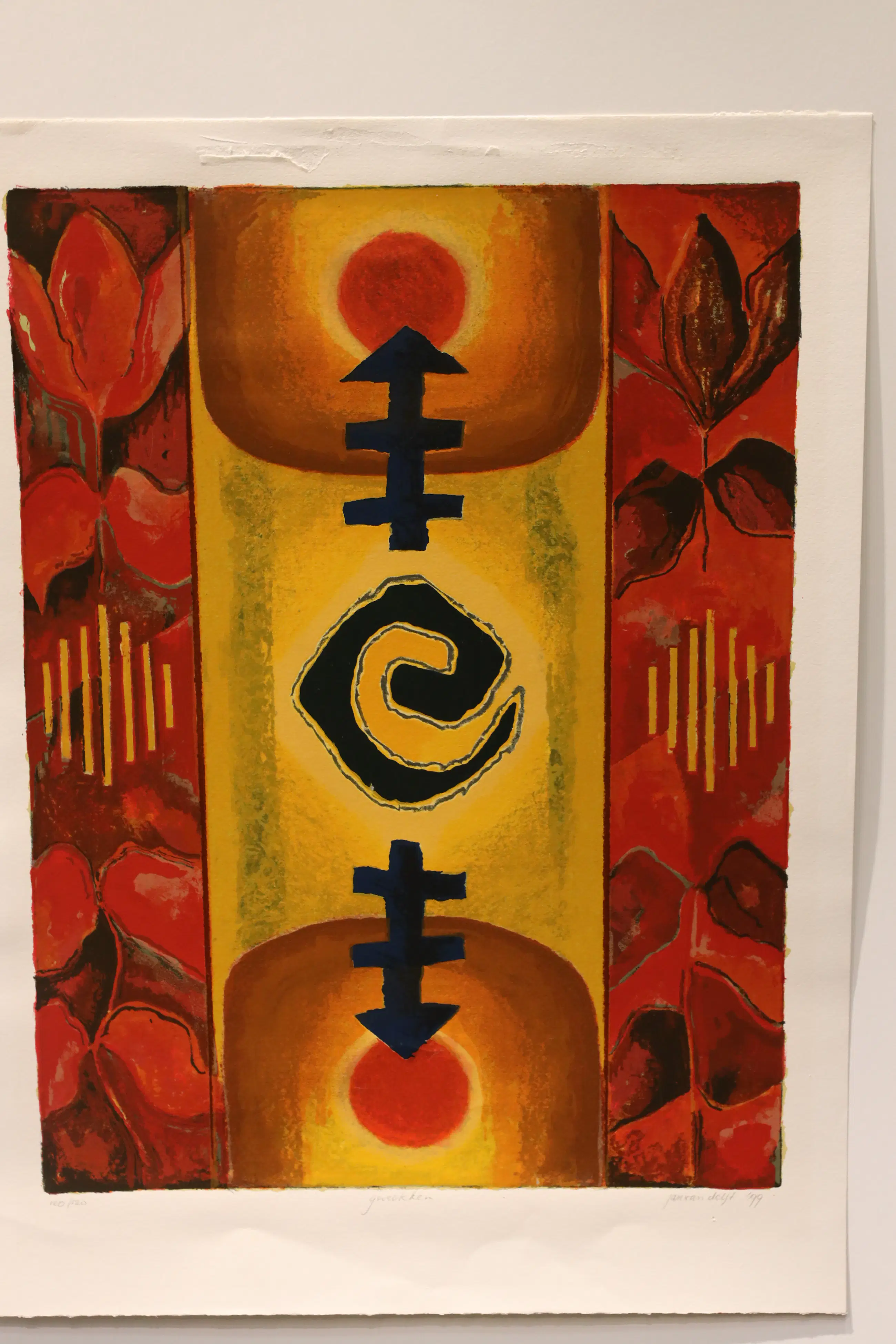 Deze zeefdruk is een kenmerkend werk met heldere kleuren.