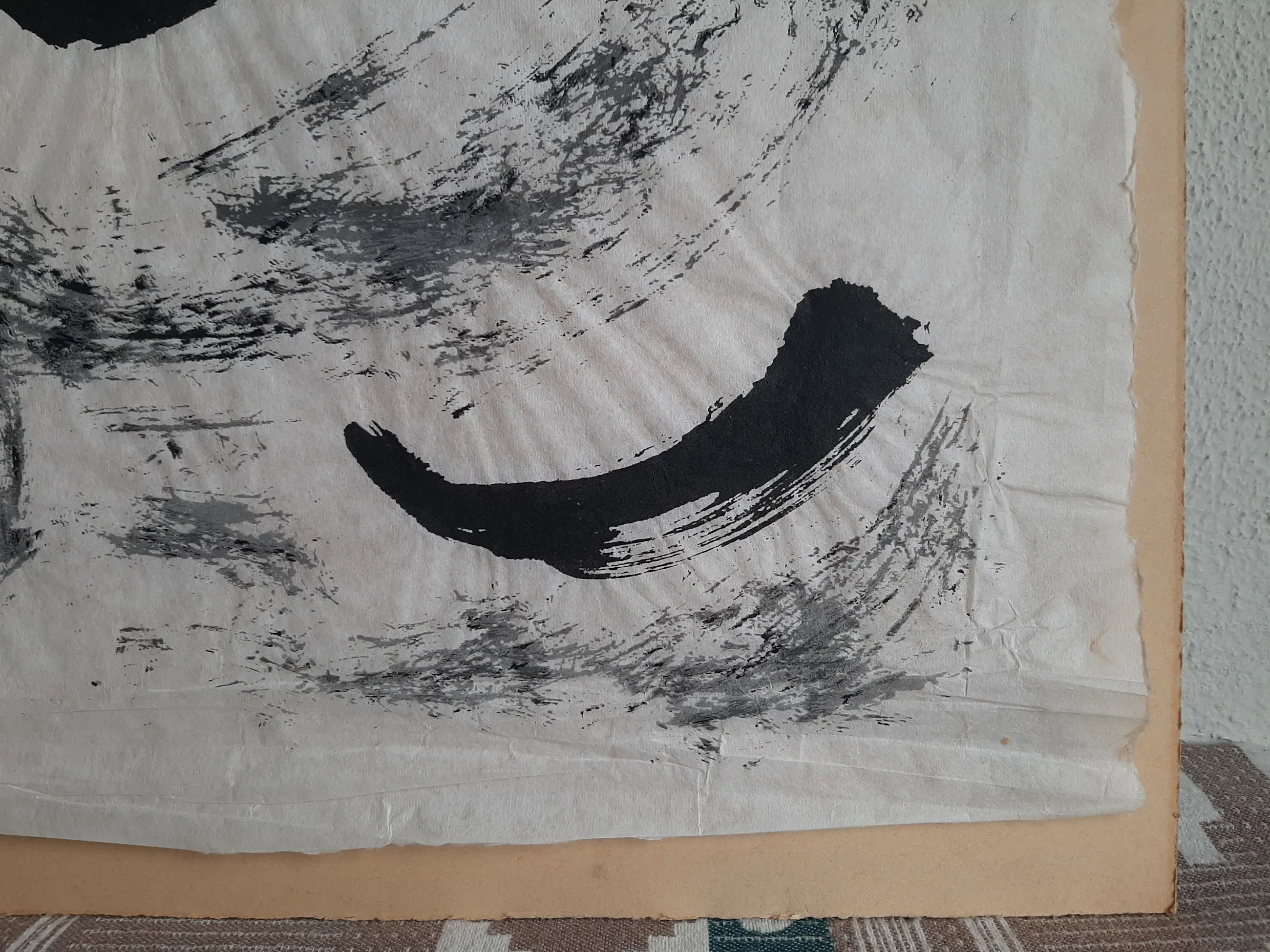 Mooi en gebalanceerd werk van Jan van den Berg, dat qua stijl sterk geïnspireerd is door de Japanse kaligrafie. Stijlvol uitgevoerd op chine collé papier.
