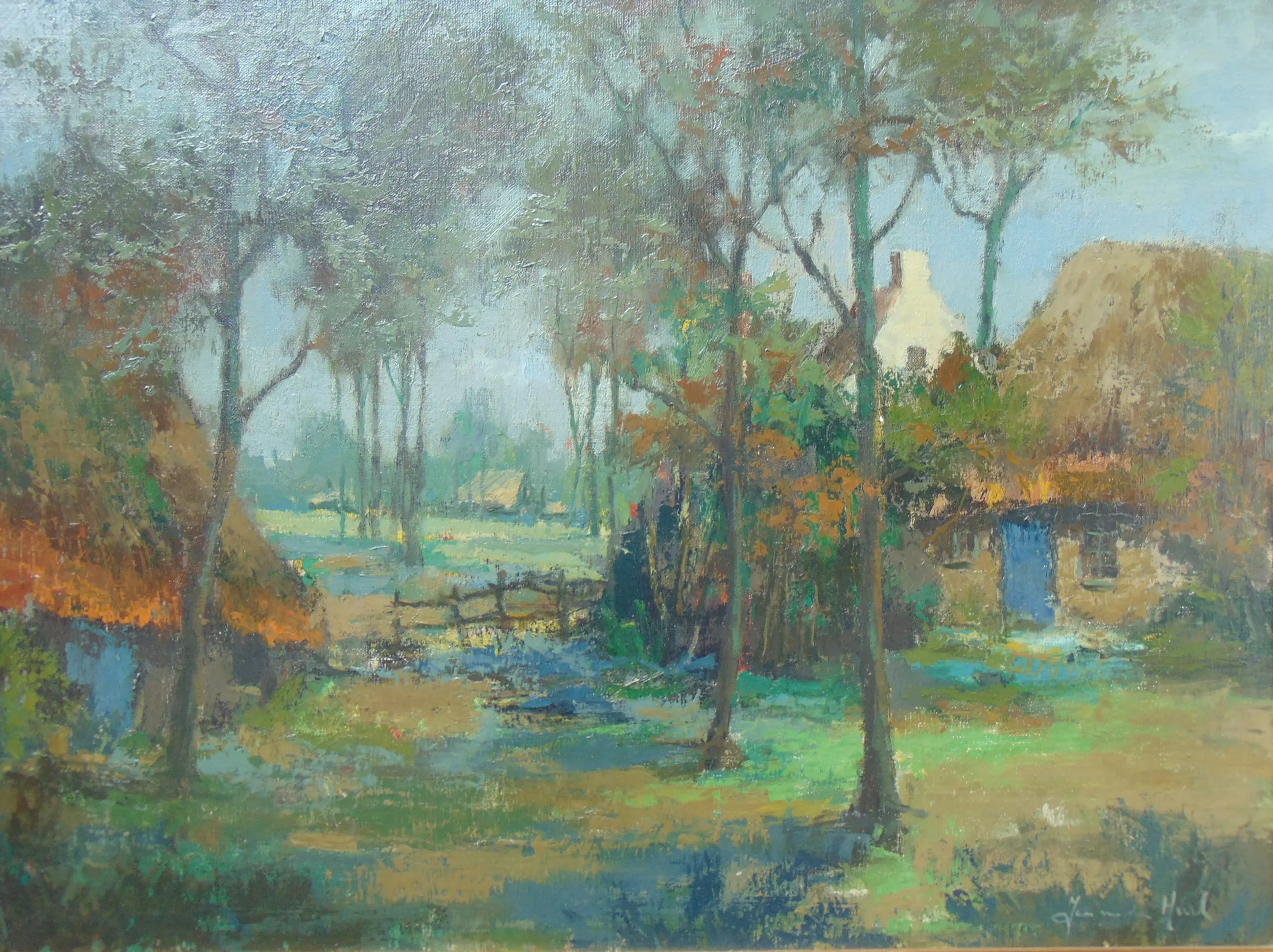 Dit werk is rechtsonder gesigneerd. Het schilderij zit in een jaren 60 lijst.