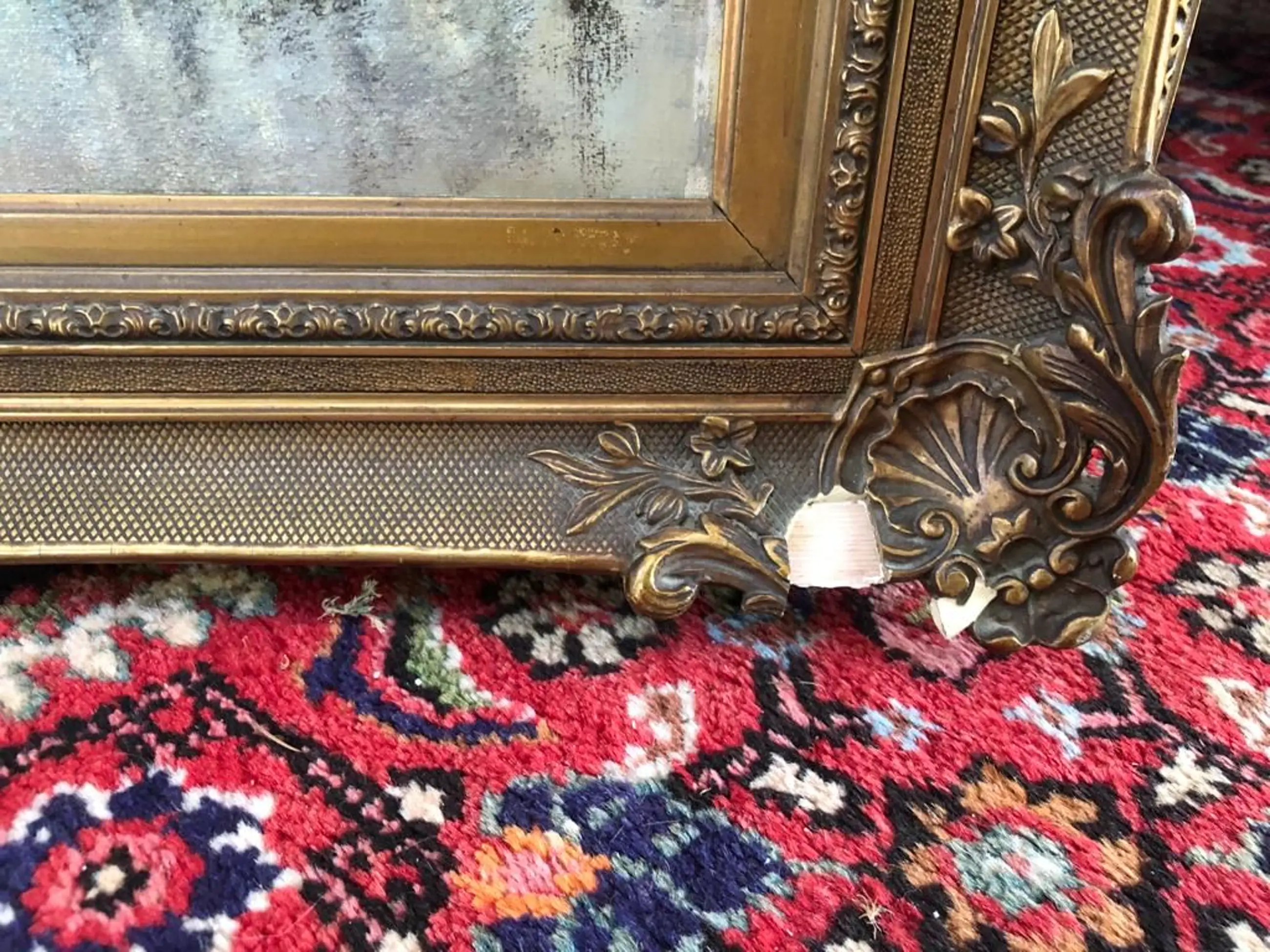 | Het doek bevat oppervlaktevuil en verkleurde vernis door tijd, craquelures in donkere delen, klein plekje verfverlies rechtsonder. De lijst bevat randschade en ornamentschade. | |