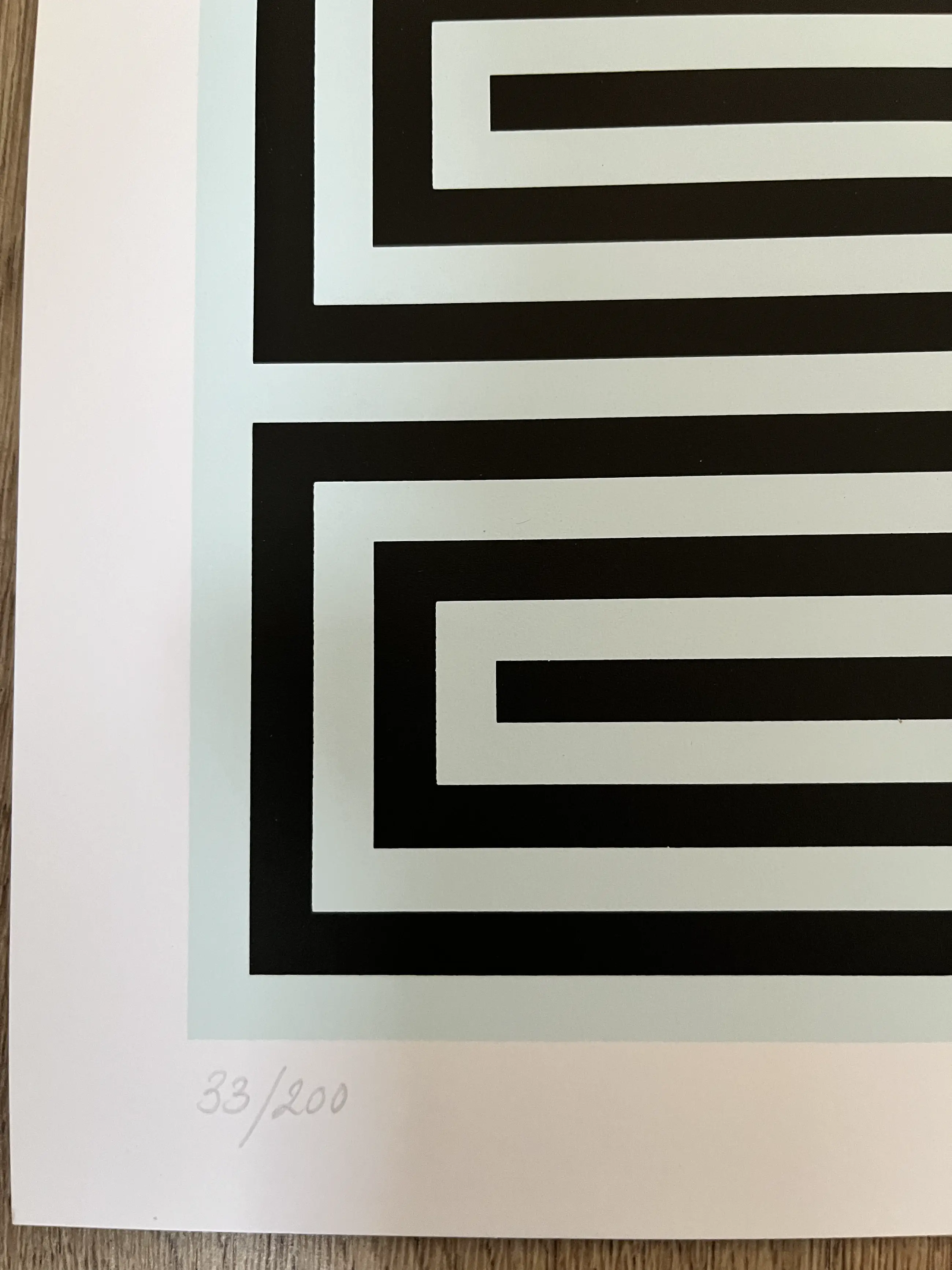 Een prachtig geometrisch abstract werk van Jan van der Ploeg. Een mooie kans om zijn werk in huis te hebben hangen. Zijn muurschilderingen zijn verbluffend en authentiek.