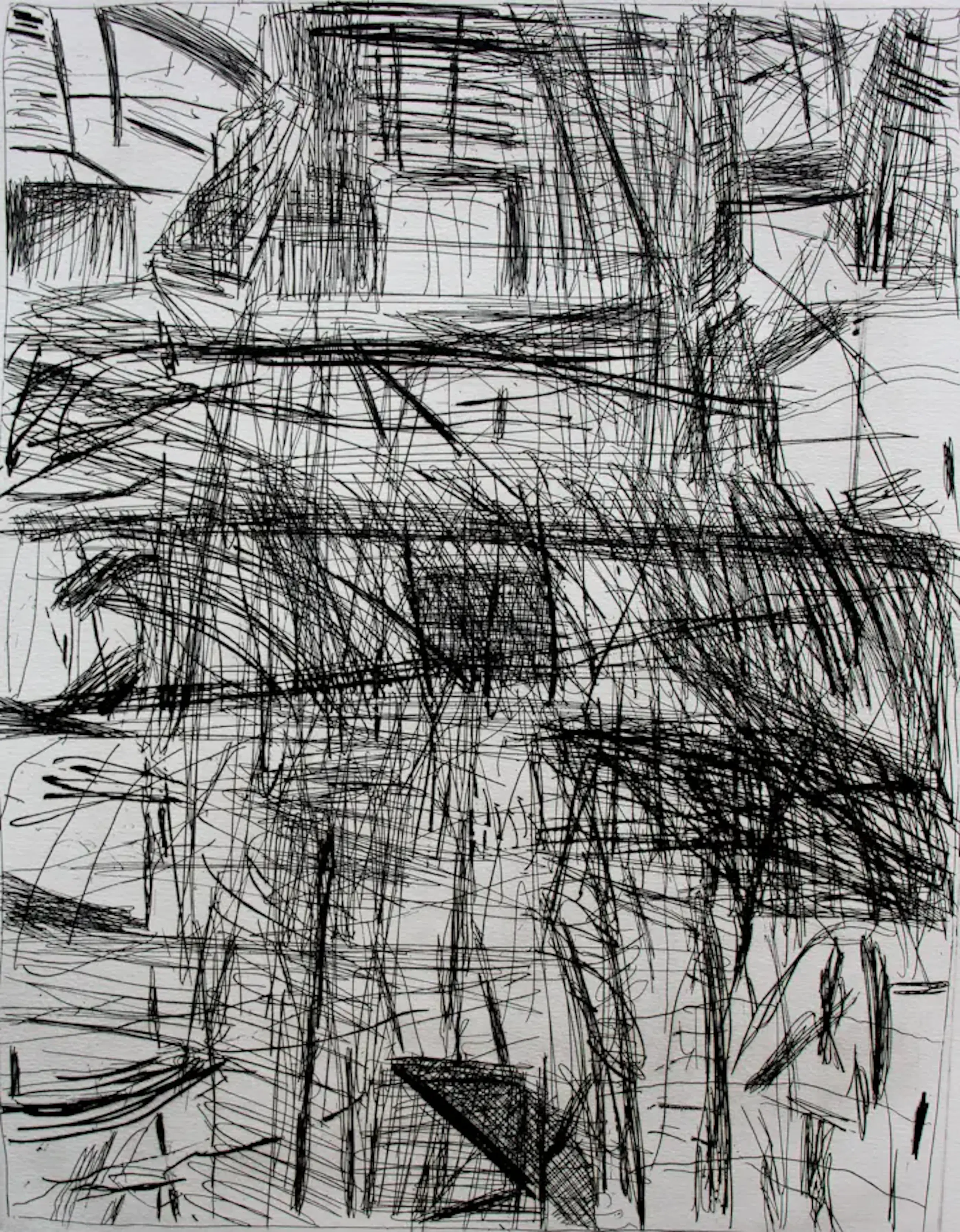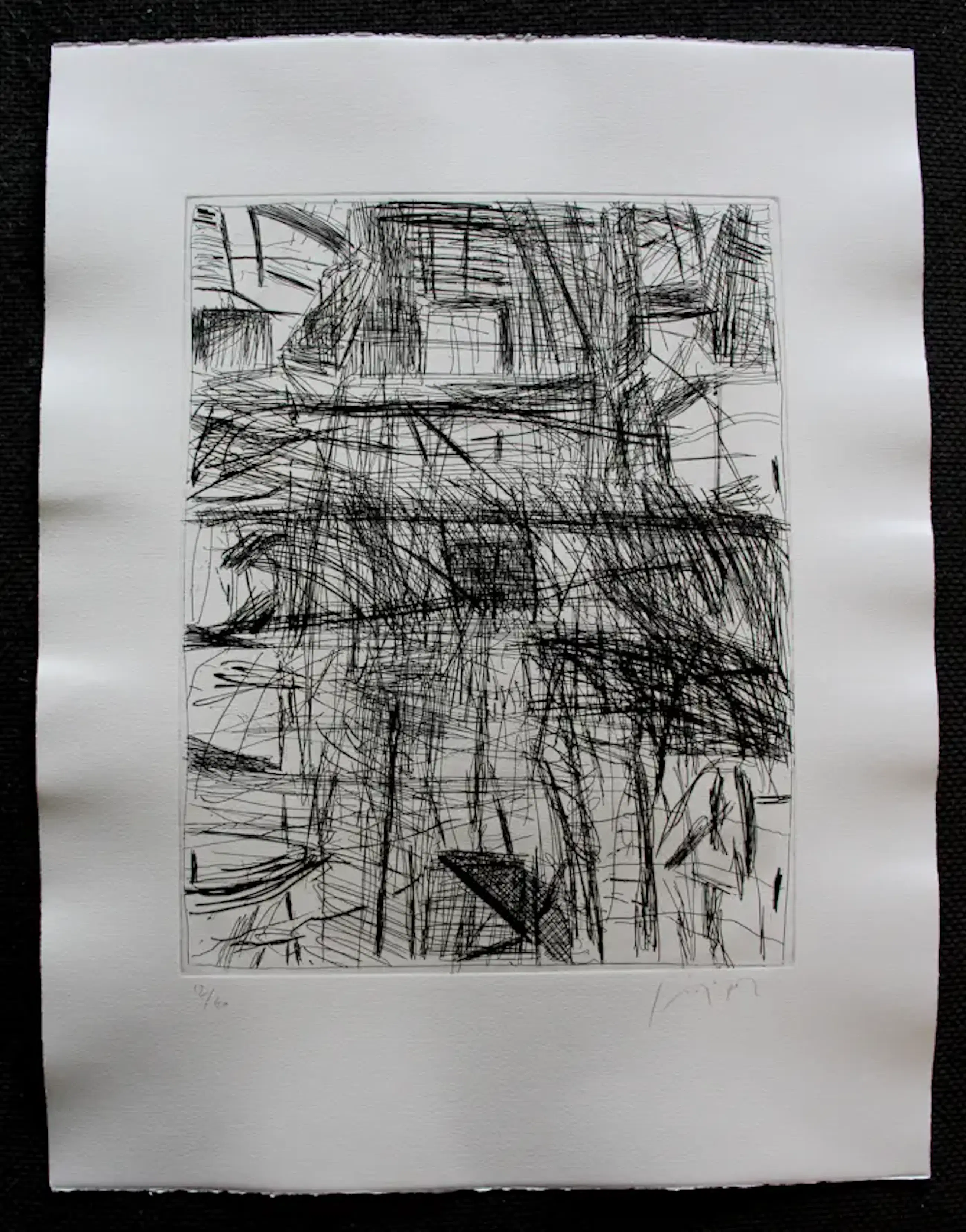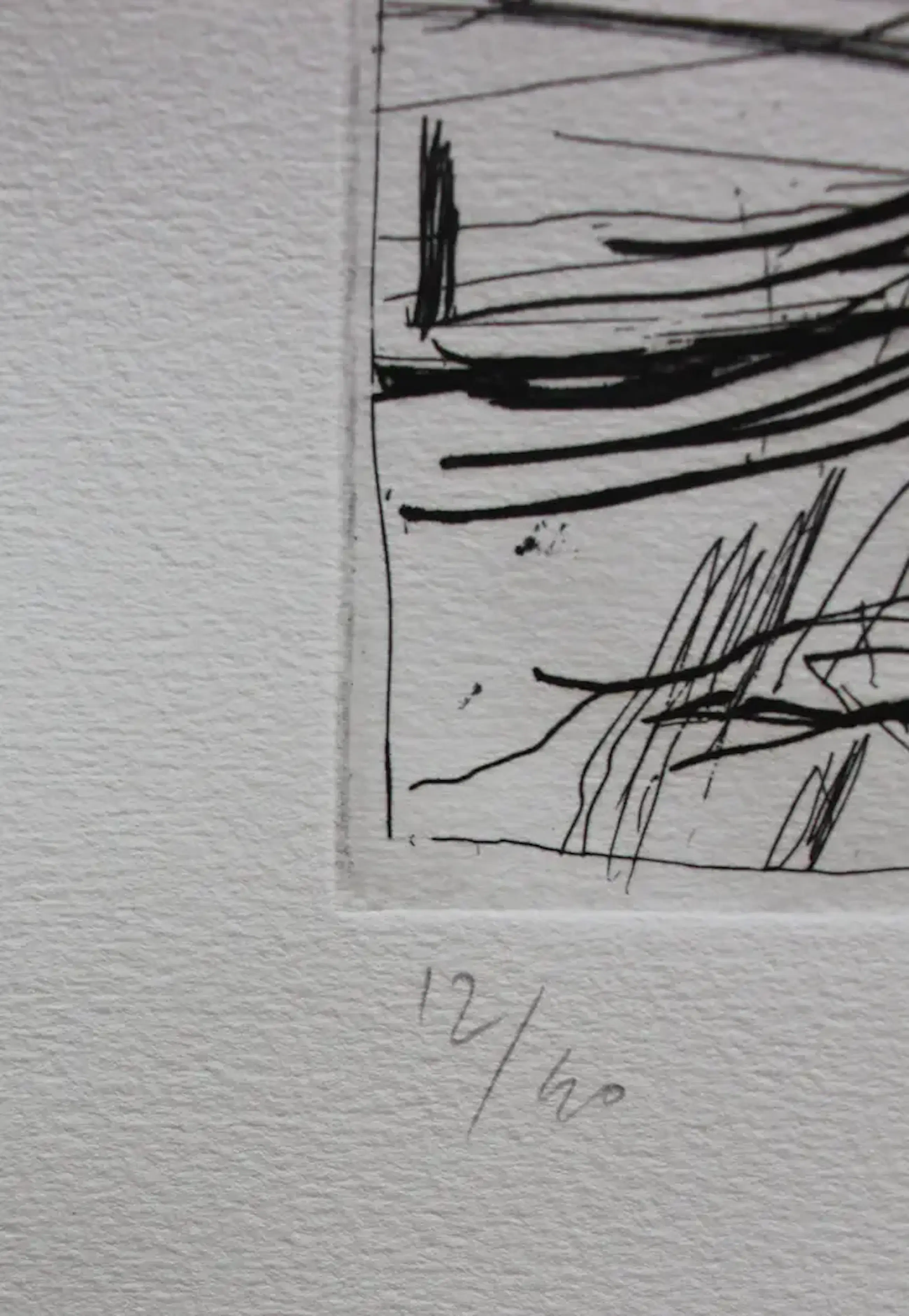 Ets van Jan van der Pol uit 1987. Nummer: 12/40. Afmetingen voorstelling: H43,5 x b34 cm.