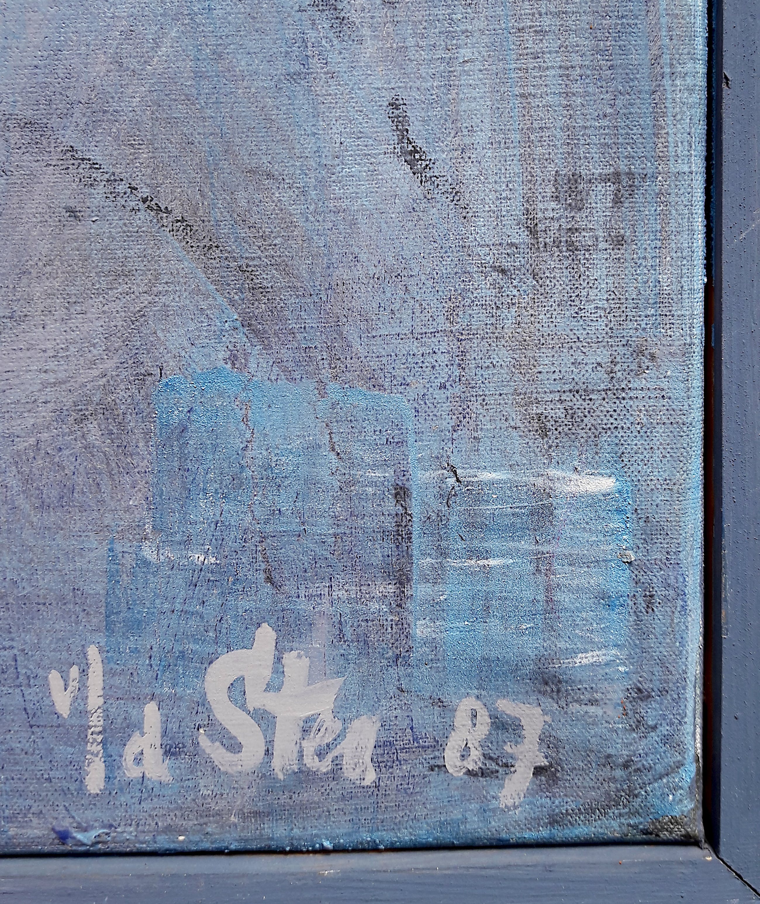 Zeer mooi abstract werk van de al geruime tijd in Italië wonende Jan van der Ster. Acrylverf op doek, gesigneerd en gedateerd (87) rechtsonder. In eenvoudige maar complementerende houten lijst. Alles in zeer goede conditie.