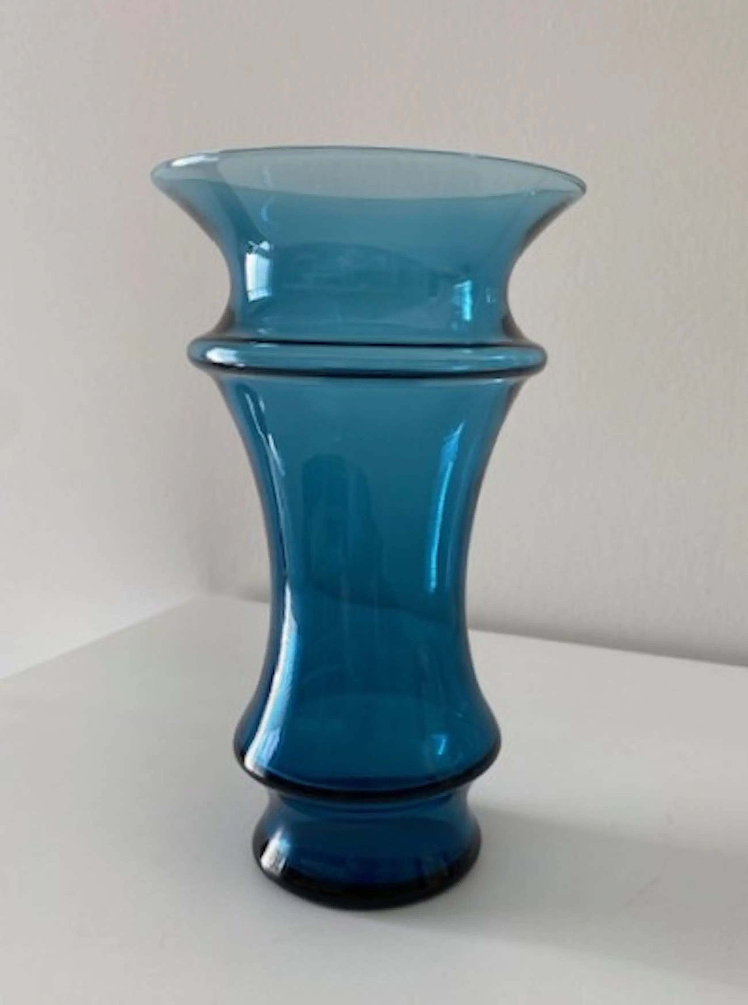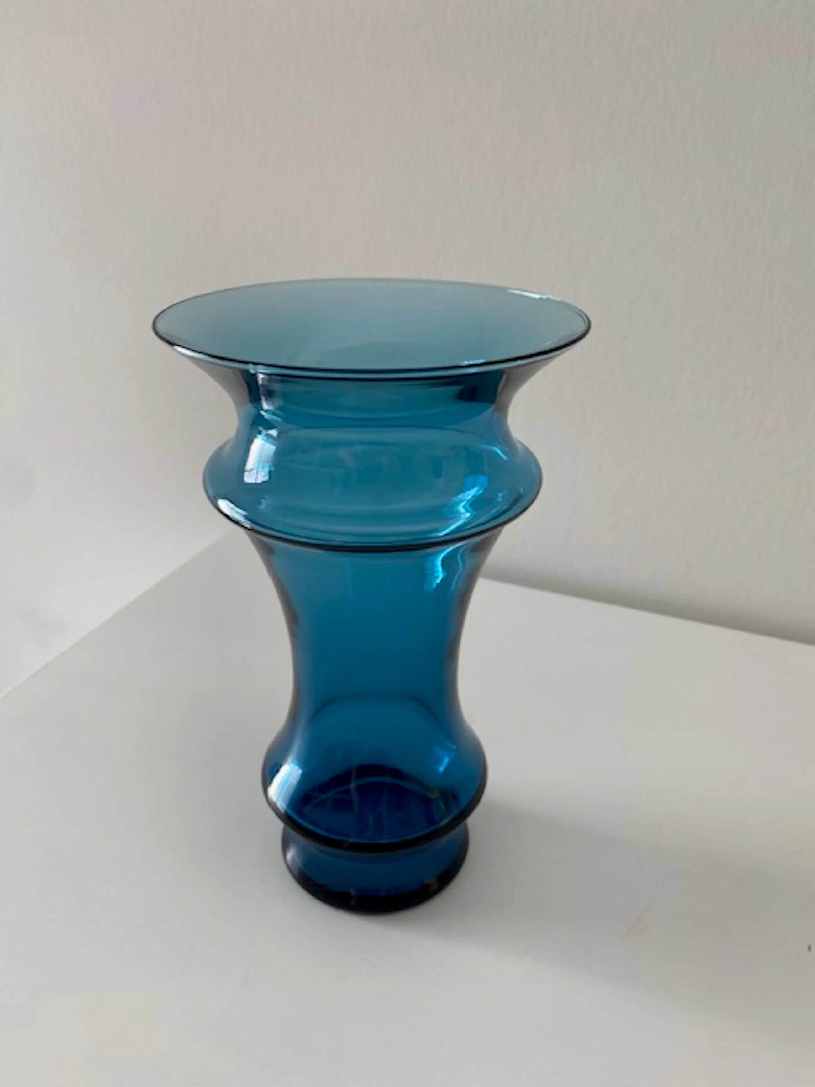 Prachtige blauwe glazen (tulpen-) vaas Ontwerp Jan van der Vaart 1990's Vrij zeldzaam model Royal Leerdam Hoogte 21,5 cm!!