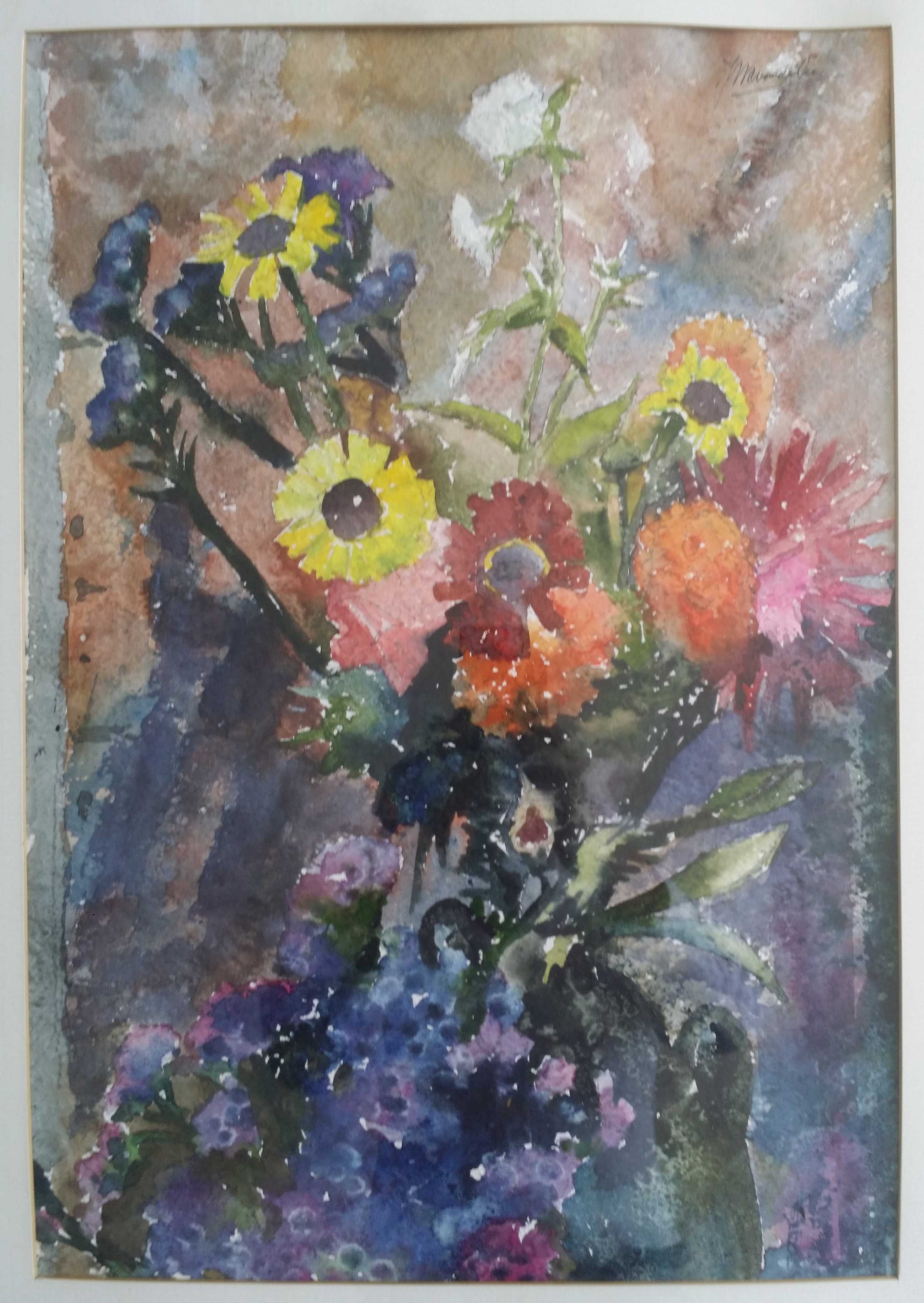 Jan van der Veer - Bloemen in vaas. Vlot werk. - Verkocht
